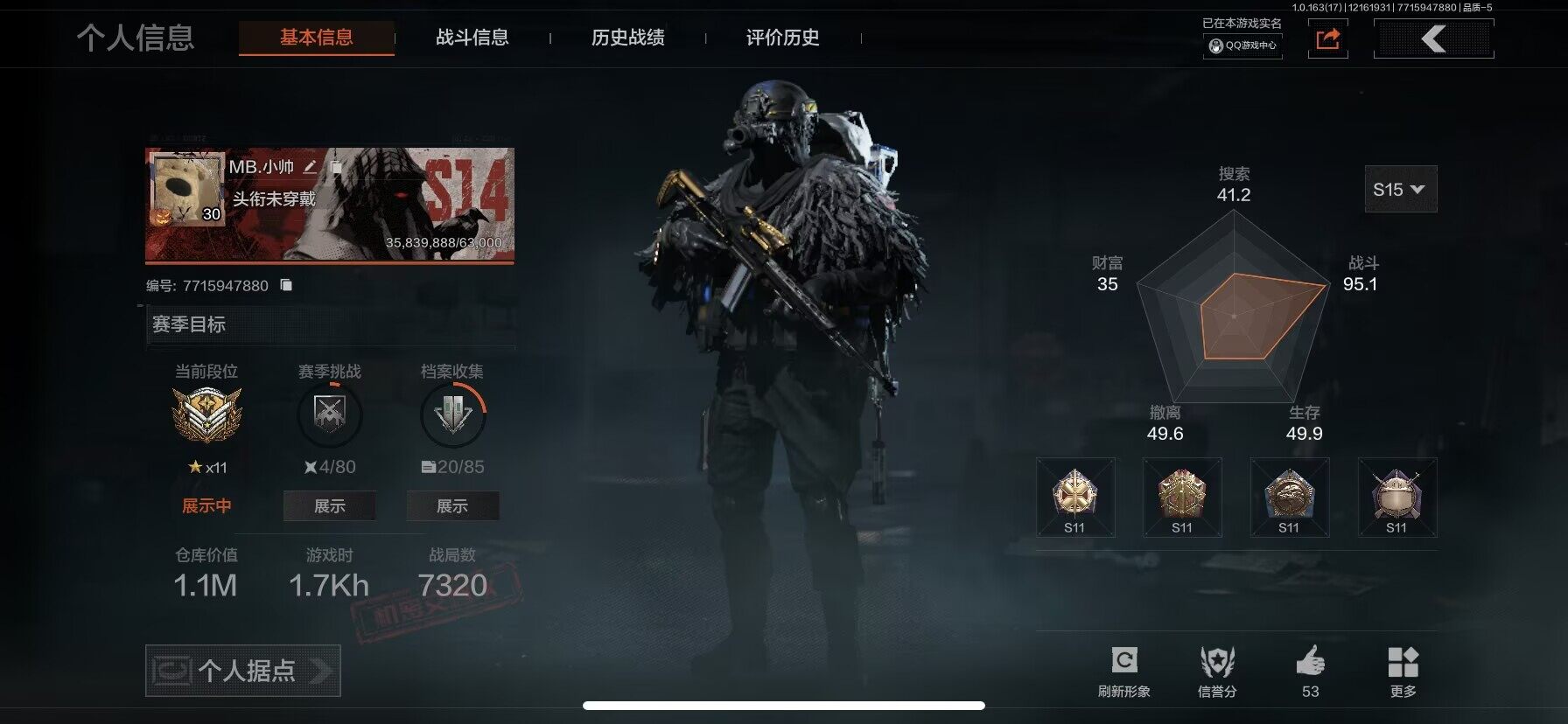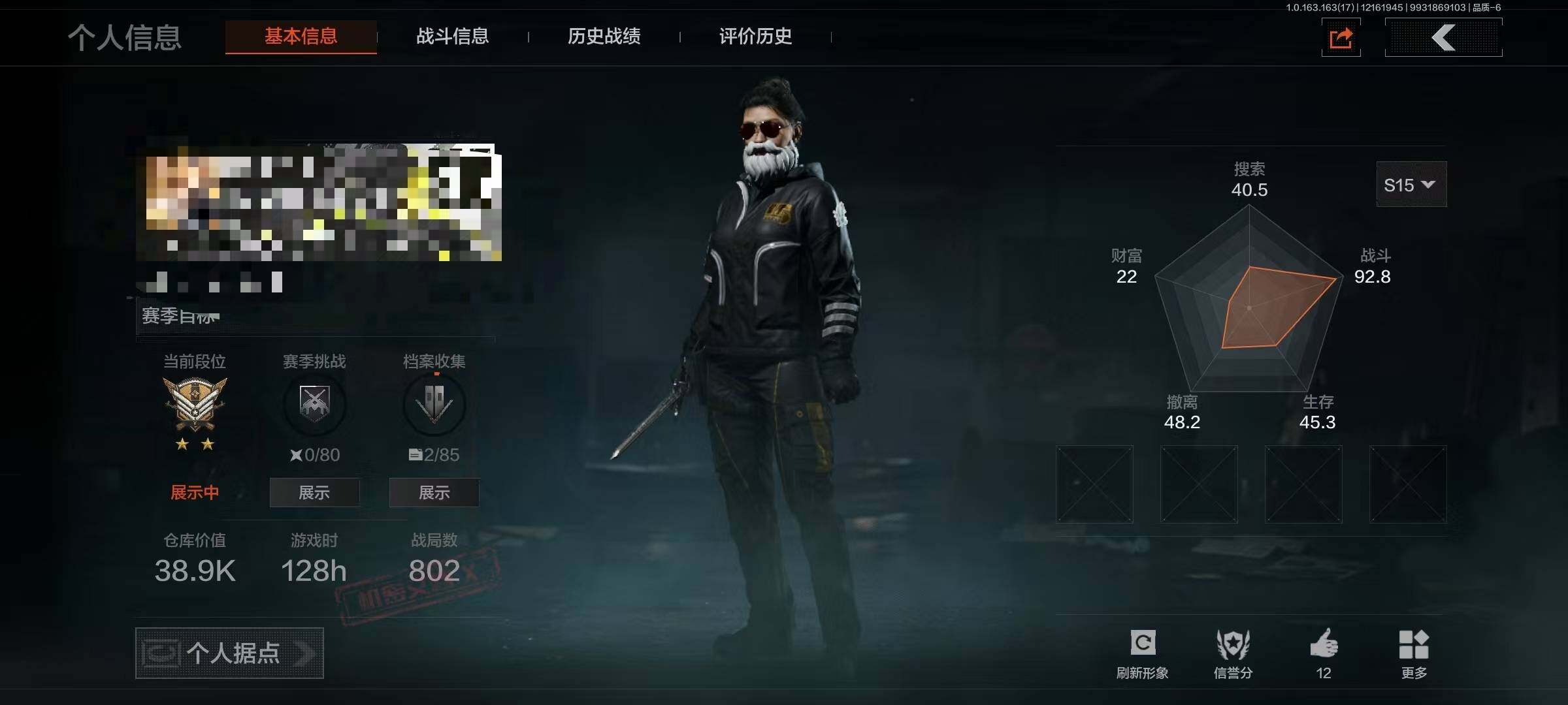 【aqqh83】段位:暗区传说/仓库价值百万:1/使徒欧瑞恩/告丧夜曲aug/战术大师aek