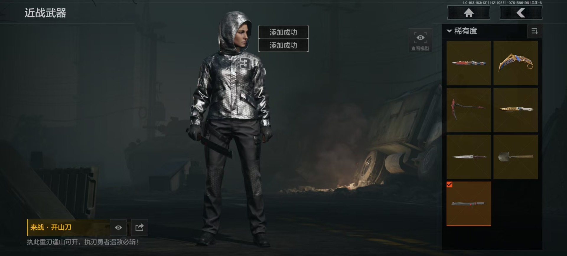 1781702 【近战武器】:赢家匕首,工兵铲 【金色呛皮】:伦琴幻影fal,旗帜aek,战术大师an94,棱光裂变qbu191