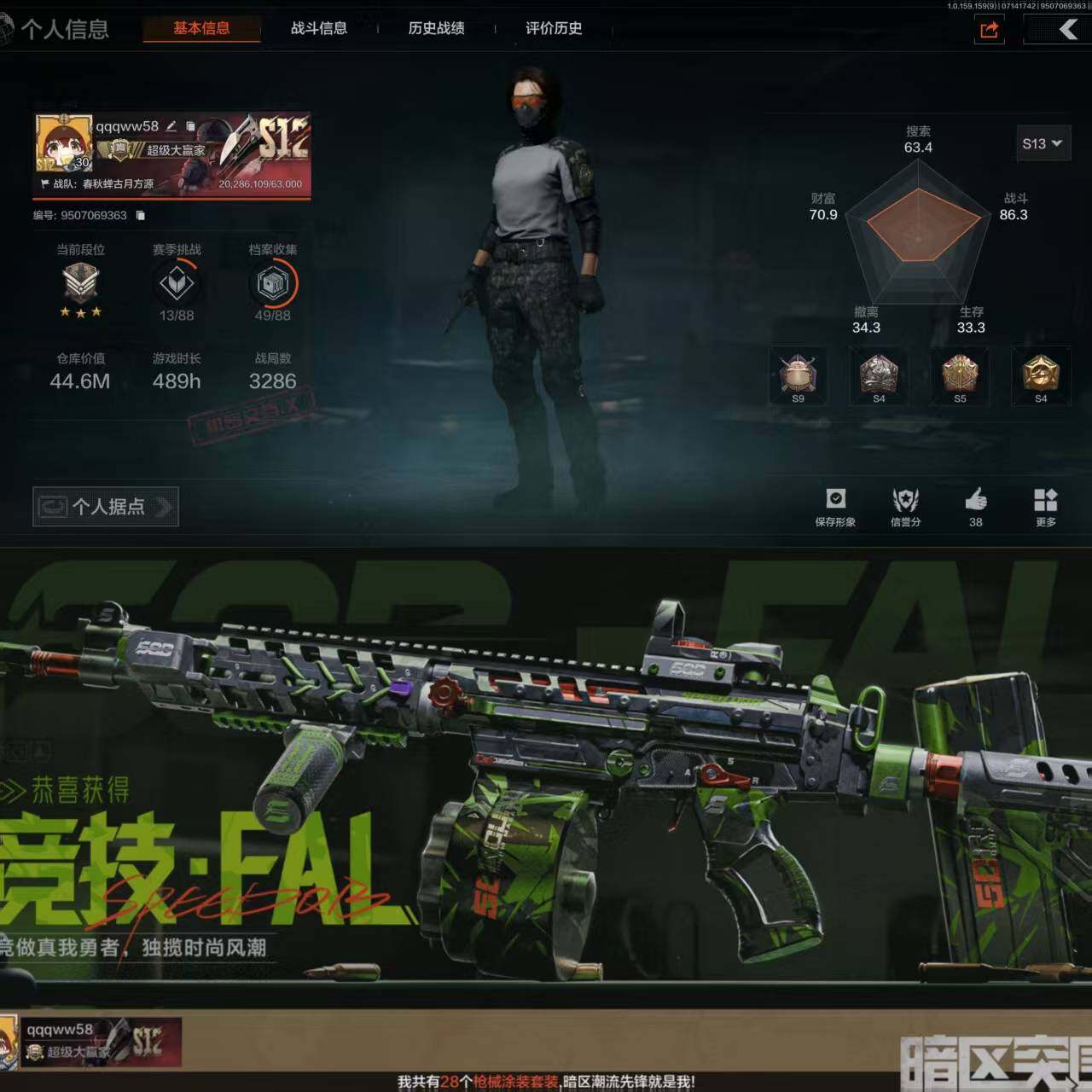 [9874066]暗区 可二次 现金号 多大金 1金呛 仓库价值44.6m 竞技·fal 最后防线·aek 白色丧钟·莫辛 骑士之剑·sj16 灰鼠幻歌·p90