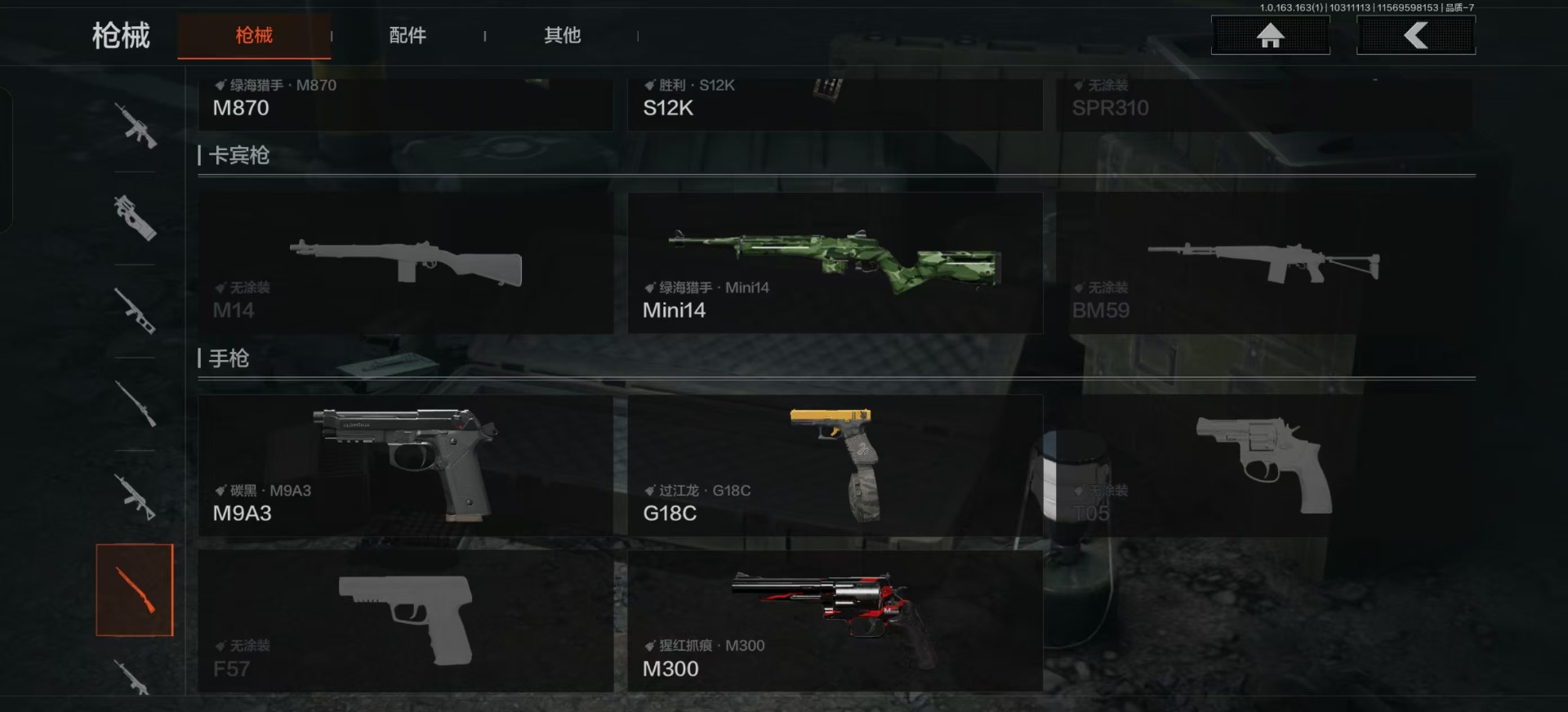 [14592338]库存价值32.4 3近战武器 2金呛皮 可修改实名 【柯恩币数量】:127000 【近战武器】:s-07折刀工兵铲胜利军刀 【金色呛皮】:告丧夜曲·aug利齿风暴·m 【紫色呛皮】:粉绒臻选·an94超越自我·vect9超越自我·ar30利齿风暴·t03鱼跃丹青·m110山地伪装·ak74n