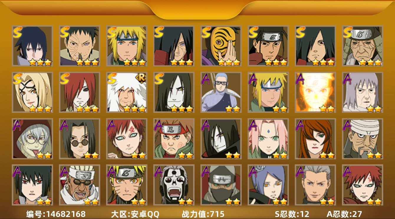 2269592-ios/16s忍/29a忍/战力761w/v10/区服603 【s忍者】 宇智波止水「须佐能乎」,艾「忍界大战」,千手柱间「木叶创立」,宇智波佐助「永恒万花筒」,春野樱「忍界大战」,漩涡鸣人「九喇嘛连结」,自来也「舞之豪杰」,旗木卡卡西「须佐能乎」,大筒木舍人「最终章」,宇智波鼬「秽土转生」,宇智波斑「白面具」,宇智波鼬「须佐能乎」,佩恩「天道」,波风水门,大蛇丸,波风水门「