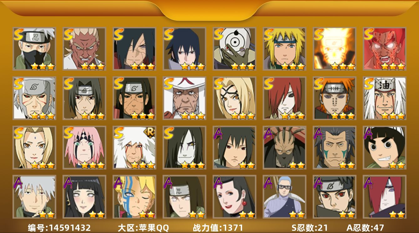 [14591432]v7 21s 47a 1371w战力 秽土日斩68片 2个主场景:木叶周年庆 博人传 连体王者136皮 1传说 yy1555 【s级忍者】:长门「秽土转生」3星,千手扉间「秽土转生」3星,千手柱间「秽土转生」3星,宇智波斑「秽土转生·解」3星,春野樱「忍界大战」3星,艾「忍界大战」3星,宇智波鼬「须佐能乎」3星,旗木卡卡西「须佐能乎」3星,自来也3星,自来也「舞之豪杰」3星,大蛇丸3星,自来也「传说中的三忍」3星,纲手3星,纲手「百豪」3星,猿飞日斩3星,波风水门3星,漩涡鸣人「九喇嘛连结」3星,迈特凯「死门」3星,佩恩「天道」3星,宇智波佐助「永恒万花筒」3星,宇智波斑 「白面具」3星宇智波斑「白面具」 【a级忍者】:艾「青年」2星,长门「青年」2星,波风水门「青年」2星,达鲁伊「博人传」2星,迪达拉2星,迪达拉「秽土转生」2星,大蛇丸「晓」2星,奇拉比2星,奇拉比「忍界大战」2星,飞段4星,飞段「死司凭血」4星,干柿鬼鲛5星,漩涡博人「桃式显现」2星,漩涡鸣人「仙人模式」2星,漩涡鸣人「九尾查克拉」2星,迈特凯5星,旗木卡卡西「万花筒写轮眼」2星,旗木卡卡西「幻之真容」2星,桃地再不斩「秽土转生」2星,我爱罗「疾风传」4星,我爱罗「忍界大战」2星,蝎5星,蝎「绯流琥」2星,小南2星,角都「地怨虞」2星,猿飞阿斯玛5星,猿飞阿斯玛「秽土转生」2星,宇智波止水2星,宇智波鼬2星,宇智波佐助「须佐能乎」2星,宇智波佐助「万花筒写轮眼」2星,药师兜「半蛇斗篷」2星,照美冥「五代目水影」2星,日向宁次「忍界大战」2星,日向雏田「最终章」2星,长十郎「六代目水影」2星,李洛克「忍界大战」2星,猿飞木叶丸「博人传」2星,黑土「博人传」2星,春野樱「百豪」2星,秋道丁次「忍界大战」2星,千代「近松十人卫」2星,志村团藏2星,不缘2星,加藤断2星,宇智波泉奈2星,不动2星
