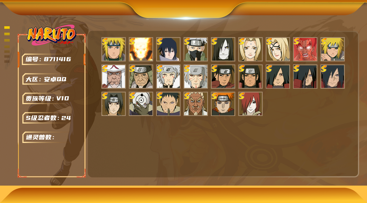 [8711416]v10 24s忍 1145.3w战力 可二次 可修改实名 s级忍者:宇智波斑「秽土转生·解」宇智波佐助「永恒万花筒」漩涡鸣人 「九喇嘛连结」迈特凯「死门」宇智波带土 「忍界大战」千手柱间「秽土转生」旗木卡卡西「须佐能乎」宇智波斑「秽土转生」“宇智波斑” 「白面具」千手扉间「秽土转生」纲手「百豪」波风水门「秽土转生」猿飞日斩「秽土转生」长门「秽土转生」宇智波斑千手柱间艾「四代目雷影」千手扉间宇智波鼬 「须佐能乎」佩恩「天道」猿飞日斩波风水门大蛇丸纲手