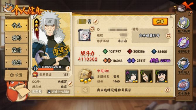 dhy274 "安卓q火影111级 v4 3s 11a 310万战力 60忍者 12通灵兽 408