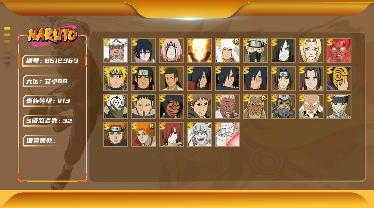 [8612969]v13 32s 可二次 可修改实名 s级忍者:艾「忍界大战」宇智波斑「秽土转生·解」千手柱间·木叶创立宇智波佐助「永恒万花筒」神秘面具男 「红夜之刃」春野樱 「忍界大战」大筒木金式「博人传」漩涡鸣人 「九喇嘛连结」大野木 「忍界大战」迈特凯「死门」宇智波斑 「木叶创立」宇智波带土 「忍界大战」千手柱间「秽土转生」罗砂「四代目风影」自来也 「舞之豪杰」旗木卡卡西「须佐能乎」宇智波鼬「秽土转生」佩恩·天道「超」药师兜「仙人模式」宇智波斑「秽土转生」艾「三代目雷影」“宇智波斑” 「白面具」半藏「秽土转生」无「二代目土影」长门「秽土转生」神秘面具男宇智波鼬 「须佐能乎」佩恩「天道」猿飞日斩波风水门大蛇丸纲手