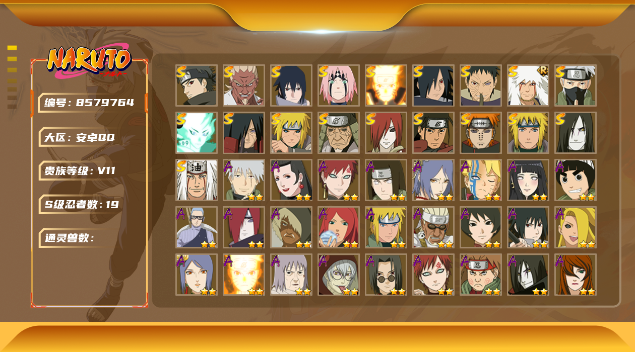 [8580662]v10 17s 可二次 s级忍者:艾「忍界大战」宇智波斑「秽土转生·解」宇智波佐助「永恒万花筒」春野樱 「忍界大战」漩涡鸣人 「九喇嘛连结」迈特凯「死门」宇智波斑 「木叶创立」宇智波带土 「忍界大战」自来也 「舞之豪杰」药师兜「仙人模式」宇智波斑「秽土转生」“宇智波斑” 「白面具」千手扉间「秽土转生」纲手「百豪」波风水门大蛇丸纲手