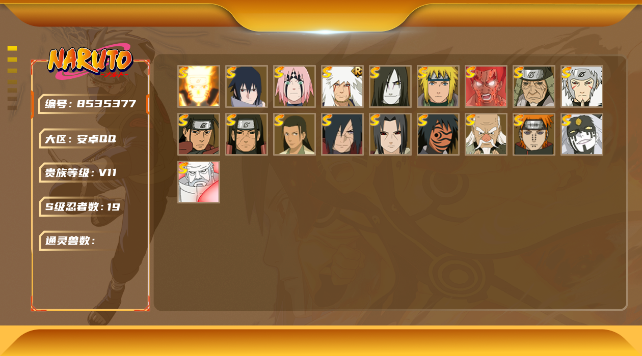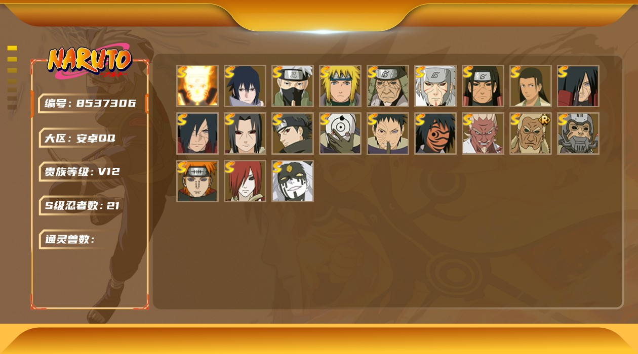 [8537306]v12 21s 可二次 可修改实名 s级忍者:宇智波止水「须佐能乎」艾「忍界大战」大筒木桃式宇智波斑「秽土转生·解」千手柱间·木叶创立宇智波佐助「永恒万花筒」神秘面具男 「红夜之刃」漩涡鸣人 「九喇嘛连结」宇智波带土 「忍界大战」千手柱间「秽土转生」旗木卡卡西「须佐能乎」宇智波鼬「秽土转生」宇智波斑「秽土转生」艾「三代目雷影」“宇智波斑” 「白面具」半藏「秽土转生」千手扉间「秽土转生」猿飞日斩「秽土转生」长门「秽土转生」佩恩「天道」波风水门
