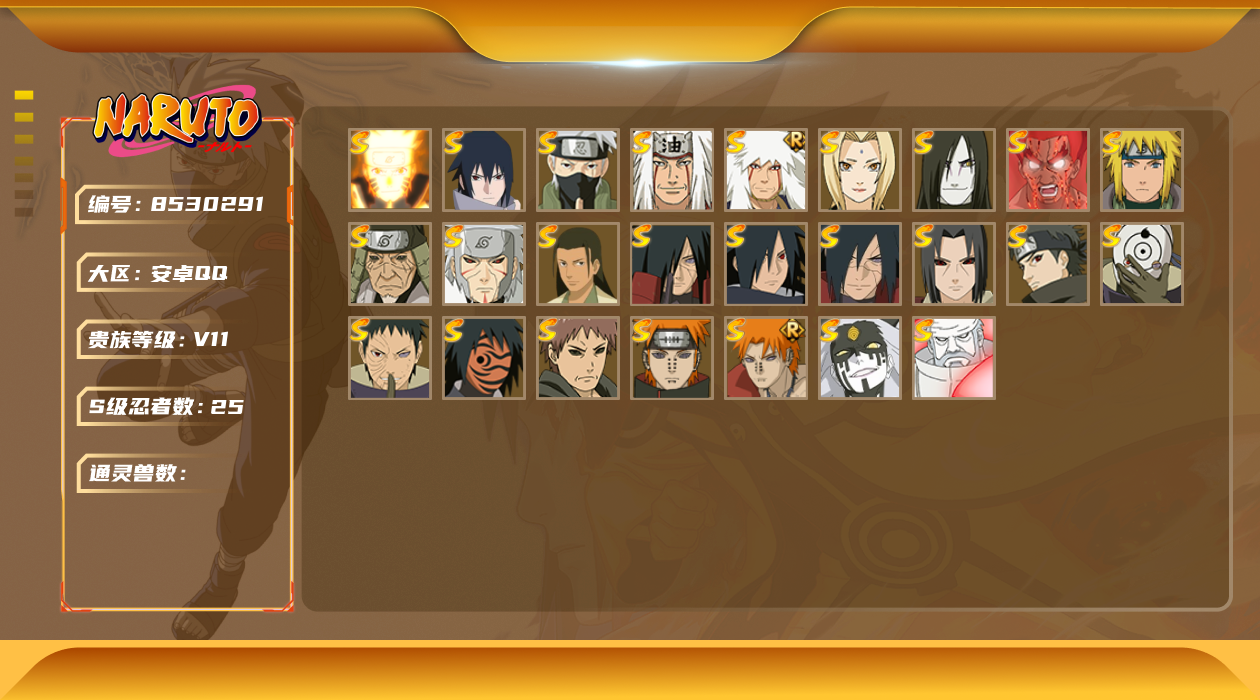 【hy1747】v11/战力1072w/s忍18/a忍36/3星纲手/2星我爱罗「疾风传」/2星宇智波鼬/2星飞段「死司凭血」/2星旗木卡卡西「元气夏日」/3星宇智波鼬「秽土转生」/2星迈特凯/2星长门「青年」/3星宇智波带土「忍界大战」/2星蝎/3星佩恩「天道」/2星照美冥「五代目水影」/3星波风水门/3星漩涡鸣人「九喇嘛连结」/3星波风水门「秽土转生」/2星秋道丁次「忍界大战」/2星漩涡博人「桃式显现」/2星旗木卡卡西「万花筒写轮眼」/2星奇拉比「忍界大战」/3星千手扉间「秽土转生」/3星千手柱间「秽土转生」/2星神秘面具男「忍者之路」/3星罗砂「四代目风影」/2星波风水门「青年」/3星自来也「舞之豪杰」/2星千手扉间「漂泊武士」/3星迈特凯「死门」/3星猿飞日斩/2星药师兜「半蛇斗篷」/2星飞段/2星猿飞阿斯玛/2星漩涡鸣人「仙人模式」/3星春野樱「忍界大战」/2星志村团藏/2星我爱罗「忍界大战」/2星迪达拉/2星干柿鬼鲛/3星宇智波斑「木叶创立」/3星大蛇丸/2星小南「漂泊浪客」/2星漩涡鸣人「九尾查克拉」/2星艾「青年」/3星大野木「忍界大战」/2星不缘/2星宇智波佐助「须佐能乎」/2星千代「近松十人卫」/2星大蛇丸「晓」