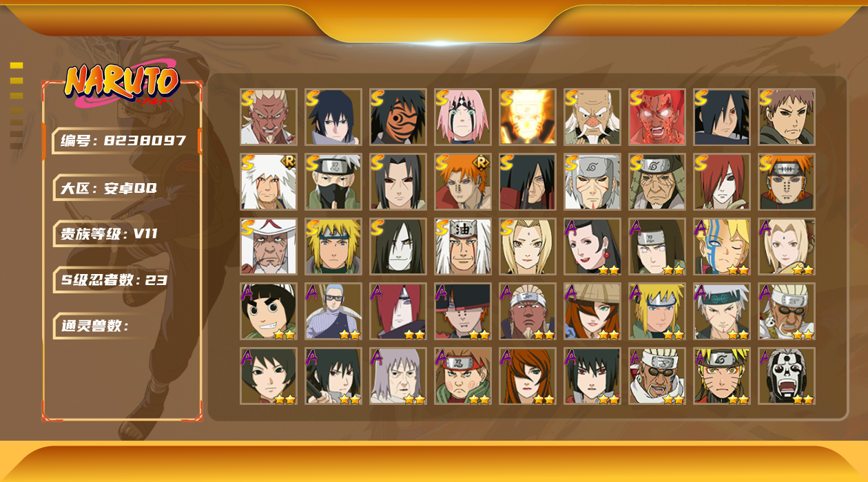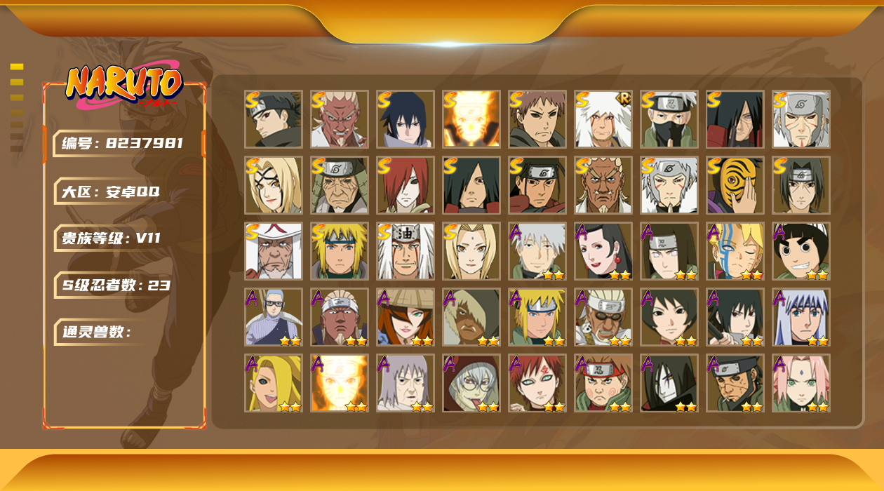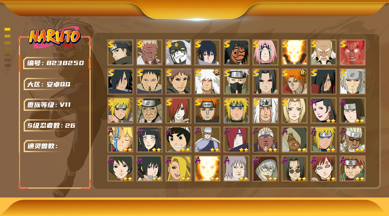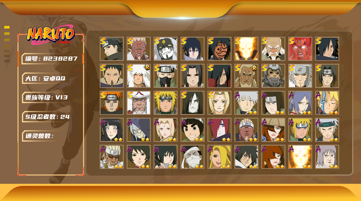 【hyx2374】v11/s忍16/a忍30/3星宇智波斑「秽土转生」/2星波风水门「新春限定」/2星日向宁次「忍界大战」/2星旗木卡卡西「忍界大战」/2星我爱罗「疾风传」/2星飞段「死司凭血」/2星宇智波鼬/3星宇智波佐助「永恒万花筒」/3星大筒木金式/3星旗木卡卡西「须佐能乎」/2星迈特凯/2星长门「青年」/3星宇智波带土「忍界大战」/2星蝎/3星佩恩「天道」/2星照美冥「五代目水影」/3星波风水门/3星漩涡鸣人「九喇嘛连结」/3星波风水门「秽土转生」/2星漩涡博人「桃式显现」/2星奇拉比「忍界大战」/2星李洛克「忍界大战」/2星神秘面具男「忍者之路」/2星长十郎「六代目水影」/2星波风水门「青年」/3星宇智波斑「白面具」/3星迈特凯「死门」/2星佩恩·六道「漂泊浪客」/2星迪达拉「秽土转生」/2星飞段/2星漩涡鸣人「仙人模式」/2星猿飞阿斯玛/3星春野樱「忍界大战」/2星宇智波佐助「万花筒写轮眼」/2星宇智波鼬「夏日限定」/2星宇智波止水「新春限定」/2星干柿鬼鲛/3星宇智波斑「木叶创立」/3星大蛇丸/3星宇智波斑「秽土转生·解」/2星艾「青年」/2星漩涡鸣人「九尾查克拉」/3星大野木「忍界大战」/2星宇智波佐助「须佐能乎」/2星千代「近松十人卫」/2星大蛇丸「晓」