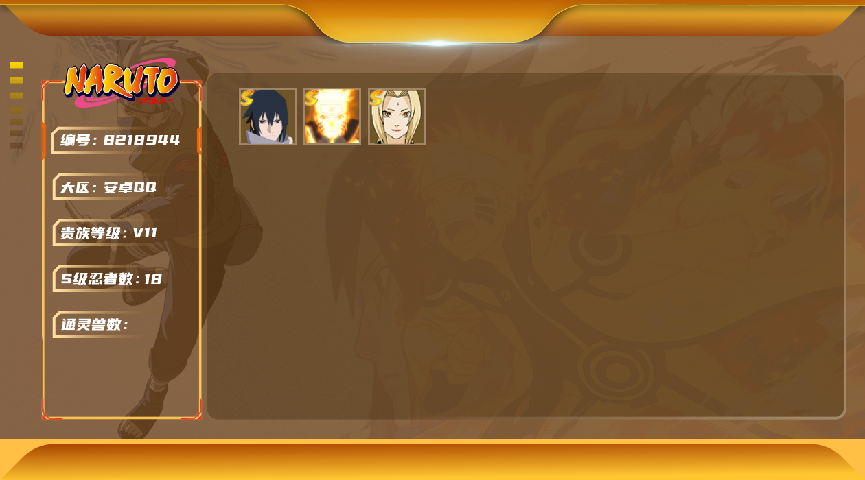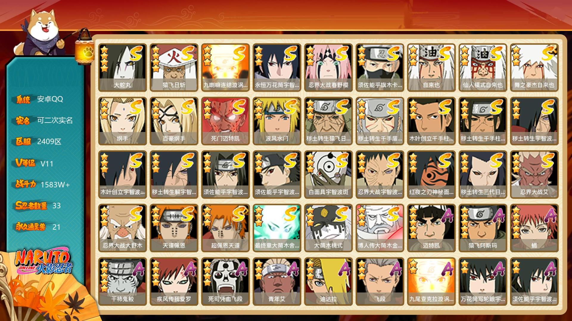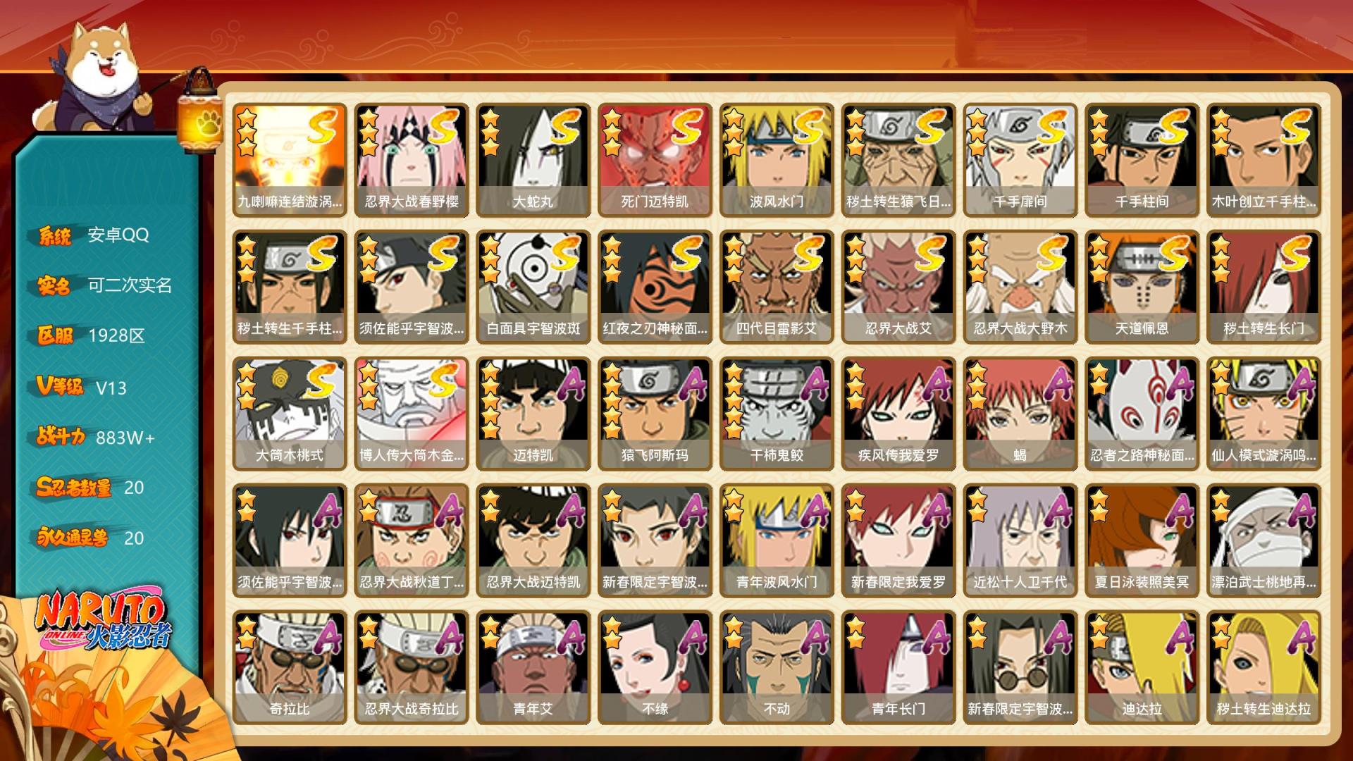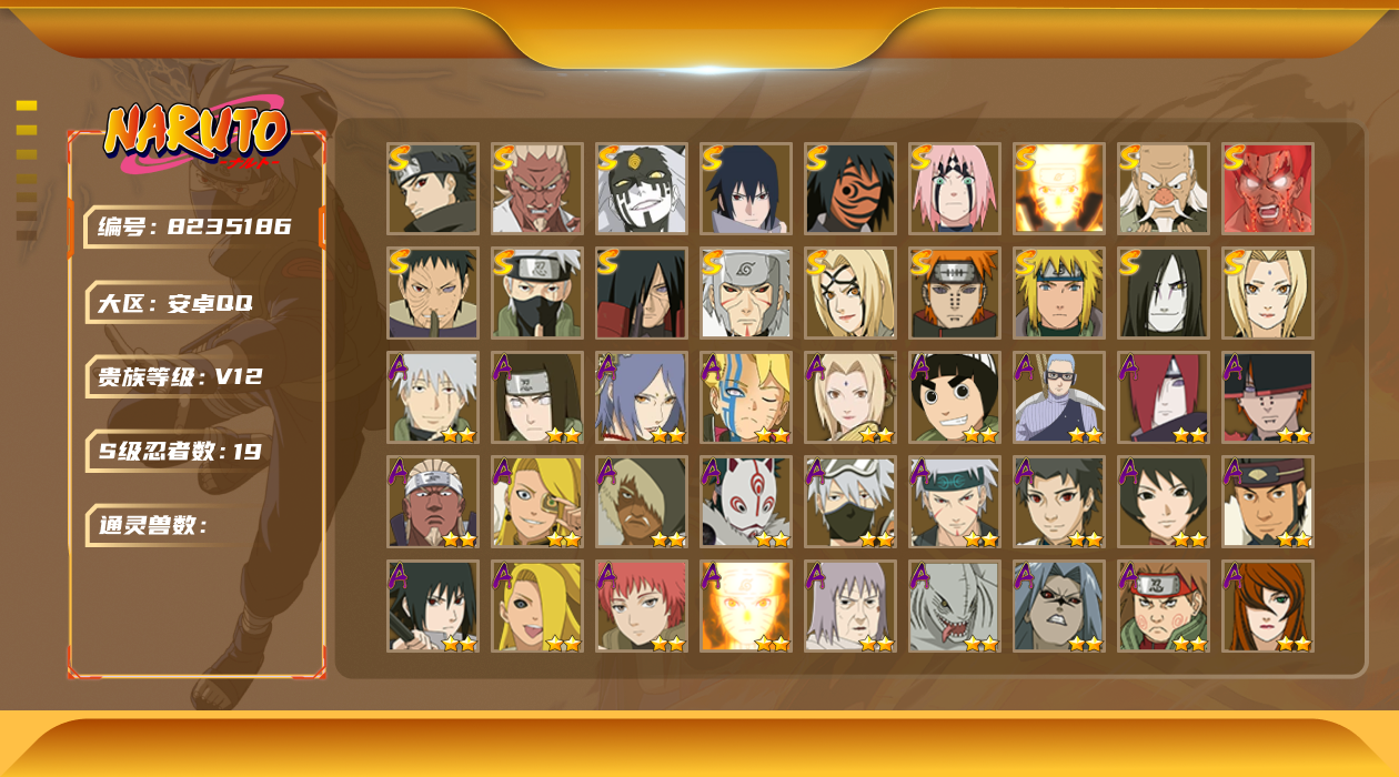 [8218944]a3781/安卓qq/【18s/42a】【战力12273200】纲手/九喇嘛漩涡鸣人/永恒万花筒宇智波佐助/忍战春野樱/大蛇丸/百豪纲手/死门迈特凯/波水风门/猿飞日斩/秽土转生猿飞日斩/秽土转生千手扉间/木叶千手柱间/秽土转生宇智波斑/宇智波斑/秽土转生解宇智波斑/红叶之刃神秘面具男/二代目水影鬼灯幻月/二代目土影无/详情看图/