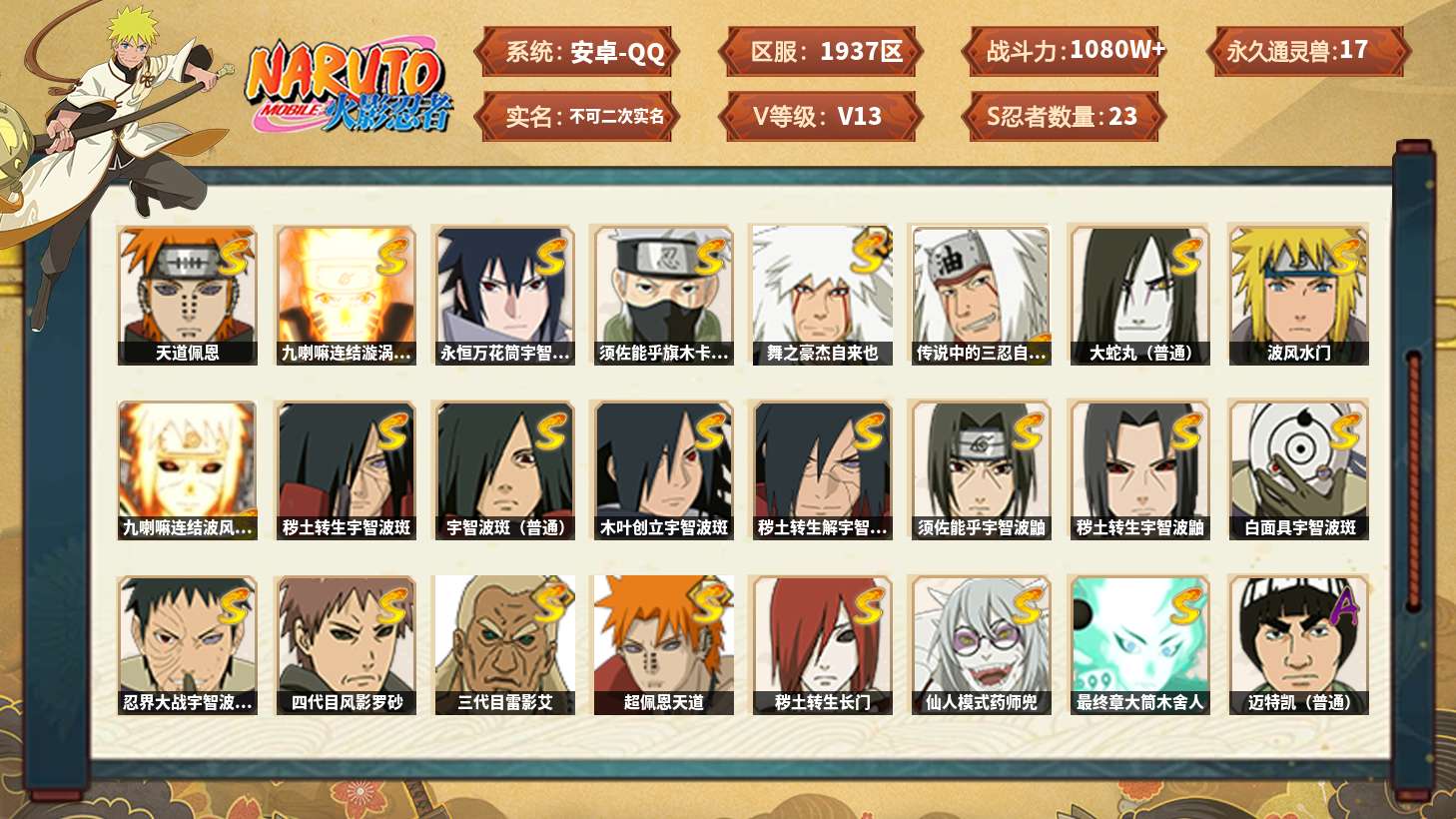 [14652312]v10 29s忍 41a忍 21通灵 1651.7w战力 可二次 可修改实名 【s级忍者】:宇智波止水「须佐能乎」艾「忍界大战」宇智波斑「秽土转生·解」宇智波佐助「永恒万花筒」神秘面具男 「红夜之刃」大筒木金式「博人传」漩涡鸣人 「九喇嘛连结」迈特凯「死门」宇智波带土 「忍界大战」千手柱间「秽土转生」自来也 「舞之豪杰」旗木卡卡西「须佐能乎」宇智波鼬「秽土转生」宇智波斑「白面具」千手扉间「秽土转生」波风水门「秽土转生」猿飞日斩「秽土转生」长门「秽土转生」宇智波斑千手柱间艾「四代目雷影」千手扉间神秘面具男宇智波鼬 「须佐能乎」佩恩「天道」波风水门大蛇丸自来也