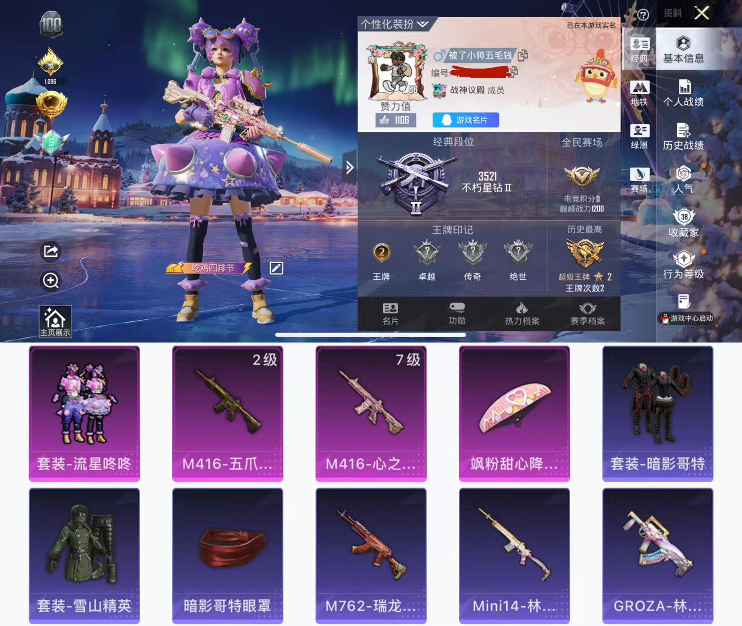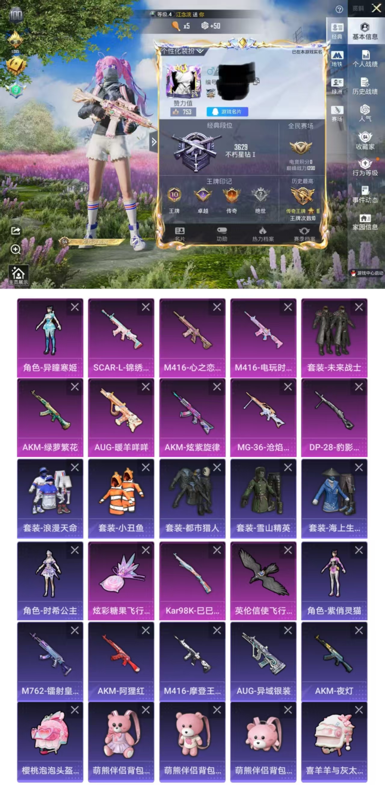 【和平精英】【txhp5635】2粉装,0特效呛,2载具,历史最高段位:超级王牌6星 王牌印记5次 热力值:55116,144套装,175呛械,190装备,112战备;套装:套装-炙焰牛王,角色-千金淑猫,套装-特训学院,套装-橘黑制服,套装-红色运动,套装-黄色运动,套装-蓝色运动,套装-黄色伏地魔,套装-白色伏地魔,套装-黑色伏地魔,套装-骑行爱好者,套装-冰川格斗者,套装-竞技名士,套装-深蓝色名流,套装-酒红色名流,套装-湖蓝色名流,套装-黄色名流,套装-猛禽,套装-游猎者,套装-长空猛禽,套装-竞技勇士朋克,套装-蓝色守护者,套装-冷焰舞者,套装-灼焰舞者,套装-刚毅裁决者,套装-战地菁英,套装-特殊使命,套装-黄色格斗者,套装-灰色格斗者,套装-甜蜜告白,套装-潮流先锋,套装-完美偶像,套装-人气偶像,套装-街头潮人,套装-蓝彩潮人,套装-神秘领域,套装-怒火燎原,套装-决胜时刻,套装-魅力单车,套装-绮丽涂鸦,套装-雪山征服者,套装-坚韧舞者,套装-竞技达人朋克,套装-夜莺强袭者,套装-野性战魂,套装-都市魅力,套装-热血青春,套装-丛林猎人,套装-派对绅士,套装-雪山精英,套装-传奇侦探,套装-幻世战舞者,套装-甜蜜熊情侣,套装-青涩时光,套装-冰川特警,套装-格斗先锋,套装-麻辣教官,套装-梦魇先生,套装-黑夜传说,套装-破蛋小黄鸡,套装-疯狂小兔子,套装-舞夜骑士,套装-深蓝冒险家,套装-迷域探索者,套装-机械英豪,套装-机械征服者,套装-ss5特训,套装-圣诞大吉,套装-冰原使者,套装-凛冬战士,套装-北国孤狼,套装-ss6特训,套装-拳皇97草薙京,套装-炽焰拳师,套装-格斗专家,套装-仓鼠灰灰,套装-跃动心情,套装-ss7特训,套装-黑色刀锋,套装-核芯基因,套装-精神漫游,套装-霓虹街区,套装-暗夜契约,套装-纯白誓言,套装-ss10特训,套装-ss8特训,套装-智慧之神,套装-白熊同盟,套装-萌黄之夏,套装-人鱼之吻,套装-夏日音浪,套装-ss9特训,套装-风华少年志,套装-白月香洋装,套装-探宝勇士,套装-牛气满满,套装-ss11特训,套装-白虎圣者,套装-原初圣火,套装-逆风勇士,套装-战术大师,套装-ss12特训,套装-牛气冲天,套装-ss18特训,套装-耀粉歌者,套装-飞行日记,套装-ss13特训,套装-ss14特训,套装-天籁歌者,套装-ss15特训,套装-ss16特训,套装-暴风机械师,套装-时空追击者,角色-英勇保护者,套装-ss17特训,套装-瑞龙福将,套装-团圆交子,套装-福星高照,套装-虎虎生威吉莉,套装-ss19特训,套装-浓情蜜辣,套装-炫蓝之夏,套装-ss20特训,套装-浑天鲲鹏,套装-猎梦纪元,套装-甜心亚梦,套装-虚音幻奏,套装-香草威化,套装-ss21特训,套装-暖心熊熊,套装-萌趣咩咩,套装-娇憨猪猪,套装-夏雨游龙,套装-樱桃黑巧,套装-玉兔迎春,套装-ss22特训,套装-田园牧歌,套装-轻风白浪,套装-ss23特训,角色-摩登魅猫,套装-琴音绮想,套装-画境星梦,套装-ss36特训,套装-雪国风尚;呛皮:scar-l-生命誓言,scar-l-红色方程式,scar-l-炫彩节奏,scar-l-暗夜玫瑰,scar-l-青丘仙客,scar-l-玉兔迎春,scar-l-乌木金纹,akm-灼热熔岩,akm-玉龙,akm-百万伏特,akm-破晓战魂,akm-霓虹街区,akm-夜灯,akm-乌木金纹,m416-蓝色火焰,m416-绯红前夜,m416-红色方程式,m416-乌木金纹,g36c-不夜海上花,g36c-时空追击者,g36c-青丘仙客,g36c-乌木金纹,m16a4-红色方程式,m16a4-夜灯,m16a4-机械英豪,m16a4-甜心亚梦,m16a4-乌木金纹,ac-val-甜心亚梦,ac-val-乌木金纹,ac-val-彩虹甜喵,ac-val-天降萌叽,m762-拳皇97,m762-深海曼妙,m762-牛气冲天,m762-瑞龙福将,m762-天降萌叽,m762-乌木金纹,蜜獾-娇憨猪猪,蜜獾-垂柳戏鸭,蜜獾-天降萌叽,groza-生命誓言,groza-春暖花开,groza-黑色刀锋,groza-田园牧歌,groza-乌木金纹,aug-耀粉歌者,aug-乌木金纹,q-原初圣火,q-电玩视界,q-乌木金纹,ace32-画境星梦,mk47-乌木金纹,m24-奇异狩猎者,m24-冰封烈焰,m24-众神之王,m24-炫彩节奏,m24-乌木金纹,kar98k-红色方程式,kar98k-古堡领主,kar98k-勇闯险境,kar98k-彩虹符号,kar98k-炫彩节奏,kar98k-乌木金纹,莫辛纳甘-乌木金纹,awm-不夜海上花,awm-乌木金纹,win94-夏日绵绵冰,win94-机械英豪,win94-瑞龙福将,slr-众神之王,slr-娇憨猪猪,slr-甜蜜草莓,vss-黑色刀锋,vss-田园牧歌,vss-乌木金纹,qbu-不夜海上花,mk14-乌木金纹,sks-夜灯,sks-勇闯险境,sks-时空追击者,sks-乌木金纹,mini14-金鼠迎春,mini14-原初圣火,mini14-炫彩节奏,mini14-耀粉歌者,mini14-乌木金纹,m1加兰德-画境星梦,mk12-乌木金纹,vect-生命誓言,vect-黑色刀锋,vect-彩虹符号,vect-暗夜玫瑰,vect-田园牧歌,vect-乌木金纹,汤姆逊-勇闯险境,汤姆逊-耀粉歌者,汤姆逊-炫彩节奏,汤姆逊-环太平洋,汤姆逊-乌木金纹,ump45-夜灯,ump45-蓝色火焰,ump45-生命誓言,ump45-天启纪元,ump45-时空追击者,ump45-乌木金纹,mp5k-众神之王,mp5k-画境星梦,uzi-红色方程式,uzi-古堡领主,uzi-众神之王,uzi-炫彩节奏,uzi-娇憨猪猪,uzi-乌木金纹,p90-乌木金纹,野牛-机械英豪,s686-红色方程式,s686-生命誓言,s686-冰封烈焰,s686-不夜海上花,s686-蜜语绒猫,s686-乌木金纹,s12k-破晓战魂,s12k-夜灯,s12k-机械英豪,s12k-瑞龙福将,s12k-娇憨猪猪,s12k-垂柳戏鸭,s12k-幻世战舞者,s12k-乌木金纹,spas-12-太空嘟嘟,spas-12-田园牧歌,dbs-时空追击者,dbs-甜心亚梦,s1897-春暖花开,s1897-勇闯险境,s1897-炫彩节奏,aa12-g-画境星梦,m249-破晓战魂,m249-古堡领主,m249-拳皇97,m249-四圣焕新,m249-冰晶雪宝,m249-乌木金纹,mg3-瑞龙福将,mg3-幻世战舞者,mg3-乌木金纹,dp-28-原初圣火,dp-28-彩虹符号,dp-28-橘柚倾心,dp-28-甜心亚梦,dp-28-乌木金纹,蝎式手呛-千金淑猫,p18c-百万伏特,p18c-原初圣火,沙墨之鹦-旋转