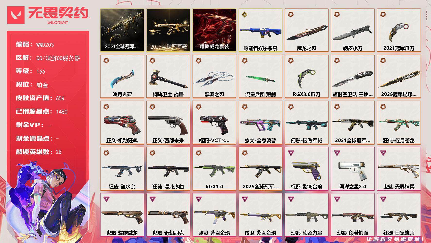 【wwd203】终极22/传奇1/卓越16/皮肤89/等级166/段位:铂金/2025全球冠军赛套装/2021全球冠军赛套装/耀鳞威龙套装/幻棱/炼狱/维斯/暮蝶/钛狐/壹决/铁臂/捷风/雷兹/幽影/不死鸟/贤者/猎枭/蝰蛇/零/芮娜/奇乐/尚勃勒/霓虹/斯凯/夜露/星礈/k/o/海神/盖可/黑梦/钢锁/近战武器-2025全球冠军赛 蝴蝶刀/近战武器-2021全球冠军赛 爪刀/近战武器-超时空卫队 三棱军刺/近战武器-剥皮小刀/近战武器-rgx 11z pro//3.0 爪刀/近战武器-黑波之刃/近战武器-威龙之刃/近战武器-流星兵团 短剑/近战武器-钢轨卫士 战锤/近战武器-魄月玄刃/狂徒-2025全球冠军赛/狂徒-2021全球冠军赛/狂徒-混沌序曲/狂徒-塑水宗/狂徒-偃月苍龙/狂徒-rgx 11z pro/狂徒-海洋之星/狂徒-日冕雄师/狂徒-耀鳞威龙/狂徒-离子武器//2.0/狂徒-钢轨卫士/狂徒-弧光异彩/狂徒-流星兵团/幻影-源能者娱乐系统/幻影-破败军械/幻影-般若假面/幻影-侦察力量/幻影-噬源兽防卫工程/幻影-战术小伙伴/戍卫-紫阙金琅/戍卫-钢轨卫士/戍卫-彩梦之城/戍卫-战术熊与伙伴们/獠犬-全息波普/獠犬-弧光异彩/獠犬-战术小伙伴/冥驹-堕天遗武/冥驹-起源/飞将-盖亚的复仇/飞将-信手涂鸦/飞将-光导纤维/飞将-战术熊与伙伴们/莽侠-纤云弄巧/奥丁-流星兵团/奥丁-信手涂鸦/奥丁-战术小伙伴/雄鹿-彩梦之城/骇灵-紫阙金琅/骇灵-流星兵团/骇灵-光导纤维/骇灵-信手涂鸦/蜂刺-弧光异彩/蜂刺-纤云弄巧/蜂刺-战术小伙伴/标配-紫阙金琅/标配-海洋之星//2.0/标配-彩梦之城/标配-光导纤维/标配-战术熊与伙伴们/标配-vct x g2/正义-机动狂飙/正义-西部未来/正义-沙尘幻旅/正义-纳米打击/正义-纤云弄巧/鬼魅-奇幻朋克/鬼魅-天界神兵/鬼魅-耀鳞威龙/鬼魅-流星兵团/鬼魅-光导纤维/鬼魅-数码咒术/鬼魅-信手涂鸦/狂怒-钢轨卫士/狂怒-战术熊与伙伴们/短炮-钢轨卫士/短炮-好搭档/短炮-纤云弄巧/终章:激斗汉堡 卡面/进入射程 卡面/《双城之战》拥抱 卡面/精灵大战 卡面/欢迎来到底城 卡面/南瓜盛典 卡面/无畏契约:暮蝶 卡面/修车达人 卡面/正义的化身 卡面/时间到 卡面/最高舞台 卡面/复活专家 卡面/先瓦为敬 银色 卡面/声感陷阱设计图 卡面/梦幻奶茶 卡面/趁热吃 卡面/西装暴徒 卡面/失控边缘 卡面/哨卫者之领域 卡面/艺无止境//全球冠军赛 卡面/暮蝶工牌 卡面/战术熊与伙伴们 卡面/源能反应 卡面/流星兵团 卡面/纤云弄巧 卡面/暂别喧嚣 卡面/打造专属狂徒 卡面/零点嗅探设计图 卡面/vct x g2 卡面/沙雕爆能器 卡面/无畏契约go!第一卷:芮娜 卡面/清除名单 卡面/无畏契约go!第一卷:零 卡面/龍记 卡面/化茧成蝶 卡面/比比看谁快? 卡面/无垠星环 卡面/《双城之战》金克丝 卡面/蝰蛇vs幽影 卡面/势不可挡//盖可 卡面/逆向独行 卡面 /同步耍酷 卡面/完美调谐 卡面 /没有什么能逃过我的眼睛 卡面/光导纤维 卡面/战术小伙伴 卡面/钢轨卫士 卡面/暗呛 卡面/终章:黑影先生的咖啡! 卡面/铁臂vs雷兹 卡面/钢锁vs盖可 卡面/别冒尖 卡面/天台狂欢 卡面/夯实根基 卡面/"luie" 卡面/热烈欢迎 卡面/铁臂设计图 卡面/代号红色 卡面/冰淇淋店 卡面/新兵报到 卡面/友军火力 卡面/v契约 卡面/无畏契约 卡面/嗨宝南瓜灯 喷漆/嘭! 喷漆/都算到了 喷漆/控场勿近 喷漆/伤心心 喷漆/熊抱 喷漆/超级粉丝 喷漆/捷风差距 喷漆/惊声尖叫 喷漆/水晶球 喷漆/拼一呛 喷漆/加油!加油! 喷漆/开心到爆炸 喷漆/皮蛋萌舞 喷漆/我觉得不行 喷漆/头号粉丝 喷漆/吸一口快乐 喷漆/永远的答案 喷漆/再来一次? 喷漆/别挡我的路! 喷漆/我的刀呢? 喷漆/当然可以 喷漆/流星兵团 喷漆/战术熊与伙伴们 喷漆/禁止喷漆 喷漆/纤云弄巧 喷漆/uwu 喷漆/新潮流 喷漆/vct x g2 喷漆/双击点赞 喷漆/买装还是存钱 喷漆/醒狮贺春 喷漆/萌化了 喷漆/酷熊冲浪 喷漆/无畏契约go!第一卷:芮娜 喷漆/红鳞 喷漆/无畏契约go!第一卷:零 喷漆/无畏契约go!第一卷:捷风 喷漆/无畏契约go!第一卷:贤者 喷漆/暴走萝莉 喷漆/松叶 喷漆/无畏契约go!第一卷:奇乐 喷漆/辣得好下饭 喷漆/飓刃涂鸦 喷漆 /旅行小熊 喷漆/战术小伙伴 喷漆/又一个梦幻组合 喷漆/是大风刮来的 喷漆 /静电火花 喷漆 /今天的潮声甚是喧嚣 喷漆 /请你冷静点 喷漆 /蕊形灯 喷漆/这是你掉的吗? 喷漆/省钱大师 喷漆 /皇冠拉花 喷漆/该转点了 喷漆/凌空惊吓 喷漆/老铁困了 喷漆/口袋贤者 喷漆/胜利属于无畏契约 喷漆/glhf 喷漆/无畏契约 喷漆/终章:猫猫木乃伊 挂饰/悠闲鸡块 挂饰/伞绳 挂饰/《双城之战》小蛋糕 挂饰/第九季//第三幕 纪念币 挂饰/无畏契约go!第一卷 芮娜 挂饰/无畏契约go!第一卷 零 挂饰/鱼骨头 挂饰/熔岩灯 挂饰/第九季//第二幕 纪念币 挂饰/糖葫芦 挂饰/袖珍捷风 挂饰/迷你浓缩 挂饰/第九季//第一幕 纪念币 挂饰/终章:迷你机甲 挂饰/犯困的布鲁诺 挂饰/战术河童 挂饰/招财猫熊 挂饰/迷你机甲 挂饰/荧光棒 挂饰/章鱼烧先生 挂饰/流星兵团 挂饰/云开见日 挂饰/第八季//第三幕 纪念币 挂饰/深海水母 挂饰/传世莲华 挂饰/vct x g2 挂饰/第八季//第二幕 纪念币 挂饰 /天外飞客 挂饰/好运福爪 挂饰/悠闲鸭 挂饰/红鳞松叶 挂饰/《双城之战》魄罗 挂饰/酷闪轮滑 挂饰/呼啦熊 挂饰/晒出笑脸 挂饰/瞄这里 挂饰/盆栽小友 挂饰/斑点小姐 挂饰/插电音乐 挂饰/第八季//第一幕 纪念币 挂饰/终章:高音谱号 挂饰/浪漫雪国 挂饰/彩糖面包 挂饰/冬日絮语 挂饰/海豹的认可 挂饰/第七季//第三