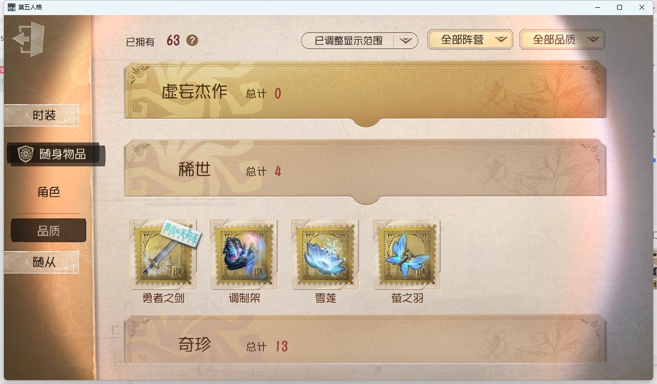 [14563147]苹果官服 邮箱账号 1虚妄杰作 243时装 13金皮 70紫皮 18随从 101随身物品 【时装】:古董商-招风旗渔女-垂泪的神女使徒-多加雷萨小说家-最原终一画家-温暖的平安夜古董商-木兰园丁-异想hello kitty爱哭鬼-摩诺渔女-百万人鱼律师-亚伯拉罕·葛雷祭司-“绯”渔女-chef k古董商-填海平邮差-秋日随想“囚徒”-天海兰太郎调香师-提炼师古董商-黑鸦咒术师-椰香假日杂技演员-雨宫莲杂技演员-joker空军-爱神之吻记者-伊布红蝶-融化的泪琥珀大副-雷斯垂德探长雕刻家-善忘的海马体骑士-艺术品商人爱哭鬼-善恶的本性教授-吟游诗人画家-掌中篆记26号守卫-秘密大厨小说家-无归的昨日冒险家-赞因“法罗女士”-向深处求告魔术师-动力芯幸运儿-蛋小黄的好朋友古董商-墨韵宿伞之魂-桃面书生摄影师-“琥珀”勘探员-盛夏飞盘“法罗女士”-violet古董商-菌丝研究先知-纯白之盐调酒师-逐浪的玫瑰“法罗女士”-芳泽霞“小女孩”-异动指针小说家-“伊始新篇”园丁-郁金香之梦破轮-沙滩漂移蜡像师-收藏品空军-新岛真空军-queen祭司-“朝圣者”机械师-佐仓双叶空军-“苏珊娜”蜡像师-淋浴魔术师-梅林昆虫学者-可妮兔“杰克”-夜来香大副-明智吾郎“噩梦”-随机数红蝶-仙鹤红蝶-彼岸红蝶-更纱红夫人-贝拉夫人红蝶-竹华舞女-高卷杏舞女-女武神舞女-panther调香师-致命温柔调香师-lady k调香师-红菱艳调香师-摩涅莫绪涅之梦调香师-花序园丁-奥村春先知-月相“小女孩”-年岁前锋-坂本龙司盲女-海西遗风梦之女巫-川上富江摄影师-月下绅士入殓师-喜多川祐介 【随身物品】:荣光的残像(稀世)茅龙书(稀世)夏(稀世)遗忘之花(稀世)火火火(奇珍)指挥(奇珍)海岸花环(奇珍)海之低语(奇珍)集邮册(奇珍)回旋镖奇珍炸药桶奇珍“全熟”奇珍凝固的声音奇珍漂浮奇珍充气海豚奇珍沙漠精灵(奇珍)咖啡壶稀世德米特里1号奇珍聚集哨笛奇珍手摇铃奇珍酩酊奇珍心海之梦奇珍欢呼(奇珍)糖果鬼(奇珍)秘密(奇珍)折柳稀世海底遗物奇
