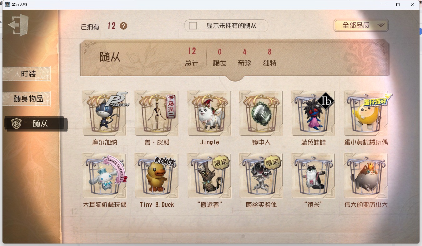 [14530103]安卓官服 手机账号 134时装 6金皮 39紫皮 4随从 36随身物品 【时装】:园丁-源自星辰佣兵-布朗熊渔女-chef k野人-零件拍档“杰克”-加里气象学家-茶歇小姐梦之女巫-裁缝夫人渔女-审判之翎咒术师-噬恶之渊红蝶-融化的泪琥珀“慈善家”-鎏金的表演大师病患-溯光小说家-福尔摩斯大副-雷斯垂德探长雕刻家-善忘的海马体骑士-ment k小说家-肖驰画家-掌中篆记祭司-阿乌拉幸运儿-“未知射线”x医生-银锑 守墓人-冥契 入殓师-变彩隐士-薄金 心理学家-菲伦气象学家-芙莉莲“法罗女士”-向深处求告玩具商-清洁翼佣兵-oph.naib野人-青须的公爵先知-纯白之盐拉拉队员-采集速巡小说家-“伊始新篇”园丁-郁金香之梦画家-多色印刷勘探员-矿业董事勘探员-雀舌哭泣小丑-蚕食者病患-星辰舞女-恶之花调香师-致命温柔 【随身物品】:观星(奇珍)海之低语(奇珍)漂浮奇珍沙漠精灵(奇珍)拾贝奇珍扑克牌奇珍记忆囚笼奇珍“密约”奇珍月光沙漏奇珍酩酊奇珍糖果鬼(奇珍)绝境航船(稀世)雷电生成器稀世白泽玉奇珍鹰羽奇珍
