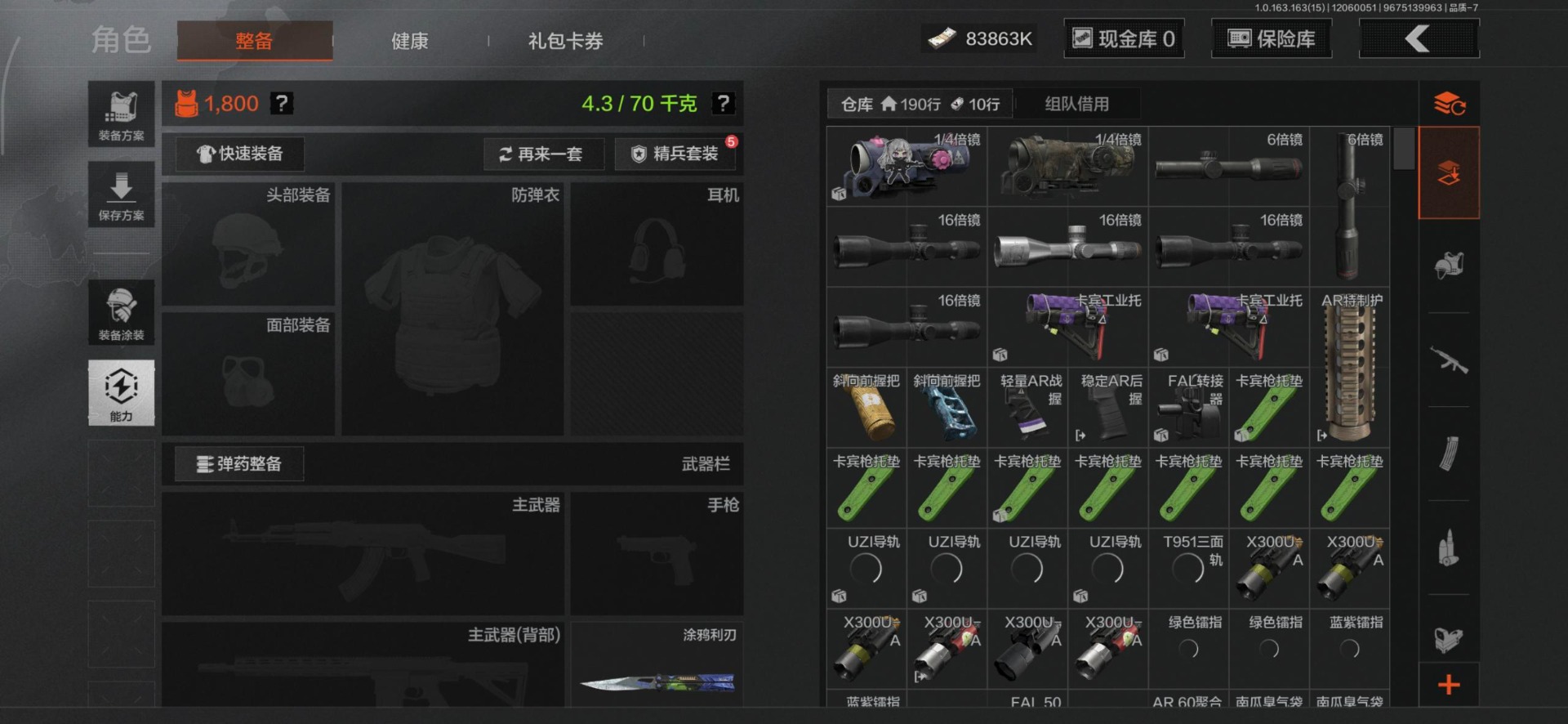 库存价值22.2 2近战武器 2金套装 4金呛皮 可修改实名 【柯恩币数量】:356043 【角色装扮(金)】:使徒·欧瑞恩脉冲·马克西姆 【近战武器】:苍穹利爪工兵铲 【金色呛皮】:告丧夜曲·aug利齿风暴·m战术大师·an94包络战术·akm 【紫色呛皮】:利齿风暴·t79战