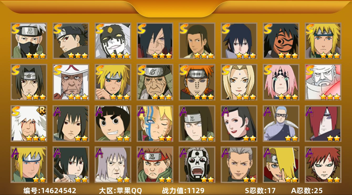 [14624545]v12 33s忍 50a忍 22通灵 1457.3w战力 可二次 可修改实名 【s级忍者】:宇智波止水「须佐能乎」宇智波佐助「永恒万花筒」大筒木金式「博人传」漩涡鸣人 「九喇嘛连结」迈特凯「死门」宇智波斑 「木叶创立」宇智波带土 「忍界大战」千手柱间「秽土转生」自来也 「舞之豪杰」旗木卡卡西「须佐能乎」大筒木舍人 「最终章」自来也 「传说中的三忍」宇智波鼬「秽土转生」佩恩·天道「超」药师兜「仙人模式」宇智波斑「秽土转生」艾「三代目雷影」宇智波斑「白面具」半藏「秽土转生」千手扉间「秽土转生」纲手「百豪」波风水门「秽土转生」无「二代目土影」猿飞日斩「秽土转生」千手柱间艾「四代目雷影」宇智波鼬 「须佐能乎」佩恩「天道」猿飞日斩波风水门大蛇丸自来也纲手 【通灵兽】:熊猫