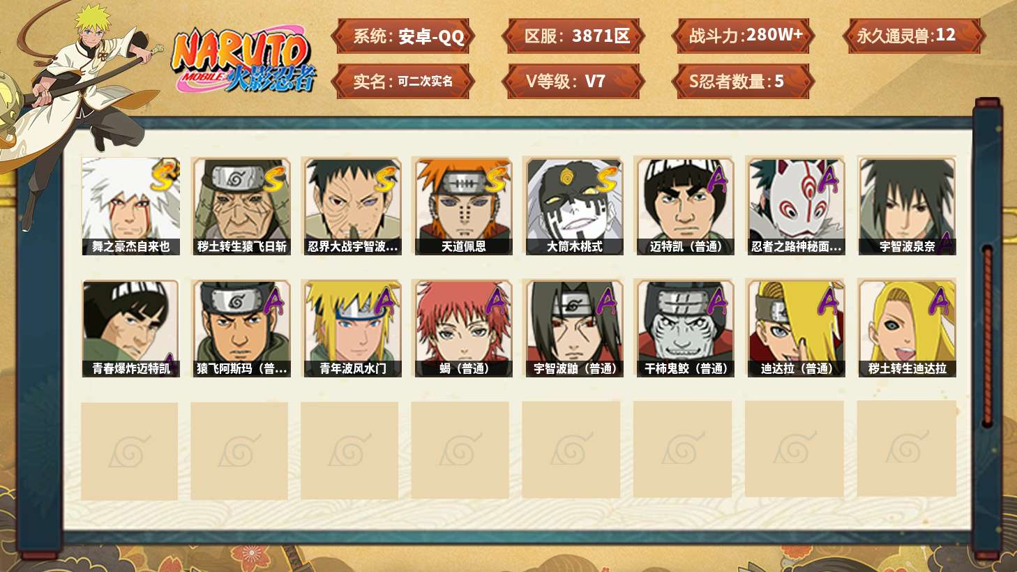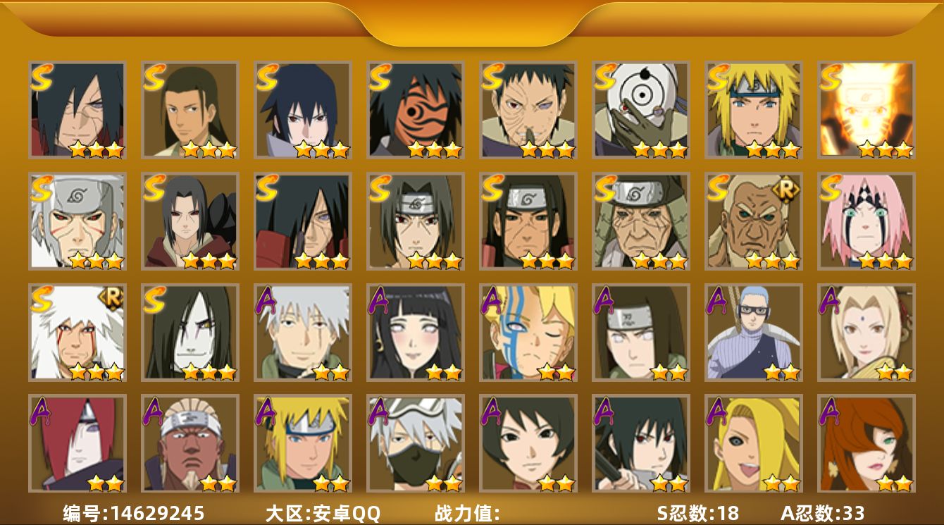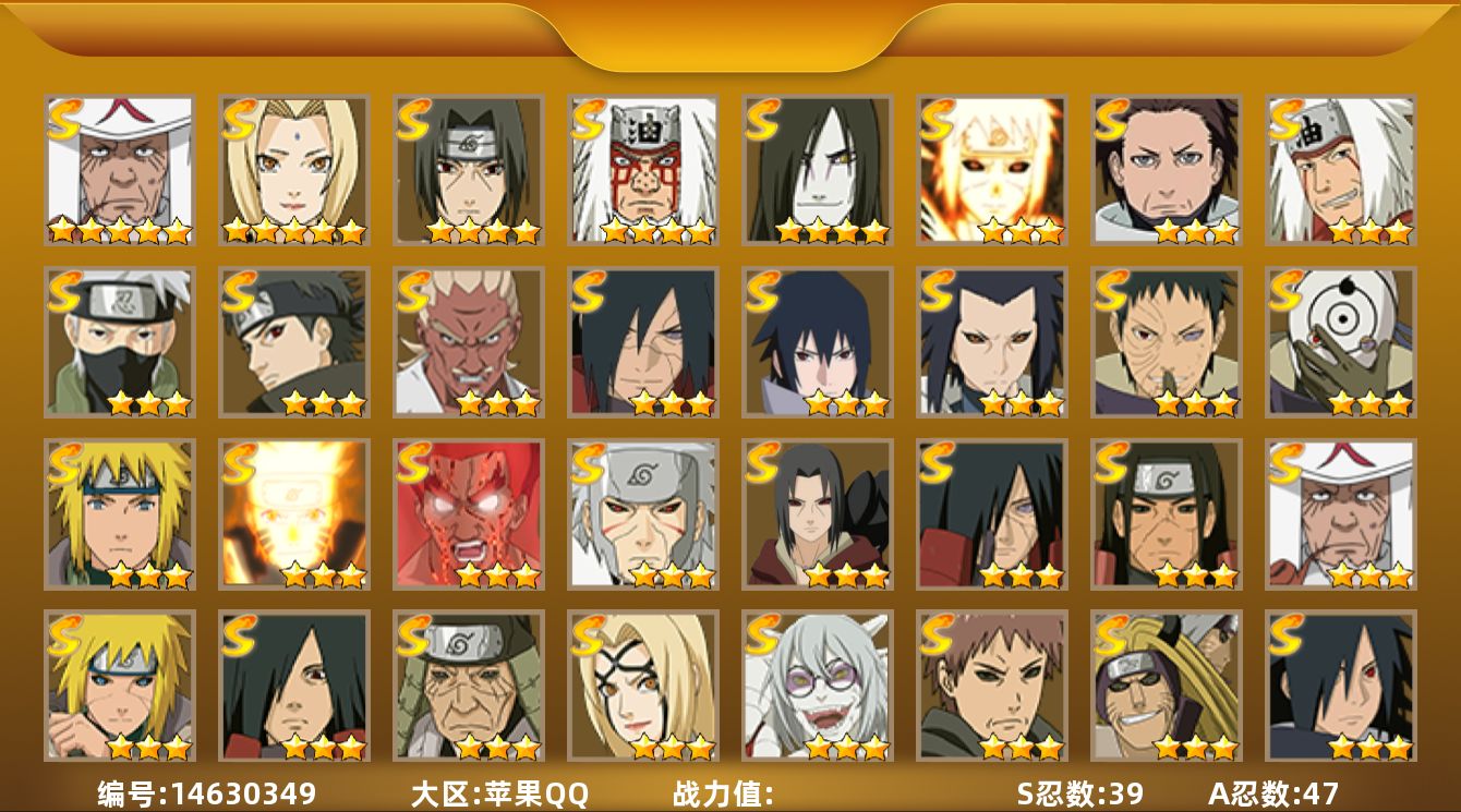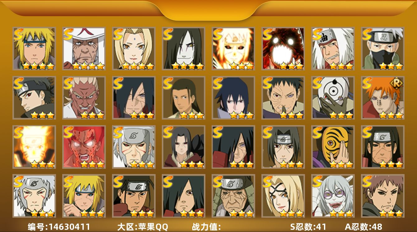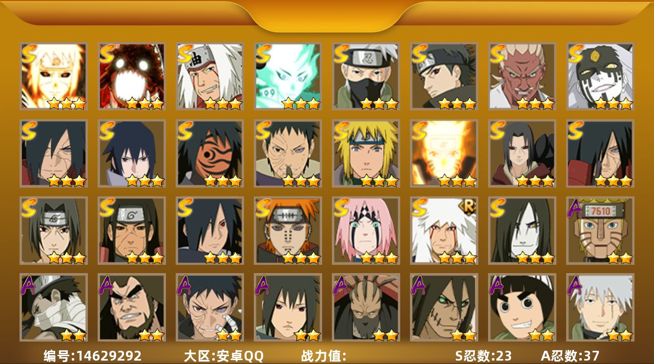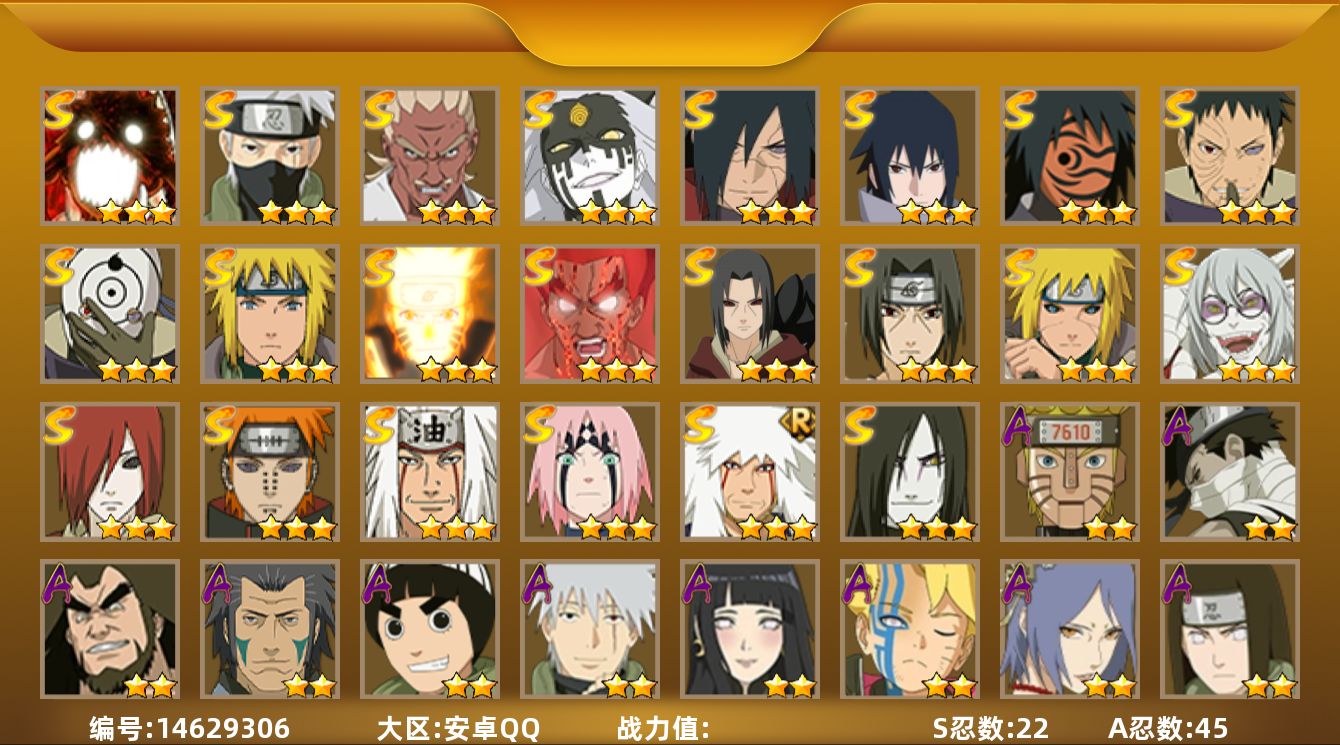 [14629306]0aqela 号 vip11,932w战力,s忍23个,a忍45个,本服排名286,战区排名未上榜,通灵兽318个,7时装,暗部1阶,忍者星数510
