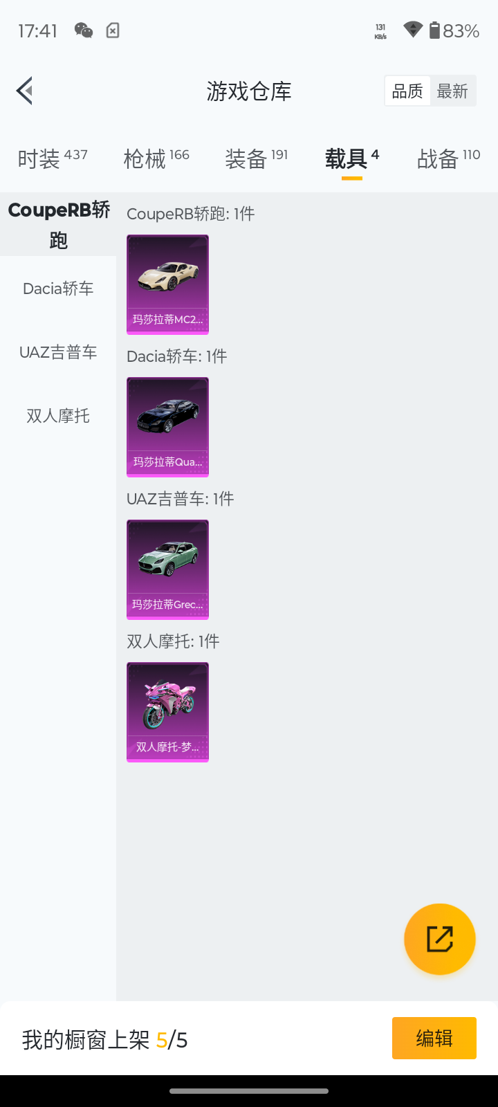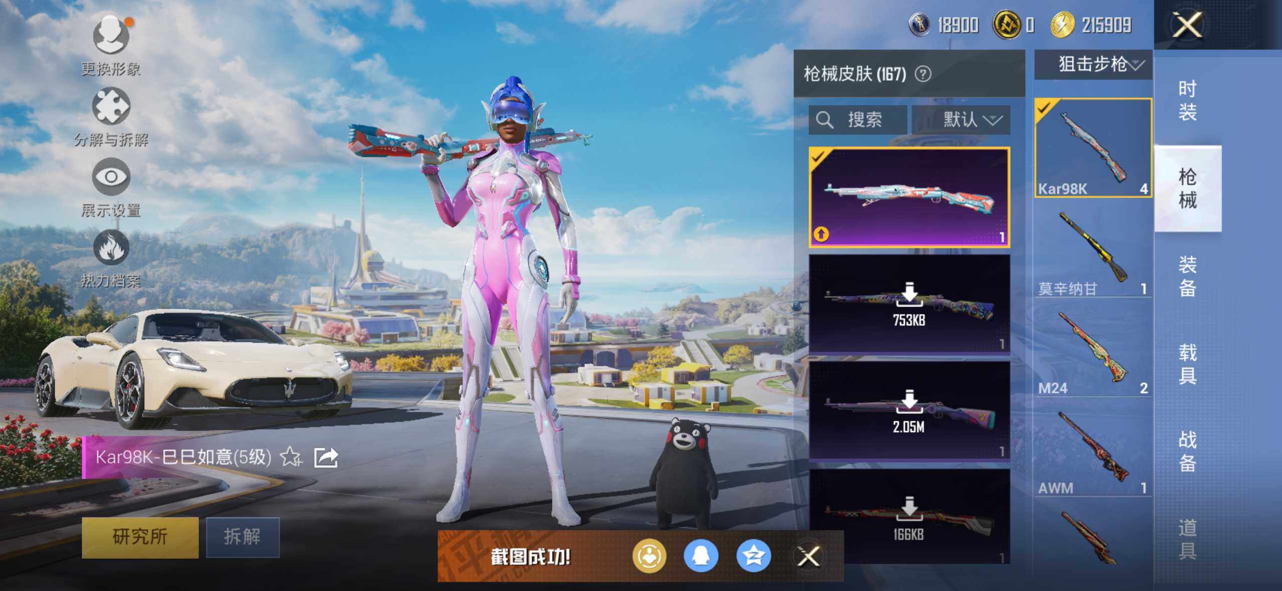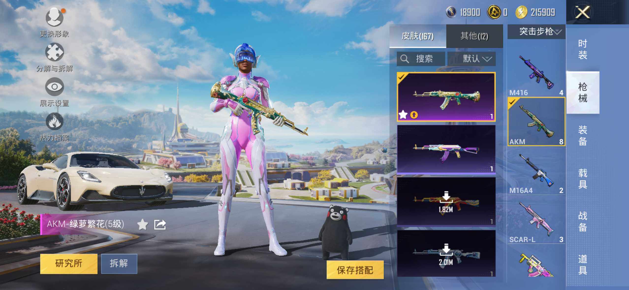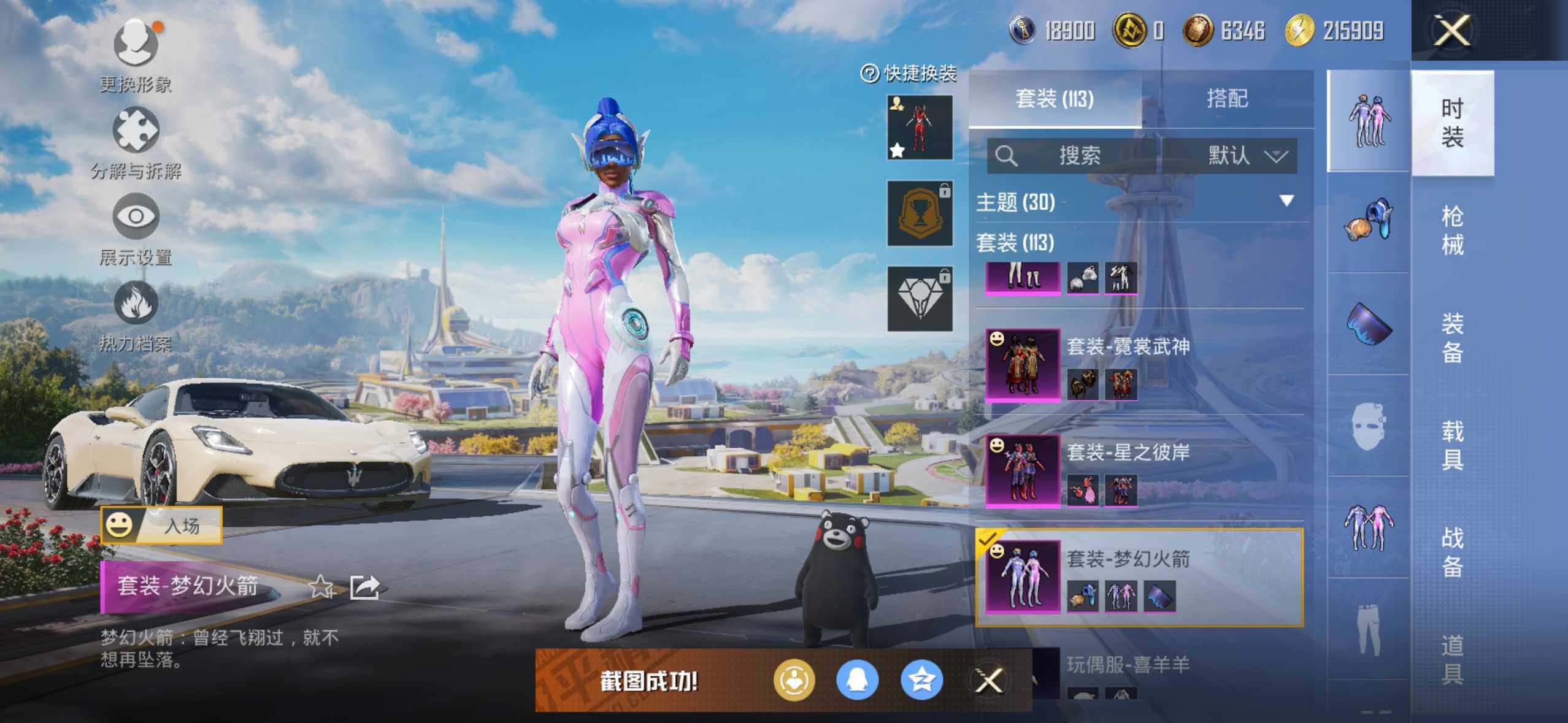 5914 【1稀有4载具6粉装7特效呛】12热门113套装166呛皮 55839热力值 6印记 历史卓越王牌9星 【1稀有】 akm-百万伏特 【4载具】 玛莎拉蒂m白色 玛莎拉蒂g绿色 玛莎拉蒂q蓝色 双人摩托梦幻火箭 【6粉装】 红螳螂 梦幻火箭 霓裳武神 冰川幽秘 暗夜鎏金 星之彼岸