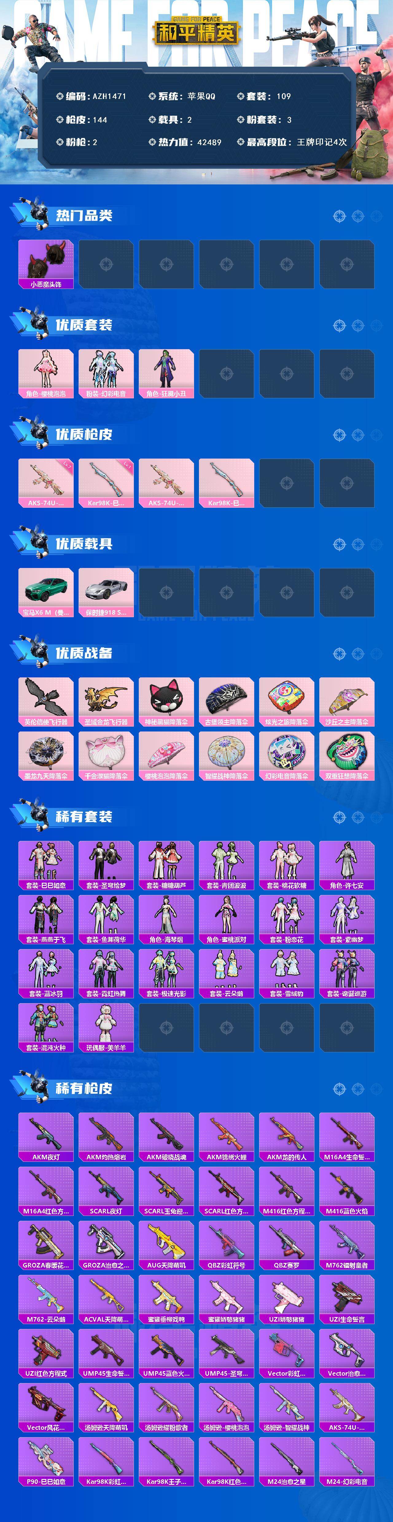 苹果 手q【新小丑寒蝎 保时捷】-3粉装-2特效呛-2载具-2粉色飞行器-42489热力值-4王牌印记-109套装-144呛皮 【热门品类】:套装-寒蝎幽灵,套装-奇异狩猎者,套装-粉红小猪,小恶魔头饰 【粉色载具】:宝马x6 m(曼岛绿),保时捷918 sper(液态银) 【粉色套装】:角色-樱桃泡泡,粉装-幻彩电音,角色-狂魇小丑 【粉色呛皮等级】:aks-74u-星穹咏叹调七级,