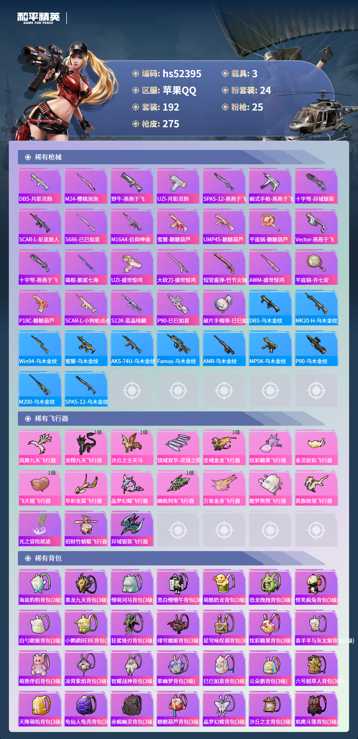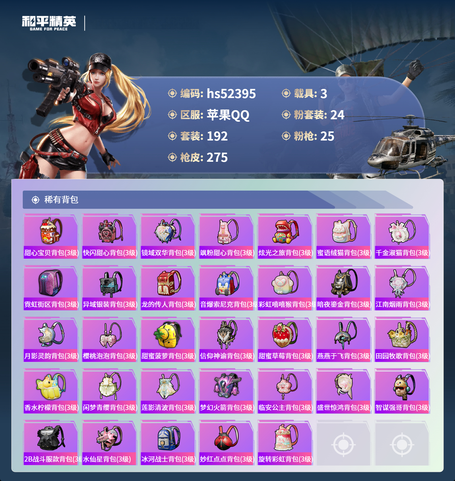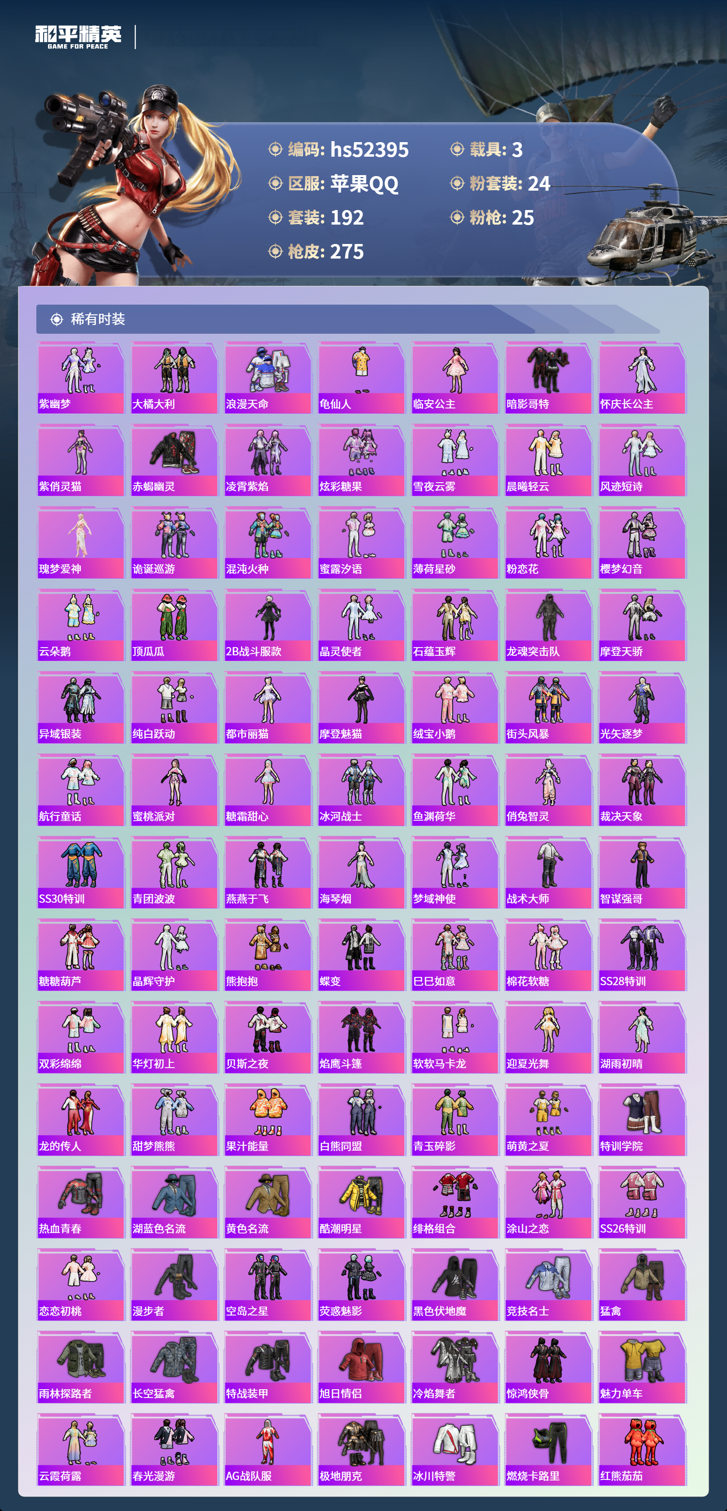 hs52395 苹果手q-14王牌印记-有战神框-3红装-24粉装-25特效呛-3载具-热力值-192套装-275呛皮-5卓越印记-4传奇印记【3红装】镜域双华-欧若拉/1级圣域龙灵-瑞拉/1级沙丘之主-图卡盟/4级【24粉装】套装-天使彩虹糖套装-双面双生角色-狂魅哈莉套装-飒粉甜心套装-甜心巧克力套装-冰川幽秘套装-星穹咏叹调角色-月影灵韵套装-缤纷油彩套