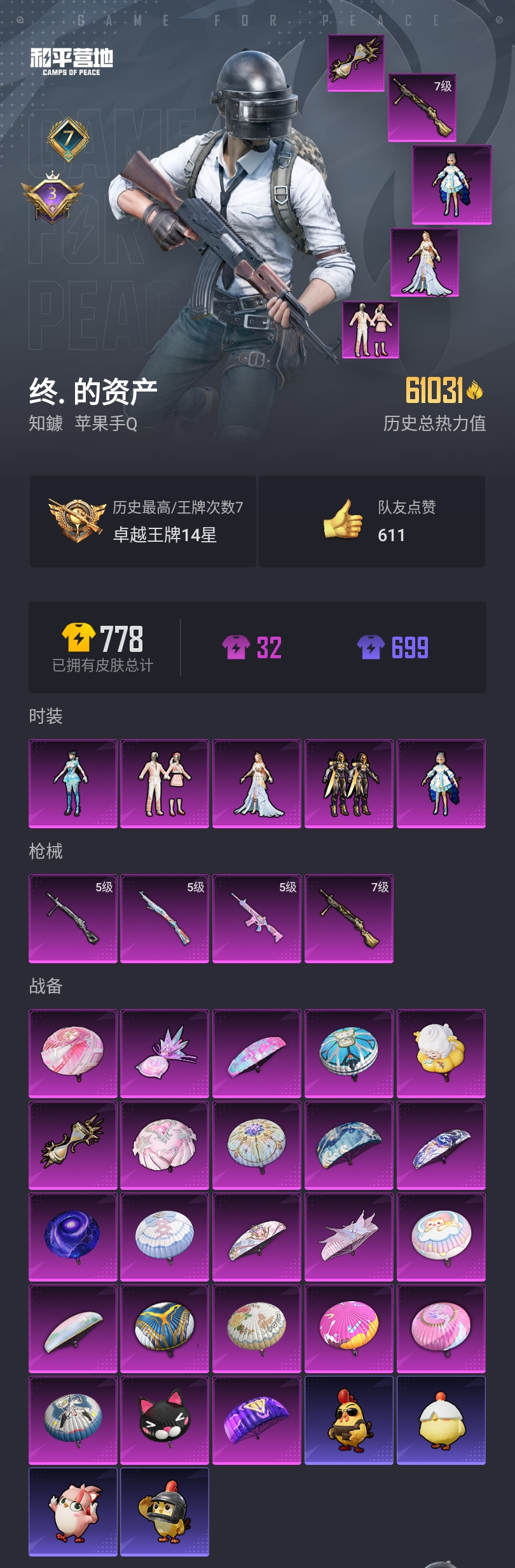 【和平精英】【lyhp17650】5粉4特 洛天依 第五大道 5粉装,4特效呛,0载具,历史最高段位:卓越王牌14星 王牌印记7次 热力值:61031,148套装,204呛械,287装备,116战备;套装:角色-洛天依,套装-第五大道,套装-创世·救赎,角色-异瞳寒姬,角色-智耀战神,套装-特训学院,套装-黄色运动,套装-黄色伏地魔,套装-黑色伏地魔,套装-竞技名士,套装-深蓝色名流,套装-酒红色名流,套装-湖蓝色名流,套装-黄色名流,套装-猛禽,套装-长空猛禽,套装-竞技勇士朋克,套装-海岛探路者,套装-时尚圣诞,套装-冷焰舞者,套装-灼焰舞者,套装-特战装甲,套装-贵族骑装,套装-战地督导,套装-特殊使命,套装-街舞达人,套装-甜蜜告白,套装-春日漫步,套装-燃烧卡路里,套装-滨海假日,套装-沙漠毒蛇,套装-完美偶像,套装-人气偶像,套装-幻影武者,套装-蓝彩潮人,套装-酷萌兔限定,套装-怒火燎原,套装-魅力单车,套装-绮丽涂鸦,套装-竞技达人朋克,套装-破晓战魂,套装-都市魅力,套装-热血青春,套装-沙漠兵团,套装-丛林猎人,套装-雪山精英,套装-酷潮明星,套装-甜蜜熊情侣,套装-缤纷果语,套装-龙魂突击队,套装-冰川特警,套装-灿烂千阳,套装-极速红龙,套装-破蛋小黄鸡,套装-疯狂小兔子,套装-ss5特训,套装-北国孤狼,套装-ss6特训,套装-玲珑飞花,套装-跃动心情,套装-ss7特训,套装-霓虹街区,套装-ss10特训,套装-ss8特训,套装-大橘为重,套装-白熊同盟,套装-萌黄之夏,套装-击剑大师,套装-深海来使,套装-夏日音浪,套装-ss9特训,套装-神秘舞者,套装-牛气满满,套装-ss11特训,套装-白虎圣者,套装-原初圣火,套装-逆风勇士,套装-战术大师,套装-ss12特训,套装-耀粉歌者,套装-ss13特训,套装-曼妙人鱼,套装-热情海星,套装-纯真浪花,套装-ss14特训,套装-电音精灵,套装-ss16特训,套装-ss17特训,套装-醒狮腾龙,套装-瑞龙福将,套装-团圆交子,套装-冰爽风暴,套装-福星高照,套装-虎虎生威吉莉,套装-ss21特训,套装-王牌教练,套装-柠萌假日,套装-龟仙人,套装-香桃花海,套装-冰河战士,套装-ss26特训,套装-焰鹰斗篷,套装-幽夜迷踪,套装-幻羽潜行,套装-ss27特训,套装-老实芭蕉,套装-ss28特训,角色-蝶吟花词,角色-白光莹,角色-情公主,套装-海盐绵绵冰,套装-蝶变,角色-兔兔小魔女,套装-湖畔霞光,套装-小熊娃娃,套装-ss29特训,套装-雏菊兔兔,套装-萝兰蝴蝶,角色-绯色魅影,角色-紫俏灵猫,套装-火种守卫者,套装-星途旅人,套装-ss30特训,套装-ss31特训,角色-瑰梦爱神,套装-紫幽梦,套装-粉恋花,套装-ss33特训,套装-ss32特训,套装-蓝冰羽,套装-蜜露汐语,套装-炫彩糖果,套装-星影赞美诗,玩偶服-懒羊羊,玩偶服-喜羊羊,套装-元气之梦,套装-ss34特训,套装-擎苍青焰,套装-朱霞炽焰,套装-凌霄紫焰,套装-薄荷星砂,套装-ss35特训,套装-午间小调,套装-秘语星愿,套装-风迹短诗,套装-粉黛兰香,套装-ss36特训,套装-萌鸡速递;呛皮:scar-l-红色方程式,scar-l-金风玉露,scar-l-甜蜜誓约,scar-l-炫彩节奏,scar-l-彩虹符号,scar-l-玉兔迎春,scar-l-星途旅人,scar-l-海盐豹豹,m16a4-蓝色火焰,m16a4-红色方程式,m16a4-冰河战士,g36c-星穹咏叹调,g36c-乌木金纹,m762-深海曼妙,m762-牛气冲天,m762-瑞龙福将,m762-彩虹符号,m762-雏菊兔兔,5级m416-电玩时刻,m416-夜灯,m416-蓝色火焰,m416-红色方程式,m416-糯团青竹,m416-乌木金纹,蜜獾-千面幻镜,蜜獾-天降萌叽,蜜獾-精灵梦叶罗丽,蜜獾-风迹短诗,蜜獾-乌木金纹,akm-灼热熔岩,akm-生命誓言,akm-破晓战魂,akm-霓虹街区,akm-夜灯,akm-涂鸦街区,akm-虎虎生威,akm-海渊国主,akm-江南烟雨,akm-荧星灵猫,akm-霓彩脉冲,groza-生命誓言,groza-奶油梦幻熊,groza-海盐豹豹,groza-乌木金纹,aug-耀粉歌者,aug-兔兔小魔女,aug-异域银装,aug-乌木金纹,q-原初圣火,q-彩虹符号,q-纯真浪花,q-乌木金纹,arx-凌霄紫焰,mk47-百万伏特,mk47-乌木金纹,mk47-风迹短诗,famas-涂鸦旋风,famas-霓彩脉冲,famas-乌木金纹,5级kar98k-巳巳如意,kar98k-红色方程式,kar98k-梦幻火箭,kar98k-彩虹符号,kar98k-乌木金纹,m24-奇异狩猎者,m24-冰封烈焰,awm-焰鹰斗篷,awm-纯真浪花,awm-乌木金纹,win94-瑞龙福将,win94-乌木金纹,莫辛纳甘-风迹短诗,amr-喜羊羊与灰太狼,amr-乌木金纹,mini14-金鼠迎春,mini14-原初圣火,mini14-炫彩节奏,mini14-耀粉歌者,mini14-阿狸红,mini14-龙宫之主,mini14-香桃花海,mini14-雏菊兔兔,sks-夜灯,sks-心之恋语,sks-怪兽之王,sks-乌木金纹,mk12-风迹短诗,mk12-乌木金纹,mk14-乌木金纹,mk14-冰河战士,mk14-紫幽梦,mk14-薄荷星砂,slr-璀璨流光,slr-霓彩脉冲,vss-彩虹符号,vss-香桃花海,vss-乌木金纹,mk20-h-星途旅人,mk20-h-狂鲨锋刃,mk20-h-乌木金纹,p90-闪光银龙,p90-玩趣呆呆,汤姆逊-耀粉歌者,汤姆逊-环太平洋,汤姆逊-纯真浪花,汤姆逊-智耀战神,汤姆逊-乌木金纹,vect-生命誓言,vect-pel轰鸣竞梦者,vect-彩虹符号,vect-焰鹰斗篷,vect-乌木金纹,aks-74u-白蛇盈舞,aks-74u-粉粉喵呜,aks-74u-乌木金纹,ump45-夜灯,ump45-蓝色火焰,ump45-生命誓言,ump45-海盐豹豹,ump45-极意拳锋,uzi-红色方程式,uzi-炫彩节奏,uzi-天降萌叽,uzi-冰河战士,uzi-啾咪啾咪,uzi-炫彩糖果,野牛-夜灯,野牛-奶油梦幻熊,野牛-雏菊兔兔,野牛-魔童闹海 敖闰,js9-凌霄紫焰,mp5k-乌木金纹,s686-红色方程式,s686-生命誓言,s686-千金淑猫,dbs-焰鹰斗篷,dbs-创世·救赎,dbs-风迹短诗,dbs-乌木金纹,s1897-神秘黑猫,s1897-炫彩节奏,s1897-精灵梦叶罗丽,s1897-紫幽梦,s1897-糯团青竹,s1897-荧海星豚,s12k-破晓战魂,s12k-夜灯,s12k-瑞龙福将,s12k-玩趣呆呆,s12k-极意拳锋,s12k-霓彩脉冲,s12k-乌木金纹,