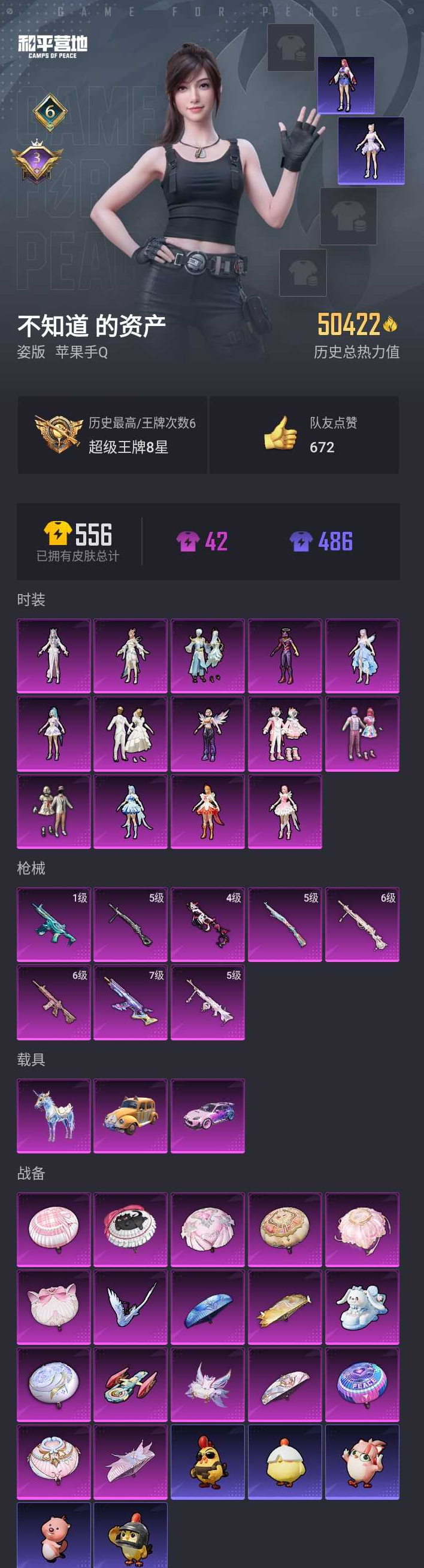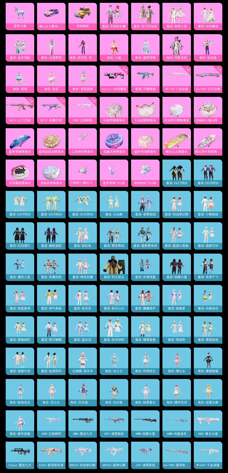 【和平精英】【lyhp17657】14粉装8特效呛3载具 觉醒螳螂 星梦奇缘 鸢尾晶梦 甜梦小狐 月影灵韵 都市丽猫 6级m4心之恋语 满级m762电糖天使 4级vect绯穹魔姬 6级dp-28千金淑猫 星空马 14粉装,8特效呛,3载具,历史最高段位:超级王牌8星 王牌印记6次 热力值:50662,99套装,127呛械,209装备,98战备;套装:套装-宝贝奶油派,套装-天使彩虹糖,套装-甜梦小狐,套装-纯珍童话,角色-电波星,角色-小蓝,角色-美雪,角色-美琪,角色-鸢尾晶梦,角色-星梦奇缘,角色-初号机 觉醒ver.,套装-金丰海韵,角色-月影灵韵,角色-冷漠罗丽,套装-竞技名士,套装-长空猛禽,套装-海岛探路者,套装-沙漠探路者,套装-魅力单车,套装-酷潮明星,套装-烈火街头,套装-缤纷果语,套装-滨海厨神,套装-龙魂突击队,套装-破蛋小黄鸡,套装-战术大师,套装-曼妙人鱼,套装-热情海星,套装-纯真浪花,套装-吉莉礼服,套装-甜星爱神,套装-软羊咩咩,套装-玉兔迎春,套装-香榭午后,套装-神气柴柴,套装-柠萌假日,套装-龟仙人,套装-香桃花海,套装-冰河战士,套装-萌趣绒叽,套装-焰鹰斗篷,套装-幽夜迷踪,套装-幻羽潜行,套装-ss27特训,套装-恋语绒绒,套装-ss28特训,角色-蝶吟花词,角色-听雨铃兰,角色-迎夏光舞,套装-奶油梦幻熊,角色-极地流光,角色-粉雾星云,角色-白光莹,角色-情公主,角色-冰公主,套装-街头风暴,套装-海盐绵绵冰,套装-蝶变,套装-粉日山川,套装-小熊娃娃,套装-ss29特训,套装-雏菊兔兔,角色-狂花道·雅典娜,套装-萝兰蝴蝶,套装-异域银装,角色-摩登魅猫,角色-都市丽猫,套装-星途旅人,套装-ss30特训,套装-青团波波,套装-棉花软糖,套装-糖糖葫芦,套装-ss31特训,套装-鱼渊荷华,套装-燕燕于飞,套装-智谋强哥,套装-紫幽梦,套装-粉恋花,套装-晶辉守护,套装-ss33特训,套装-云朵鹅,套装-巳巳如意,套装-ss32特训,套装-彩虹兔,套装-蓝冰羽,套装-雪绒豹,套装-大橘大利,角色-灵公主,套装-星渊小夜曲,套装-星影赞美诗,玩偶服-美羊羊,套装-元气之梦,套装-ss34特训,套装-擎苍青焰,套装-朱霞炽焰,套装-凌霄紫焰,套装-薄荷星砂,套装-ss35特训,套装-萌鸡速递;呛皮:1级蜜獾-异瞳寒姬,蜜獾-天降萌叽,蜜獾-精灵梦叶罗丽,蜜獾-糖糖葫芦,蜜獾-乌木金纹,akm-涂鸦街区,akm-江南烟雨,m16a4-冰河战士,m16a4-千金淑猫,6级m416-心之恋语,aug-天降萌叽,7级m762-电糖天使,m762-雏菊兔兔,m762-云朵鹅,scar-l-星途旅人,scar-l-海盐豹豹,g36c-星穹咏叹调,groza-奶油梦幻熊,groza-海盐豹豹,groza-晶梦幻蝶,arx-凌霄紫焰,famas-墨龙九天,famas-乌木金纹,q-纯真浪花,awm-焰鹰斗篷,awm-纯真浪花,m200-乌木金纹,5级kar98k-巳巳如意,kar98k-顶峰精英,kar98k-星穹咏叹调,svd-云朵鹅,amr-墨龙九天,莫辛纳甘-蜜语绒猫,vss-香桃花海,vss-星空武士,mini14-炫彩节奏,mini14-香桃花海,mini14-雏菊兔兔,mk20-h-星梦奇缘,mk20-h-星途旅人,mk20-h-糖糖葫芦,mk20-h-乌木金纹,mk14-冰河战士,mk14-紫幽梦,sks-炫彩节奏,m417-鸢尾晶梦,ump45-生命誓言,ump45-海盐豹豹,ump45-糖糖葫芦,汤姆逊-星梦奇缘,汤姆逊-纯真浪花,p90-闪光银龙,p90-玩趣呆呆,p90-巳巳如意,野牛-奶油梦幻熊,野牛-雏菊兔兔,野牛-燕燕于飞,uzi-天降萌叽,uzi-冰河战士,uzi-梦海之灵,4级vect-绯穹魔姬,vect-生命誓言,vect-焰鹰斗篷,vect-燕燕于飞,mp5k-乌木金纹,aks-74u-乌木金纹,js9-凌霄紫焰,spas-12-燕燕于飞,spas-12-云朵鹅,spas-12-乌木金纹,dbs-第五大道,dbs-焰鹰斗篷,dbs-巴啦啦小魔仙,dbs-荧海星豚,dbs-乌木金纹,s1897-精灵梦叶罗丽,s1897-紫幽梦,s686-蜜语绒猫,s686-千金淑猫,s686-巳巳如意,aa12-g-纯真浪花,mg-36-凌霄紫焰,5级pkm-江南烟雨,pkm-蜜语绒猫,pkm-紫幽梦,mg3-幻世战舞者,mg3-第五大道,mg3-霓彩脉冲,6级dp-28-千金淑猫,5级dp-28-豹影疾电,dp-28-甜心宝贝,dp-28-旋转彩虹,dp-28-焰鹰斗篷,p92-紫幽梦,p92-凌霄紫焰,蝎式手呛-奶油梦幻熊,蝎式手呛-千金淑猫,蝎式手呛-燕燕于飞,电击呛-喜羊羊与灰太狼,短管霰弹-星穹咏叹调,沙墨之鹦-云朵鹅,r1895-雏菊兔兔,tmp-9-江南烟雨,p18c-糖糖葫芦,信号呛-异瞳寒姬,平底锅-电糖天使,平底锅-焰鹰斗篷,平底锅-精灵梦叶罗丽,平底锅-纯真浪花,平底锅-雏菊兔兔,平底锅-糖糖葫芦,平底锅-许七安,平底锅-紫幽梦,平底锅-属我最6,平底锅-凌霄紫焰,撬棍-甜心宝贝,撬棍-巴啦啦小魔仙,大砍刀-鸢尾晶梦,大砍刀-云朵鹅,破片手留单-星途旅人,破片手留单-海盐豹豹,破片手留单-拽到爆炸,破片手留单-巳巳如意,铝热弹-炫彩糖果,盐雾蛋-冰氧夏日,十子怒-燕燕于飞,战术弩-江南烟雨;载具:萌喵橘座,星梦玉骢,糖心拉力赛车波动紫;降落伞:萌物绒绒飞行器,星梦奇缘飞行器,巴啦啦小魔仙飞行器,鸿潮鸣舰飞行器,顶峰精英尾迹,破刃行动尾迹; 详情看图