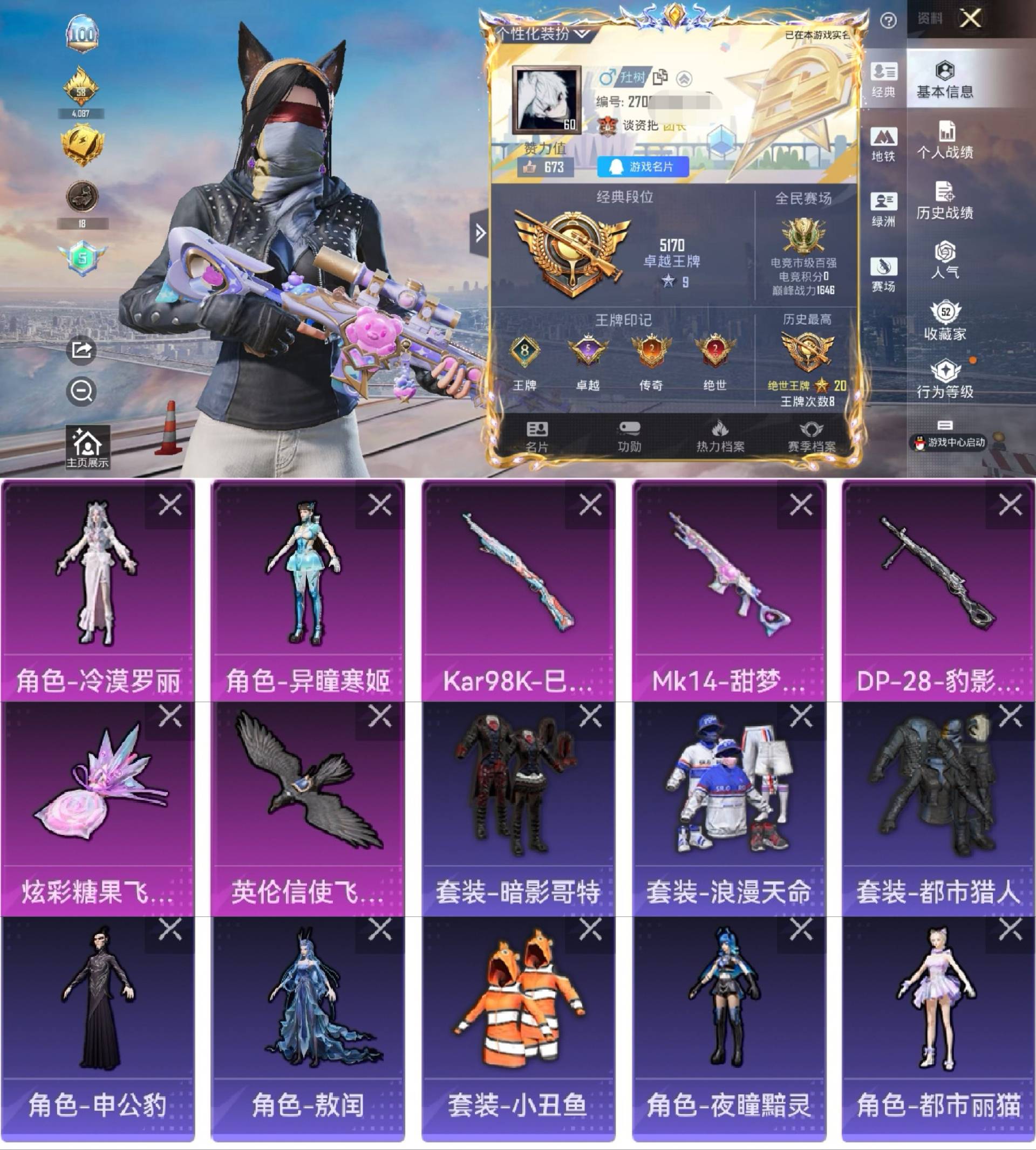 [13180449]h6349地铁满天赋伤感网络男神身法素材号 无二次 苹果q-段位王牌 8印记2绝世 105套装148呛皮 【2粉装】 角色-冷漠罗丽 角色-异瞳寒姬 【3特效】 mk14-甜梦熊击 5级 dp-28-豹影疾电 5级 kar98k-巳巳如意 5级 【2飞行器】 英伦信使飞行器 炫彩糖果飞行器 【热门】 都市猎人 小丑鱼 暗影哥特 浪漫天命 角色-敖闰 角色-申公豹 绯夜呢喃 角色-夜瞳黯灵 角色-绛羽幽主 角色-狂花道·娜可露露 角色-都市丽猫