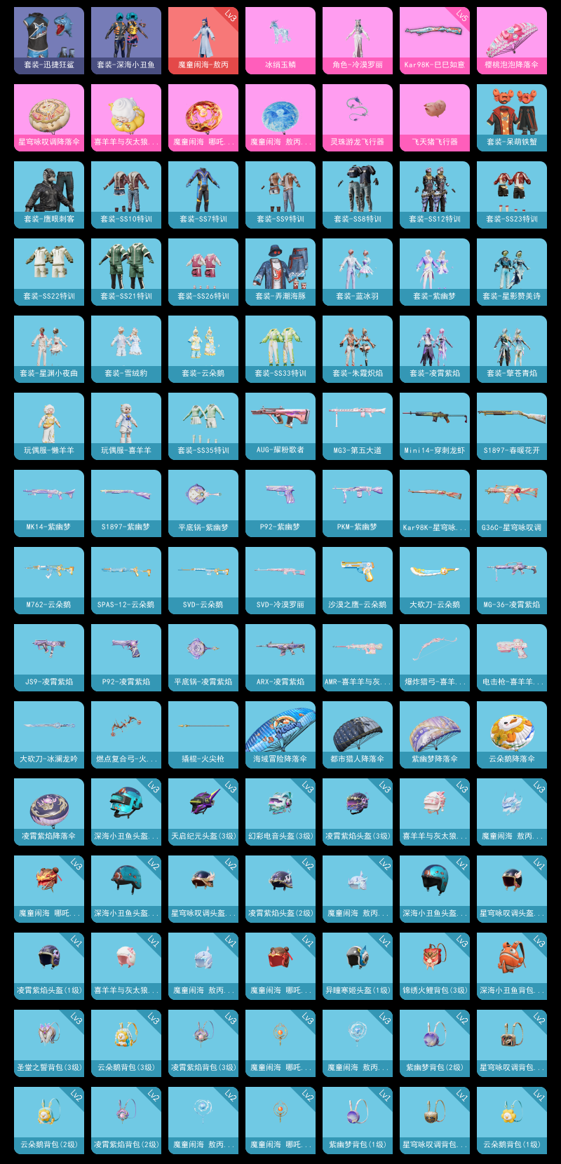 【和平精英】【txhp4810】1粉装,3特效呛,1载具,历史最高段位:传奇王牌11星 王牌印记2次 热力值:30939,81套装,96呛械,85装备,58战备;套装:魔童闹海-敖丙,角色-冷漠罗丽,套装-特训学院,套装-猎鹰,套装-红色运动,套装-黄色运动,套装-蓝色运动,套装-白色伏地魔,套装-骑行爱好者,套装-竞技名士,套装-湖蓝色名流,套装-伏击者,套装-长空猛禽,套装-竞技勇士朋克,套装-蓝色守护者,套装-六六大吉,套装-冷焰舞者,套装-特殊使命,套装-黄色格斗者,套装-活力之心,套装-甜蜜告白,套装-春日漫步,套装-龙腾端午,套装-鹰眼刺客,套装-完美偶像,套装-街头潮人,套装-酷萌兔限定,套装-怒火燎原,套装-魅力单车,套装-耀眼新星,套装-都市漫游者,套装-弄潮海豚,套装-迅捷狂鲨,套装-呆萌铁蟹,套装-深海小丑鱼,套装-缤纷果语,套装-麻辣教官,套装-破蛋小黄鸡,套装-北国孤狼,套装-跃动心情,套装-ss7特训,套装-鹤鸣,套装-霓虹街区,套装-ss10特训,套装-ss8特训,套装-萌黄之夏,套装-夏日音浪,套装-ss9特训,套装-牛气满满,套装-战术大师,套装-ss12特训,套装-牛气冲天,套装-ss21特训,套装-玉兔迎春,套装-ss22特训,套装-光之冒险,套装-绯格组合,套装-ss23特训,套装-王牌教练,套装-柠萌假日,套装-ss26特训,套装-空岛之星,套装-紫幽梦,套装-ss33特训,套装-云朵鹅,套装-蓝冰羽,套装-顶瓜瓜,套装-雪绒豹,套装-大橘大利,套装-星渊小夜曲,套装-星影赞美诗,玩偶服-懒羊羊,玩偶服-喜羊羊,套装-元气之梦,套装-ss34特训,套装-擎苍青焰,套装-朱霞炽焰,套装-凌霄紫焰,套装-薄荷星砂,套装-ss35特训,套装-萌鸡速递;呛皮:groza-乌木金纹,akm-生命誓言,akm-霓虹街区,akm-涂鸦街区,akm-龙的传人,akm-霓彩脉冲,akm-乌木金纹,scar-l-炫彩节奏,scar-l-玉兔迎春,scar-l-乌木金纹,ac-val-天降萌叽,q-彩虹符号,q-乌木金纹,m416-蓝色火焰,m416-糯团青竹,m416-乌木金纹,m762-牛气冲天,m762-天降萌叽,m762-云朵鹅,g36c-星穹咏叹调,arx-凌霄紫焰,蜜獾-天降萌叽,蜜獾-鸡智如我,蜜獾-乌木金纹,m16a4-幻世战舞者,mk47-乌木金纹,aug-耀粉歌者,aug-异域银装,famas-乌木金纹,m200-乌木金纹,莫辛纳甘-乌木金纹,5级kar98k-巳巳如意,kar98k-红色方程式,kar98k-星穹咏叹调,amr-喜羊羊与灰太狼,amr-乌木金纹,svd-冷漠罗丽,svd-云朵鹅,awm-乌木金纹,win94-乌木金纹,mini14-穿刺龙虾,mini14-炫彩节奏,mk14-乌木金纹,mk14-紫幽梦,mk14-薄荷星砂,sks-乌木金纹,p90-乌木金纹,ump45-蓝色火焰,ump45-生命誓言,ump45-海盐豹豹,ump45-乌木金纹,js9-凌霄紫焰,uzi-红色方程式,uzi-天降萌叽,uzi-啾咪啾咪,aks-74u-乌木金纹,mp5k-乌木金纹,vect-乌木金纹,汤姆逊-乌木金纹,spas-12-狂鲨锋刃,spas-12-云朵鹅,s1897-春暖花开,s1897-炫彩节奏,s1897-紫幽梦,s12k-夜灯,s12k-乌木金纹,m249-乌木金纹,5级dp-28-豹影疾电,dp-28-彩虹符号,5级mg-36-沧焰双生,mg-36-凌霄紫焰,mg3-乌木金纹,mg3-第五大道,pkm-紫幽梦,电击呛-喜羊羊与灰太狼,p92-紫幽梦,p92-凌霄紫焰,沙墨之鹦-云朵鹅,大砍刀-云朵鹅,大砍刀-冰澜龙吟,平底锅-飞行日记,平底锅-光之冒险,平底锅-空岛之星,平底锅-紫幽梦,平底锅-属我最6,平底锅-凌霄紫焰,撬棍-火尖呛,破片手留单-呆爆全场,破片手留单-海盐豹豹,破片手留单-拽到爆炸,破片手留单-火尖莲影,盐雾蛋-冰氧夏日,盐雾蛋-冰澜龙吟,十子怒-异域银装,燃点复合弓-火尖莲影,爆炸猎弓-喜羊羊与灰太狼;载具:冰绡玉鳞;降落伞:提桶跑路飞行器,灵珠游龙飞行器,飞天猪飞行器,破刃行动尾迹; 详情看图1红-1粉-3特-马 3级敖丙/深海小丑鱼