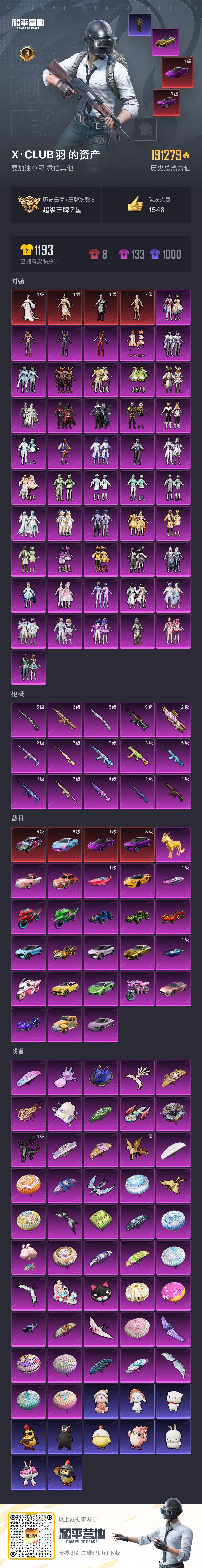 特价急出-满级图卡盟-禁言至33年介意勿拍4神装-47粉装-15特效呛-28载具-15粉色飞行器-191279热力值-3王牌印记-271套装-280呛皮 【红色载具】:路特斯eletre(电光紫)三级,路特斯evija(电光紫)一级,迈凯伦570s(炫冰蓝)六级,宾利添越(彩虹光)五级 【红色神装等级】:金蛇镇世-烛九一级,盛世惊鸿-云鸾一级,墨龙九天-敖渊一级,沙丘之主-图卡盟七级 【红色角色神装】:金蛇镇世-烛九,盛世惊鸿-云鸾,墨龙九天-敖渊,沙丘之主-图卡盟 【热门品类】:粉装-梦幻火箭,粉装-童趣迷兔,套装-星河浪客,套装-ss1特训,套装-龟仙人,套装-浪漫波比,套装-粉红小猪 【粉色套装】:粉装-金曜白虎,粉装-梦幻火箭,粉装-天禅智恒,粉装-彗云及圣,粉装-新星烈龙,粉装-甜蜜誓约,粉装-极致幻想,粉装-黄蜂伯爵,粉装-鳞翅贤者,粉装-迷蝶贵族,粉装-冰霜白皇,粉装-童趣迷兔,粉装-炙焰红王,粉装-暗翼战神,粉装-绿野柔风,粉装-馨动时刻,粉装-林间仙鹿,粉装-彩虹鹿灵,粉装-山涧鹿灵,角色-洛天依,粉装-俏雪含霜,粉装-吟月归客,粉装-黄伞悠悠,粉装-黑伞漫漫,角色-零号机款机体服,角色-初号机款机体服,角色-2号机款机体服,粉装-蓝莓炮弹,粉装-幻情紫藤,粉装-青葱仙萝,粉装-金风银杏,粉装-绚金瑰梦,粉装-酣梦娃娃,粉装-天之羽翼,粉装-焦糖拿铁,粉装-碧影闪光,粉装-岚岚物语,粉装-海盐物语,粉装-薄荷物语,粉装-百合蜜语,粉装-恐龙拽拽,粉装-庄周梦蝶,粉装-橘柚倾心,粉装-冷魅冰骑,粉装-赤焰黑爵,粉装-紫电风暴,粉装-星穹咏叹调 【粉色呛皮等级】:akm-百合蜜语五级,scar-l-童趣迷兔二级,scar-l-青春物语一级,scar-l-金蛇镇世三级,m416-五爪金龙一级,m416-墨龙九天九级,m762-冷魅冰骑三级,ump45-恐龙拽拽三级,p90-沙丘之主二级,kar98k-巳巳如意五级,awm-橘柚倾心二级,mini14-绚金瑰梦二级,slr-暗夜玫瑰二级,m249-蓝莓炮弹四级,dp-28-豹影疾电五级 【粉色载具】:特斯拉roadster(沁心粉),兰博基尼aventad svj(翡翠绿),兰博基尼estoque(炫光金),兰博基尼urus(明艳黄),路特斯evija(电光紫),路特斯evija(星际黄),路特斯eletre(电光紫),路特斯eletre(冰川蓝),路特斯eletre(花绽灰),玛莎拉蒂ghibli(粉),宾利添越(彩虹光),迈凯伦570s(炫冰蓝),合金龙骨(蓝),合金龙骨(绿),焰龙咆哮,海龙奔腾,金龙耀世,萌喵橘座,俏皮小熊猫,软萌羊咩咩,双人摩托-梦幻火箭,双人摩托-双刃魅影(红),双人摩托-双刃魅影(绿),极速兔兔车,空客h135-蔚蓝之翼,僚机-萌兔起飞,快艇-塞莎kl27(深潜蓝),快艇-塞莎kl27(霓虹粉),快艇-自由的鲸,护世瑞兽 【粉色呛皮】:akm-百合蜜语,scar-l-童趣迷兔,scar-l-青春物语,scar-l-金蛇镇世,m416-五爪金龙,m416-墨龙九天,m762-冷魅冰骑,ump45-恐龙拽拽,p90-沙丘之主,kar98k-巳巳如意,awm-橘柚倾心,mini14-绚金瑰梦,slr-暗夜玫瑰,m249-蓝莓炮弹,dp-28-豹影疾电 【粉色飞行器】:酣梦熊熊飞行器,梦幻火箭飞行器,甜蜜誓约飞行器,暗翼战神飞行器,相思残雪飞行器,甜心娃娃飞行器,天之羽翼飞行器,庄周梦蝶飞行器,冷魅冰骑飞行器,沙丘之主天马,龙翔九天飞行器,凤舞九天飞行器,万象金身飞行器 【粉色降落伞】:梦幻火箭降落伞,神秘黑猫降落伞,甜蜜誓约降落伞,四圣焕新降落伞,心之恋语降落伞,扶摇飞仙降落伞,童趣迷兔降落伞,暗翼战神降落伞,绮梦青鸾降落伞,暗夜玫瑰降落伞,林间仙鹿降落伞,蓝莓炮弹降落伞,绚金瑰梦降落伞,天之羽翼降落伞,焦糖拿铁降落伞,碧影闪光降落伞,青春物语降落伞,百合蜜语降落伞,恐龙拽拽降落伞,庄周梦蝶降落伞,橘柚倾心降落伞,冷魅冰骑降落伞,纯梦嫁纱降落伞,圣堂之誓降落伞,沙丘之主降落伞,墨龙九天降落伞,忍者神龟降落伞,金蛇镇世降落伞,鬼刀降落伞 【稀有套装】:套装-龟仙人,套装-巳巳如意,套装-雏菊兔兔,套装-萝兰蝴蝶,套装-火种守卫者,套装-糖糖葫芦,套装-青团波波,套装-燕燕于飞,套装-鱼渊荷华,角色-风玲,套装-蜜露汐语,套装-炫彩糖果 【稀有呛皮】:aug-冰晶雪宝,akm-彩虹符号,akm-恐龙拽拽,akm-春暖花开,akm-灼热熔岩,akm-生命誓言,akm-破晓战魂,akm-萌趣颜团子,akm-虎虎生威,akm-霓虹街区,akm-龙的传人,m16a4-幻世战舞者,m16a4-红色方程式,m16a4-蓝色火焰,scar-l-暗夜玫瑰,scar-l-玉兔迎春,scar-l-甜蜜誓约,scar-l-生命誓言,scar-l-碧影闪光,scar-l-红色方程式,m416-梨园星光,m416-神秘黑猫,m416-糯团青竹,m416-红色方程式,m416-蓝色火焰,groza-异彩先驱,groza-彩虹符号,groza-恐龙拽拽,groza-林间仙鹿,groza-生命誓言,groza-蓝莓炮弹,groza-青春物语,aug-天降萌叽,aug-耀粉歌者,aug-青春冒险家,aug-金蛇镇世,aug-月影灵韵,q-彩虹符号,q-暗翼战神,q-洛神天依,q-潮汐统领,q-相思残雪,q-神秘黑猫,q-绚金瑰梦,q-飞驰魅影,m762-橘柚倾心,m762-烈焰拳霸,m762-牛气冲天,m762-瑞龙福将,m762-镭射皇者,mk47-天之羽翼,mk47-林间仙鹿,mk47-青春冒险家,g36c-冷魅冰骑,g36c-时空追击者,g36c-暗夜玫瑰,ac-val-天降萌叽,ac-val-快闪甜心,蜜獾-天降萌叽,famas-墨龙九天,uzi-啾咪啾咪,uzi-天降萌叽,uzi-炫彩节奏,uzi-生命誓言,uzi-红色方程式,ump45-夜灯,ump45-时空追击者,ump45-涂山之恋,ump45-炫光之旅,ump45-生命誓言,ump45-蓝色火焰,ump45-极意拳锋,vect-生命誓言,vect-百合蜜语,汤姆逊-天降萌叽,汤姆逊-庄周梦蝶,汤姆逊-异彩先驱,汤姆逊-林间仙鹿,汤姆逊-炫彩节奏,汤姆逊-耀粉歌者,野牛-扶摇飞仙,野牛-沙丘之主,野牛-王牌四分卫,野牛-青春冒险家,mp5k-异彩先驱,mp5k-甜蜜誓约,mp5k-蓝莓炮弹,aks-74u-鬼刀,p90-快闪甜心,p90-飞驰魅影,p90-金蛇镇
