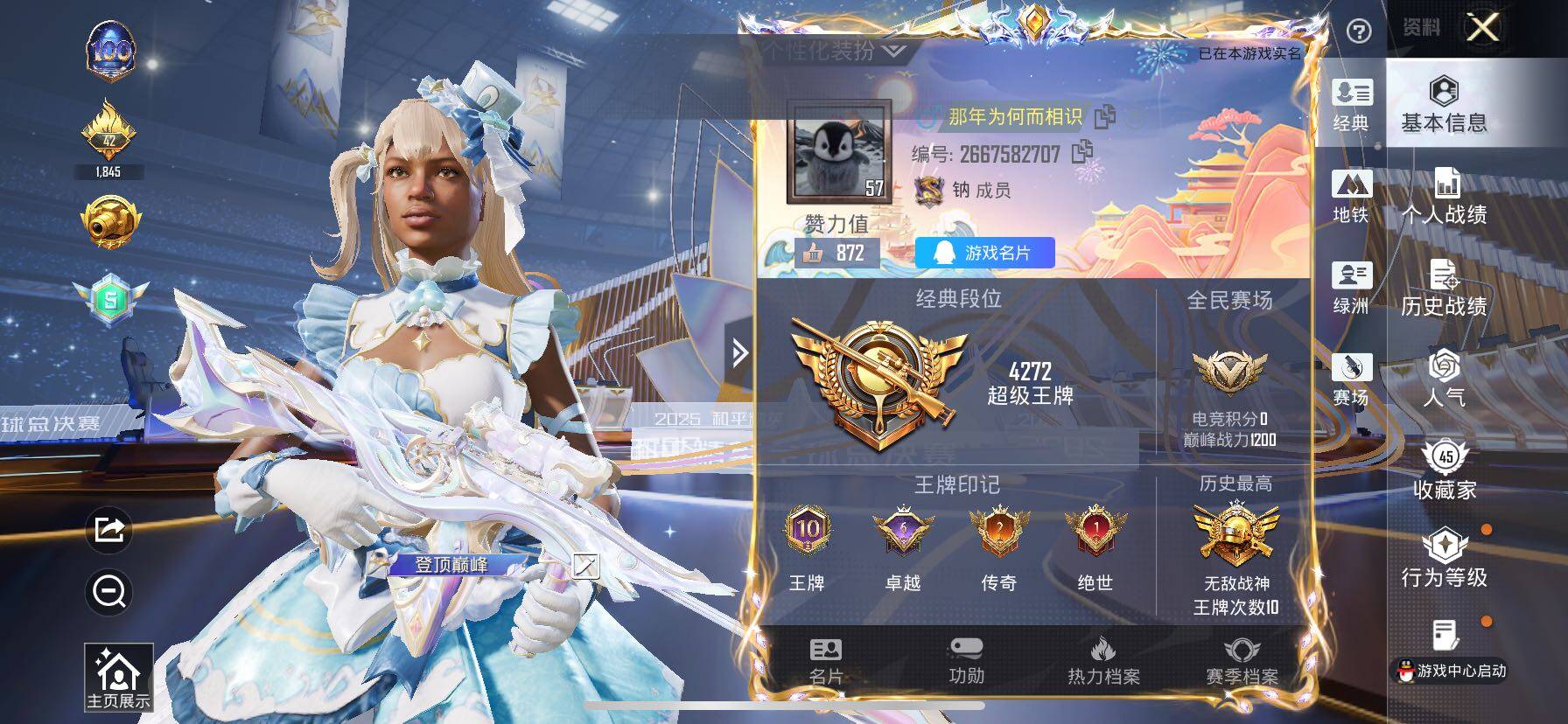【地铁满天赋 2个赛季战神框 超新星m4 女娲m4】c21339-【无二次协助处理】【因赛季更新游戏段付以上号为准!】 苹果q-1稀有2粉装6特效呛2热门65套装121呛皮 10印记 历史无敌战神 【1稀有】 akm-缤纷海域 【2粉装】 茉莉星 雪月幻音 【6特效呛】 m416-超新星 3级 m416-女娲灵识 3级 kar98k-巳巳如意 5级 aug-暖羊咩咩 5