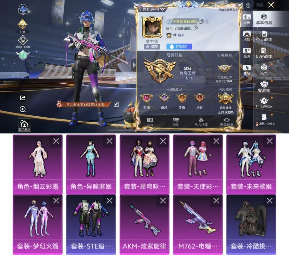 _2307660-战神框实名:可修改时装数:499呛械数:194战备数:132热门装扮:梦幻火箭新101天使彩虹糖好奇恐龙未来歌姬烟云彩露星穹咏叹调异瞳寒姬稀有呛皮:akm炫紫旋律m762-电糖天使kar98k-巳巳如意dp-28-豹影疾电