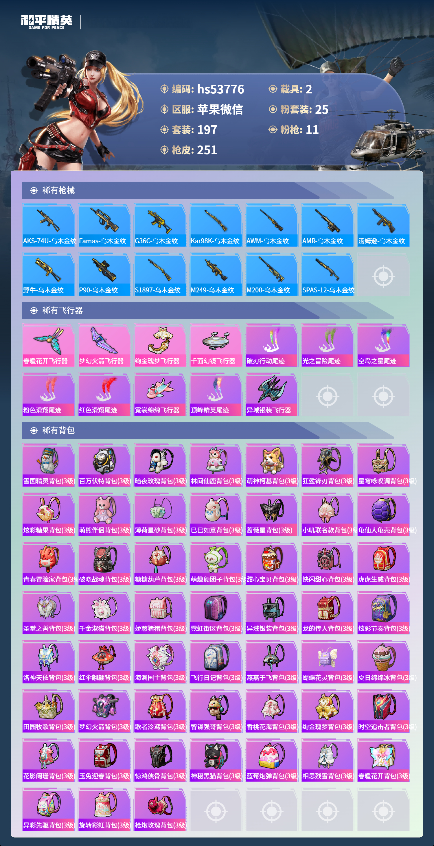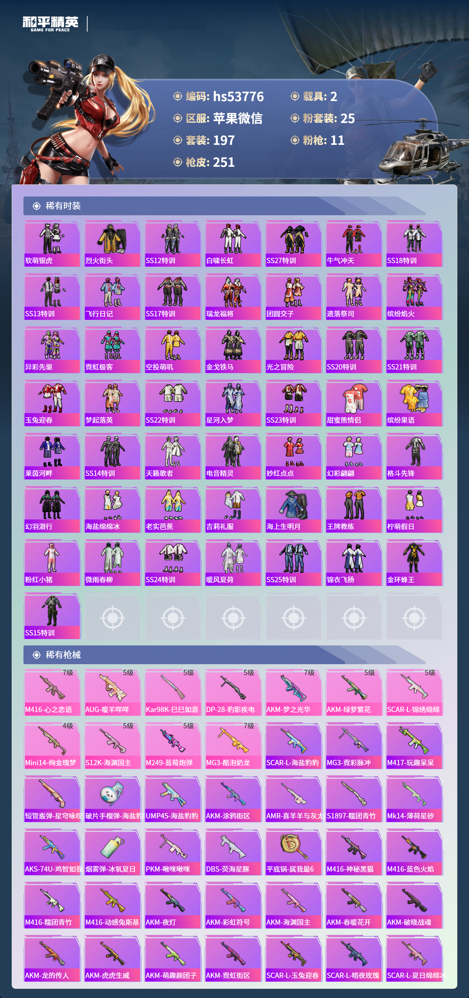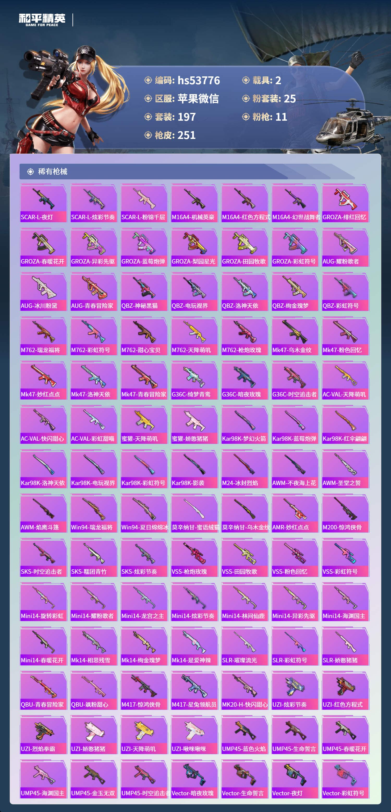 hs53776 苹果微信-14王牌印记-25粉装-11特效呛-2载具-93411热力值-197套装-251呛皮-4卓越印记-3传奇印记【25粉装】套装-彩虹鹿灵套装-山涧鹿灵套装-黑伞漫漫套装-雪国幻梦角色-小叽联名款套装-蜜桃特工套装-宝贝奶油派套装-第五大道套装-冰霜白皇套装-馨动时刻套装-甜心巧克力套装-幻彩电音套装-蝶舞迷情套装-海渊国主套装-冰川红玫套装-