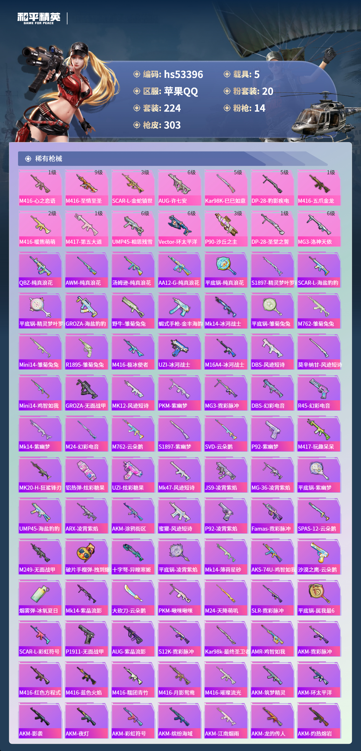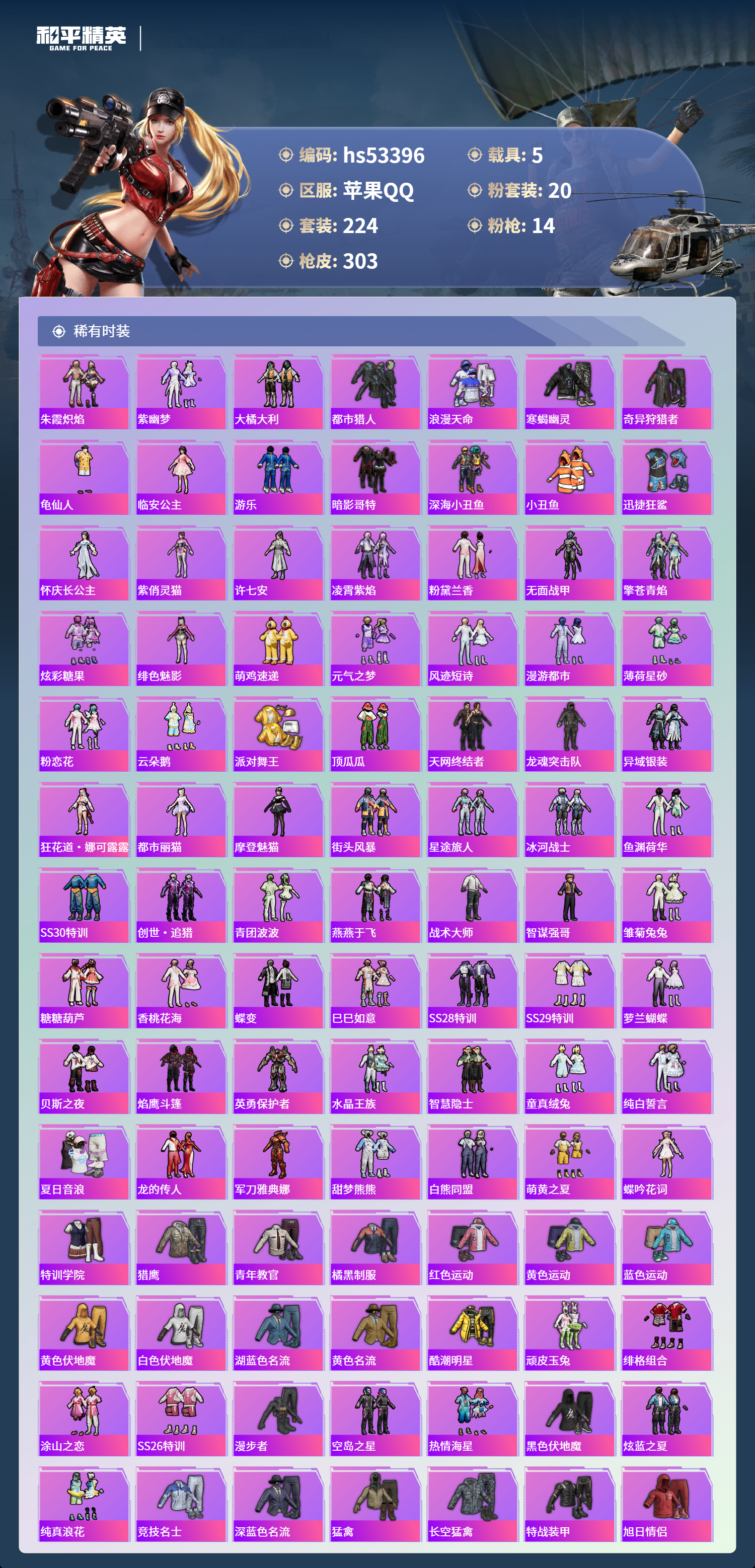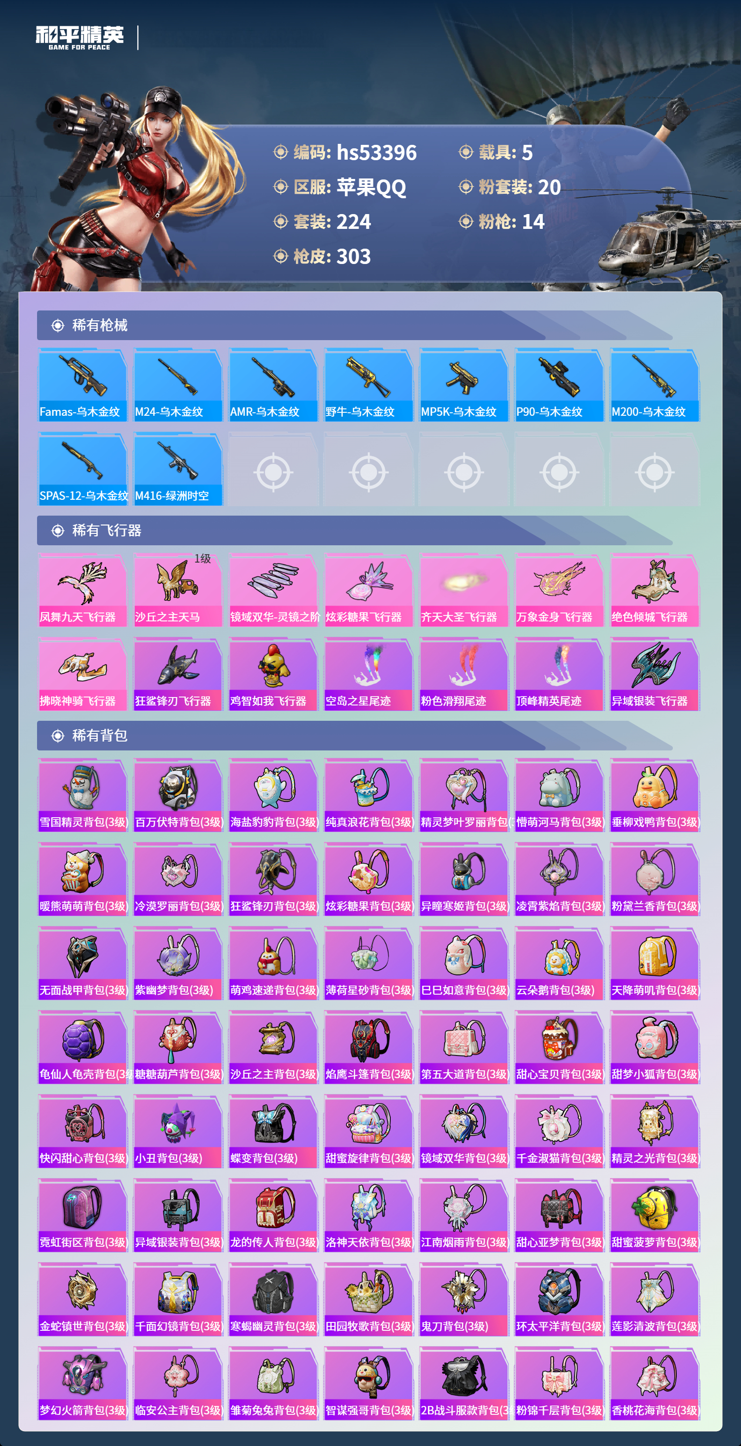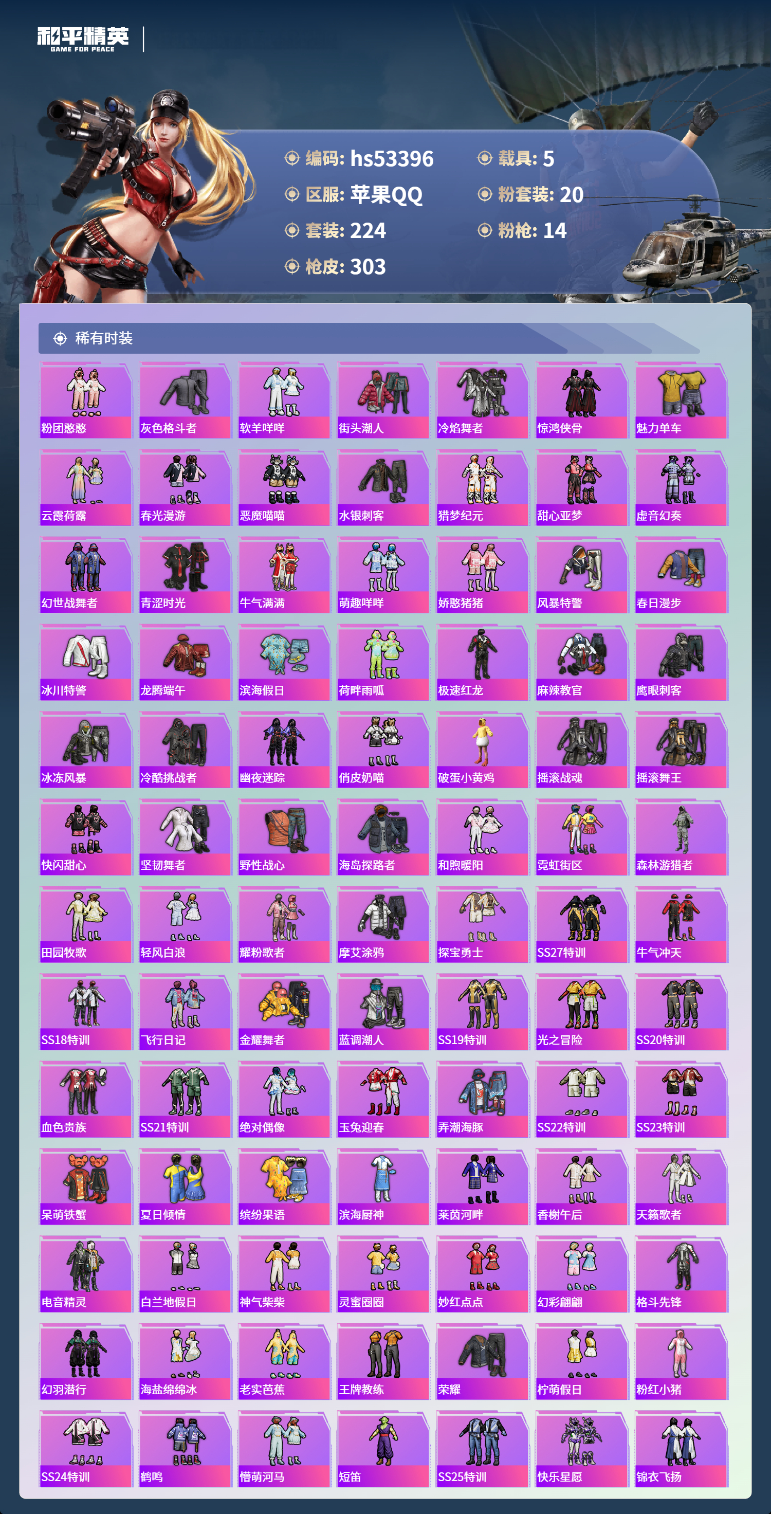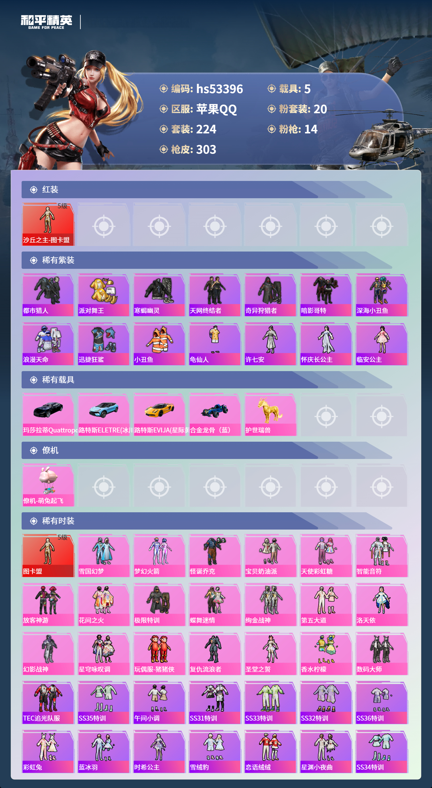 hs53396 苹果手q-17王牌印记-有战神框-1红装-20粉装-14特效呛-5载具-热力值-224套装-303呛皮-6卓越印记-5传奇印记【1红装】沙丘之主-图卡盟/5级【20粉装】角色-复仇流浪者玩偶服-猪猪侠套装-第五大道套装-智能音符套装-香水柠檬套装-蝶舞迷情套装-梦幻火箭套装-放客神游角色-洛天依套装-绚金战神套装-宝贝奶油派套装-极限特训角色