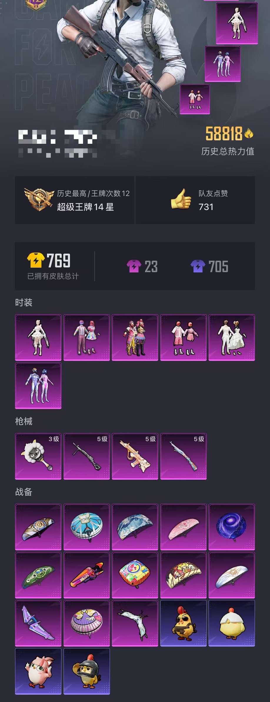 可二次【梦幻火箭 猪脸妹 6粉装4特效呛】 苹果v区-58818热力值-12印记-149套装-206呛皮 【1稀有】 mark.06【6粉装】 缤纷油彩(猪脸妹) 梦幻火箭 天使彩虹糖 挚爱序曲 飒粉甜心 角色-千金淑猫【4特效呛】 kar98k-巳巳如意5级 dp-28-豹影疾电5级 aug-暖羊咩咩5级 平底锅-喜羊羊与灰太狼3级【32热门】 m416-蓝色火焰 groza-异彩先驱 长空猛禽 异彩先驱 虚音幻奏 甜心亚梦 牛气冲天 霓虹极客 妙红点点 懵萌河马 风暴特警 破蛋小黄鸡 极速红龙 白色伏地魔 ss27特训 ss26特训 ss25特训 ss24特训 ss23特训 ss22特训 mini14-梦幻火箭 mark.06 2b战斗服款 scar-l-玉兔迎春 groza-2b战斗服款 mk47-乌木金纹 uzi-娇憨猪猪 ump45-蓝色火焰 s12k-垂柳戏鸭 mg3-幻世战舞者【3飞行器】 梦幻火箭飞行器 天之羽翼飞行器 霓虹漫游飞行器 营地id:911821728