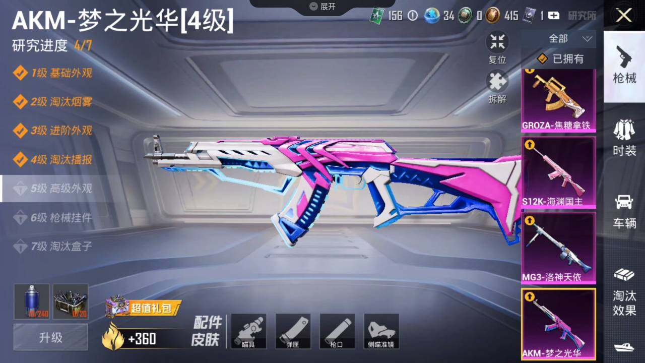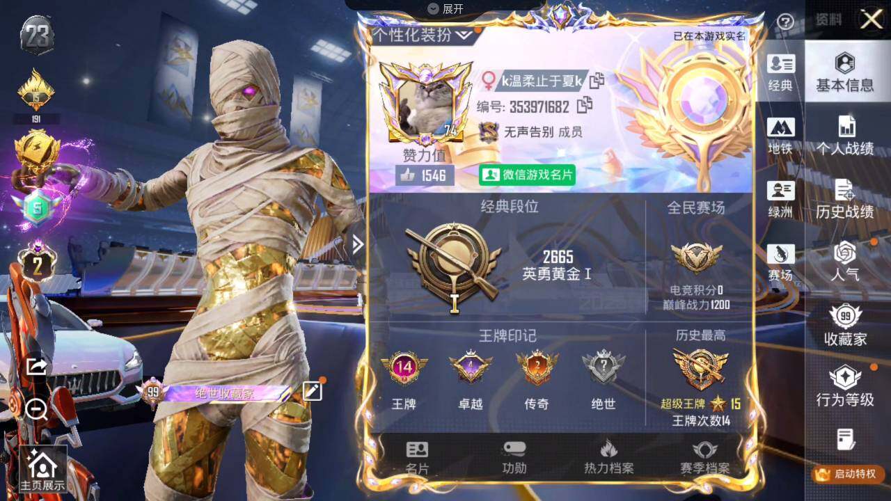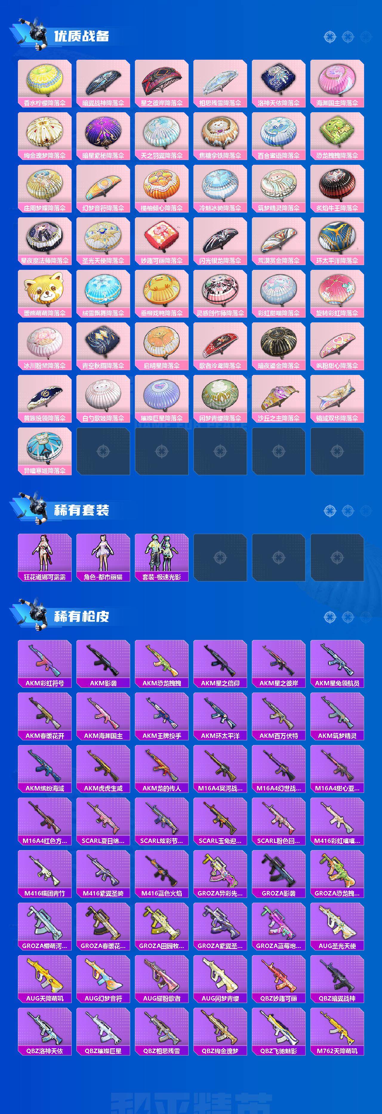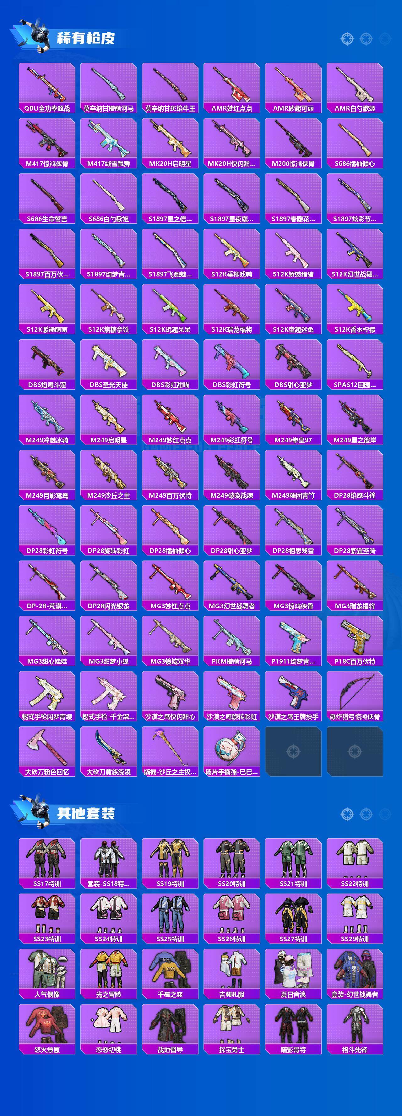 老木乃伊-2神装-63粉装-35特效呛-11载具-26粉色飞行器-171961热力值-14王牌印记-273套装-328呛皮 【红色载具】:路特斯eletre(电光紫)五级,路特斯evija(电光紫)一级,玛莎拉蒂quattropte(幻星粉)二级 【红色神装等级】:镜域双华-欧若拉一级,沙丘之主-图卡盟二级 【热门品类】:粉装-雪国幻梦,粉装-梦幻火箭,套装-冥河战士,套装-深海小丑鱼,套装-小丑鱼,角色-军刀雅典娜,套装-暗夜行者,套装-龟仙人,套装-暗影哥特,套装-浪漫波比,套装-粉红小猪 【粉色套装】:粉装-粉色回忆,粉装-银河战甲,粉装-宝贝奶油派,粉装-天使彩虹糖,粉装-雪国幻梦,粉装-蝶舞迷情,粉装-梦幻火箭,粉装-星之信仰,粉装-金属狂野,粉装-彗云及圣,粉装-绚金战神,粉装-炙焰红王,粉装-暗翼战神,粉装-馨动时刻,粉装-蝶舞蔷薇,粉装-彩虹鹿灵,粉装-山涧鹿灵,角色-洛天依,粉装-海渊国主,角色-2号机款机体服,粉装-绚金瑰梦,粉装-酣梦娃娃,粉装-天之羽翼,粉装-焦糖拿铁,粉装-岚岚物语,粉装-海盐物语,粉装-薄荷物语,粉装-恐龙拽拽,粉装-庄周梦蝶,粉装-幻梦音符,粉装-绚丽摇曳,粉装-闪耀律动,粉装-橘柚倾心,粉装-冷魅冰骑,粉装-赤焰黑爵,粉装-紫电风暴,粉装-筑梦精灵,粉装-炙焰牛王,粉装-星夜魔法师,粉装-圣光天使,粉装-妙趣可丽,粉装-闪光银龙,粉装-荒漠赏金,角色-复仇流浪者,粉装-暖熊萌萌,粉装-绒雪飘舞,粉装-傲雪凌霜,粉装-霁雪冰心,粉装-垂柳戏鸭,粉装-灵感创作师,粉装-朗月武圣,粉装-旋转彩虹,粉装-盖世英雄,粉装-霞光圣骑,粉装-寒光使者,粉装-启明星,粉装-第五大道,粉装-飒粉甜心,粉装-黄族统领,角色-白勺歌姬,角色-呆萌星弥,角色-小可学妹,粉装-闲梦青缨 【粉色呛皮等级】:akm-梦之光华四级,akm-百合蜜语一级,akm-盖世英雄五级,m16a4-垂柳戏鸭一级,scar-l-童趣迷兔五级,scar-l-青春物语一级,scar-l-甜梦小狐三级,scar-l-彩装战姬三级,m416-五爪金龙一级,m416-心之恋语一级,m416-暖熊萌萌一级,m416-至情至圣七级,groza-香水柠檬四级,groza-焦糖拿铁三级,aug-星之彼岸三级,aug-妙趣可丽四级,m762-冷魅冰骑七级,uzi-筑梦精灵四级,ump45-恐龙拽拽三级,ump45-启明星四级,vect-环太平洋一级,汤姆逊-荒漠赏金一级,p90-能量风暴五级,p90-沙丘之主三级,kar98k-伏魔团一级,kar98k-巳巳如意五级,m24-镜域双华三级,awm-橘柚倾心一级,s12k-海渊国主二级,m249-绒雪飘舞一级,m249-彩虹甜喵一级,dp-28-幻梦音符二级,dp-28-豹影疾电五级,mg3-洛神天依四级,mg3-炙焰牛王三级 【粉色载具】:兰博基尼aventad svj(翡翠绿),兰博基尼estoque(银翼灰),兰博基尼urus(明艳黄),路特斯evija(电光紫),路特斯eletre(电光紫),玛莎拉蒂quattropte(幻星粉),乔治巴顿战车(乳石白),合金龙骨(蓝),焰龙咆哮,双人摩托-双刃魅影(绿),僚机-萌兔起飞,快艇-自由的鲸 【粉色呛皮】:akm-梦之光华,akm-百合蜜语,akm-盖世英雄,m16a4-垂柳戏鸭,scar-l-童趣迷兔,scar-l-青春物语,scar-l-甜梦小狐,scar-l-彩装战姬,m416-五爪金龙,m416-心之恋语,m416-暖熊萌萌,m416-至情至圣,groza-香水柠檬,groza-焦糖拿铁,aug-星之彼岸,aug-妙趣可丽,m762-冷魅冰骑,uzi-筑梦精灵,ump45-恐龙拽拽,ump45-启明星,vect-环太平洋,汤姆逊-荒漠赏金,p90-能量风暴,p90-沙丘之主,kar98k-伏魔团,kar98k-巳巳如意,m24-镜域双华,awm-橘柚倾心,s12k-海渊国主,m249-绒雪飘舞,m249-彩虹甜喵,dp-28-幻梦音符,dp-28-豹影疾电,mg3-洛神天依,mg3-炙焰牛王 【粉色飞行器】:梦幻火箭飞行器,暗翼战神飞行器,绮梦青鸾飞行器,星之彼岸飞行器,相思残雪飞行器,绚金瑰梦飞行器,天之羽翼飞行器,焦糖拿铁飞行器,青春物语飞行器,百合蜜语飞行器,庄周梦蝶飞行器,幻梦音符飞行器,冷魅冰骑飞行器,星夜魔法师飞行翼,圣光天使飞行器,闪光银龙飞行器,荒漠赏金飞行翼,暖熊萌萌飞行器,歌者泠鸢飞行器,全功率超战飞行器,黄族统领飞行器,沙丘之主天马,镜域双华-灵镜之阶,龙翔九天飞行器 【粉色降落伞】:百万伏特降落伞,粉色回忆降落伞,春暖花开降落伞,梦幻火箭降落伞,星之信仰降落伞,童趣迷兔降落伞,香水柠檬降落伞,暗翼战神降落伞,星之彼岸降落伞,相思残雪降落伞,洛神天依降落伞,海渊国主降落伞,绚金瑰梦降落伞,暗星紫秘降落伞,天之羽翼降落伞,焦糖拿铁降落伞,百合蜜语降落伞,恐龙拽拽降落伞,庄周梦蝶降落伞,幻梦音符降落伞,橘柚倾心降落伞,冷魅冰骑降落伞,筑梦精灵降落伞,炙焰牛王降落伞,星夜魔法师降落伞,圣光天使降落伞,妙趣可丽降落伞,闪光银龙降落伞,荒漠赏金降落伞,环太平洋降落伞,暖熊萌萌降落伞,绒雪飘舞降落伞,垂柳戏鸭降落伞,灵感创作师降落伞,彩虹甜喵降落伞,旋转彩虹降落伞,冰川粉黛降落伞,青空秋雨降落伞,启明星降落伞,歌者泠鸢降落伞,暗夜鎏金降落伞,飒粉甜心降落伞,黄族统领降落伞,白勺歌姬降落伞,璀璨巨星降落伞,闲梦青缨降落伞,沙丘之主降落伞,镜域双华降落伞,异瞳寒姬降落伞 【稀有套装】:套装-龟仙人,角色-狂花道·娜可露露,角色-都市丽猫,套装-极速光影,套装-炫彩糖果 【稀有呛皮】:akm-彩虹符号,akm-影袭,akm-恐龙拽拽,akm-星之信仰,akm-星之彼岸,akm-星兔领航员,akm-春暖花开,akm-海渊国主,akm-王牌投手,akm-环太平洋,akm-百万伏特,akm-筑梦精灵,akm-缤纷海域,akm-虎虎生威,akm-龙的传人,m16a4-冥河战士,m16a4-幻世战舞者,m16a4-甜心亚梦,m16a4-红色方程式,scar-l-夏日绵绵冰,scar-l-炫彩节奏,scar-l-玉兔迎春,scar-l-粉色回忆,m416-彩虹嘻嘻猴,m416-糯团青竹,m416-紫翼圣骑,m