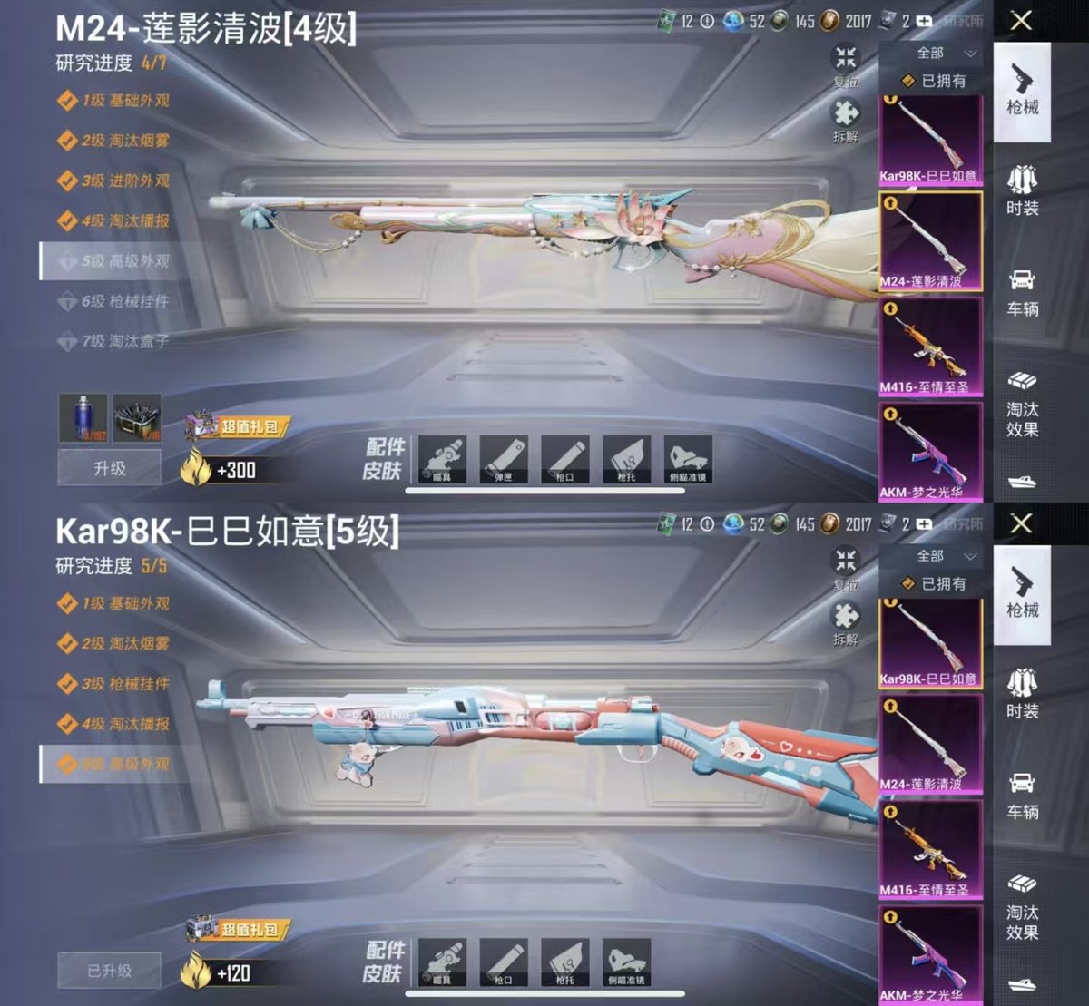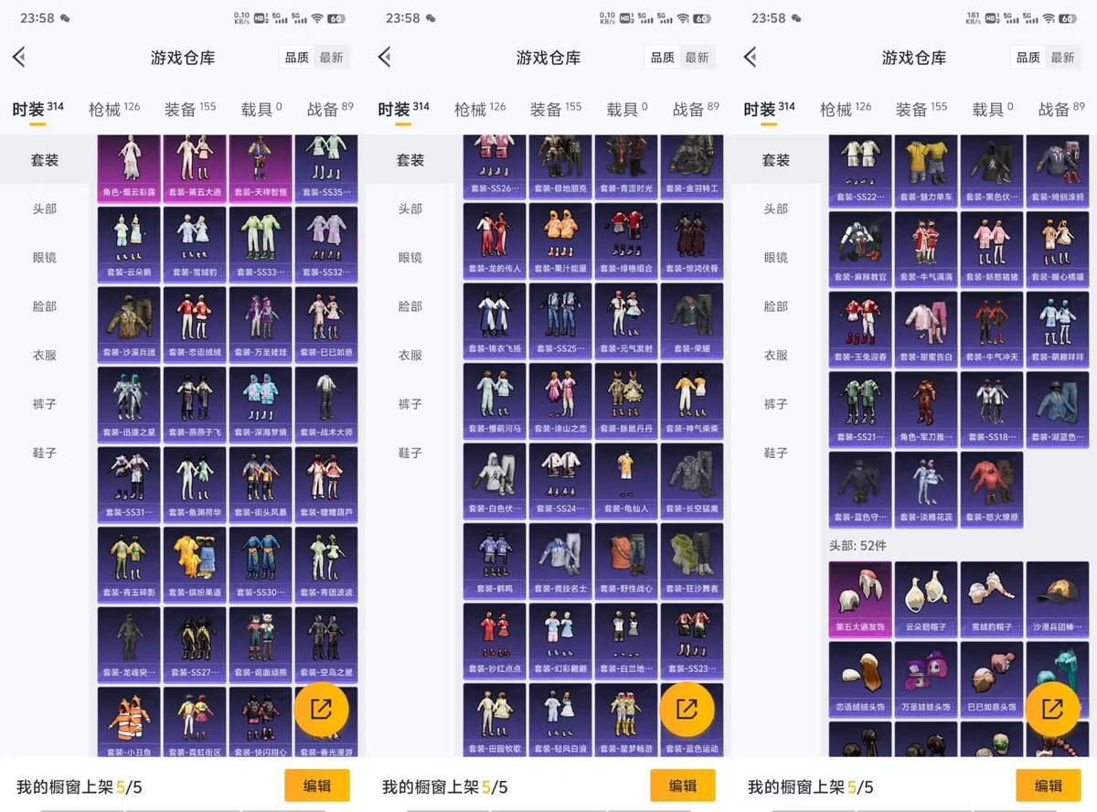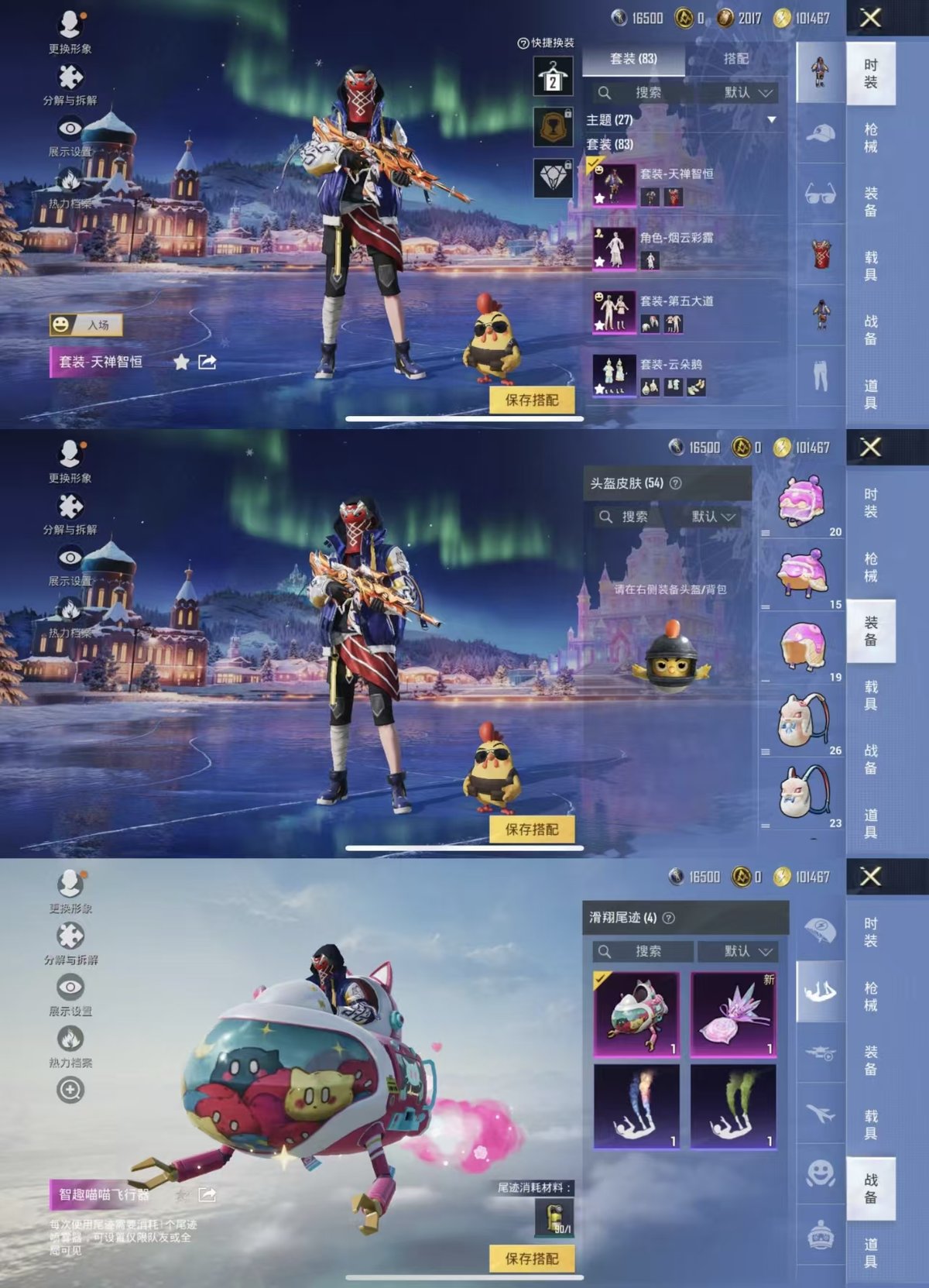 2311611-实名: 可修改 时装数: 314 呛械数: 126 战备数: 89 热门装扮: 万圣娃娃天禅智恒第五大道烟云彩露 稀有呛皮: akm梦之光华m416至情至圣m24莲影清波kar98k-巳巳如意