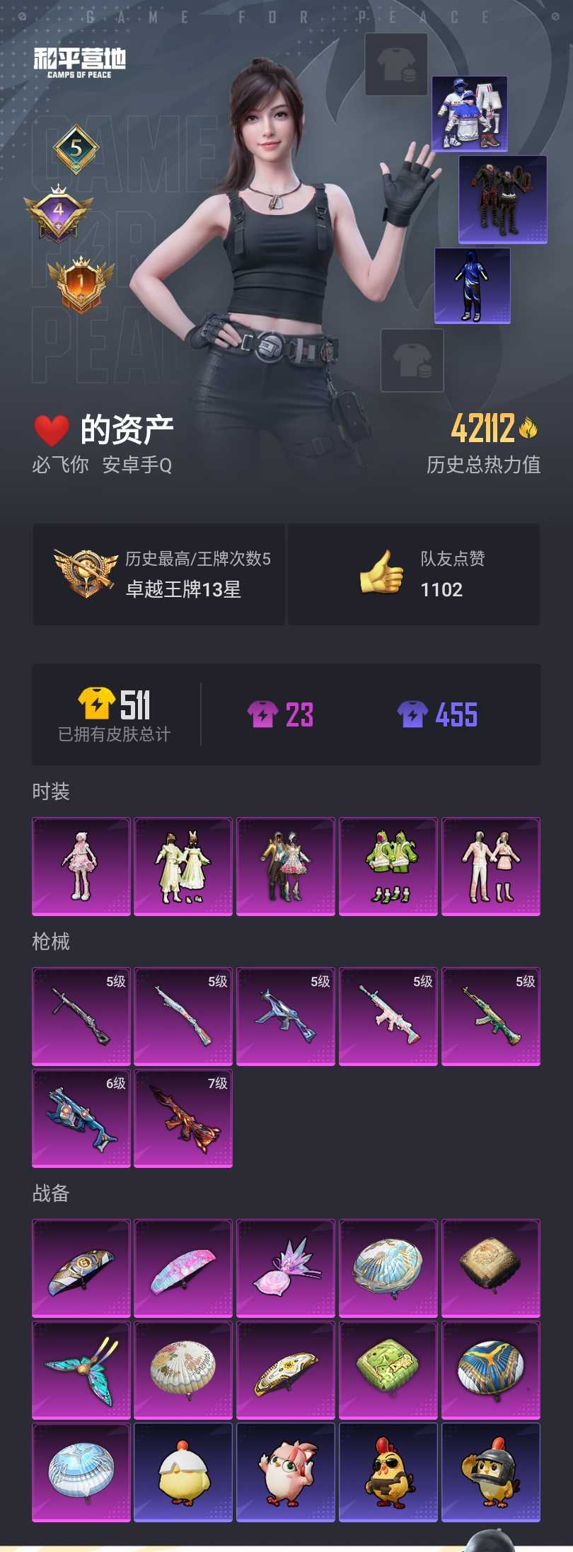 【和平精英】【lyhp18108】5粉装7特效呛 羊梦糖心 第五代 蝶舞迷情 暗影哥特 浪漫天命 战队服 满级m4风花血月 6级维克托 5粉装,7特效呛,0载具,历史最高段位:卓越王牌13星 王牌印记5次 热力值:42112,96套装,141呛械,178装备,78战备;套装:套装-蝶舞迷情,套装-恐龙拽拽,套装-第五大道,套装-闲梦青缨,角色-羊梦糖心,套装-特训学院,套装-黄色运动,套装-黄色伏地魔,套装-白色伏地魔,套装-竞技名士,套装-黄色名流,套装-猛禽,套装-长空猛禽,套装-海岛探路者,套装-旭日情侣,套装-灼焰舞者,套装-浪漫天命,套装-燃烧卡路里,套装-鹰眼刺客,套装-怒火燎原,套装-魅力单车,套装-绮丽涂鸦,套装-耀眼新星,套装-雪山征服者,套装-坚韧舞者,套装-破晓战魂,套装-幻世保卫者,套装-荣耀,套装-沙漠兵团,套装-极地朋克,套装-暗影哥特,套装-夏日倾情,套装-缤纷果语,套装-龙魂突击队,套装-淡雅花蕊,套装-鹤鸣,套装-纯白誓言,套装-战术大师,套装-ss18特训,套装-吉莉礼服,角色-英勇保护者,套装-ss17特训,套装-雪兔飞飞,角色-军刀雅典娜,套装-空投萌叽,套装-ss19特训,套装-tt战队服,套装-绯格组合,套装-ss23特训,套装-甜梦熊熊,套装-神气柴柴,套装-懵萌河马,套装-妙红点点,套装-幻彩翩翩,套装-柠萌假日,套装-青玉碎影,套装-ss24特训,套装-华灯初上,套装-日照花林,套装-龟仙人,套装-涂山之恋,套装-ss25特训,套装-惊鸿侠骨,套装-锦衣飞扬,套装-龙的传人,套装-冰河战士,套装-焰鹰斗篷,套装-幽夜迷踪,套装-幻羽潜行,套装-ss27特训,套装-老实芭蕉,套装-ss28特训,角色-白光莹,套装-海盐绵绵冰,套装-蝶变,套装-原力风暴,套装-小熊娃娃,套装-ss29特训,套装-雏菊兔兔,套装-萝兰蝴蝶,套装-星途旅人,套装-ss30特训,角色-绛羽幽主,套装-ss31特训,套装-ss33特训,套装-狂鲨锋刃,套装-蜜露汐语,套装-炫彩糖果,套装-元气之梦,套装-ss34特训,套装-游乐,套装-薄荷星砂,套装-ss35特训,套装-粉黛兰香,套装-ss36特训,套装-萌鸡速递;呛皮:mk47-乌木金纹,mk47-妙红点点,groza-恐龙拽拽,groza-懵萌河马,groza-2b战斗服款,groza-海盐豹豹,5级scar-l-锦绣绵绵,scar-l-红色方程式,scar-l-黄金龙骨,scar-l-夜灯,scar-l-彩虹符号,scar-l-星途旅人,scar-l-海盐豹豹,famas-霓彩脉冲,famas-乌木金纹,m16a4-蓝色火焰,m16a4-幻世战舞者,m16a4-冰河战士,m16a4-千金淑猫,m762-绯红前夜,m762-雏菊兔兔,m762-登顶巅峰,g36c-金风玉露,g36c-冷魅冰骑,g36c-懵萌河马,g36c-乌木金纹,aug-耀粉歌者,aug-天降萌叽,aug-紫晶流影,5级akm-绿萝繁花,akm-破晓战魂,akm-涂鸦街区,akm-虎虎生威,akm-恐龙拽拽,akm-龙的传人,akm-霓彩脉冲,akm-绿洲时空,蜜獾-天降萌叽,7级m416-风花雪月,m416-蓝色火焰,ac-val-乌木金纹,amr-妙红点点,amr-鸡智如我,amr-乌木金纹,awm-恐龙拽拽,awm-焰鹰斗篷,svd-霓彩脉冲,5级kar98k-巳巳如意,kar98k-彩虹符号,kar98k-炫彩节奏,kar98k-乌木金纹,莫辛纳甘-乌木金纹,莫辛纳甘-懵萌河马,m200-惊鸿侠骨,m24-乌木金纹,win94-乌木金纹,mk12-乌木金纹,mini14-春暖花开,mini14-涂山之恋,mini14-香桃花海,mini14-雏菊兔兔,mini14-鸡智如我,vss-彩虹符号,slr-极冰使者,slr-霓彩脉冲,sks-炫彩节奏,mk14-冰河战士,mk14-薄荷星砂,mk20-h-星途旅人,mk20-h-狂鲨锋刃,mk20-h-乌木金纹,m417-惊鸿侠骨,uzi-红色方程式,uzi-天降萌叽,uzi-幽秘魅影,uzi-冰河战士,uzi-炫彩糖果,6级vect-环太平洋,vect-生命誓言,vect-彩虹符号,vect-焰鹰斗篷,5级ump45-量子极限,ump45-夜灯,ump45-蓝色火焰,ump45-涂山之恋,ump45-繁龙极客,p90-玩趣呆呆,p90-巳巳如意,p90-乌木金纹,汤姆逊-耀粉歌者,汤姆逊-天降萌叽,aks-74u-鸡智如我,aks-74u-乌木金纹,mp5k-乌木金纹,野牛-雏菊兔兔,野牛-乌木金纹,dbs-第五大道,dbs-彩虹符号,dbs-焰鹰斗篷,dbs-乌木金纹,s686-生命誓言,s686-彩虹符号,s12k-破晓战魂,s12k-夜灯,s12k-龙宫之主,s12k-幻世战舞者,s12k-玩趣呆呆,s12k-霓彩脉冲,spas-12-狂鲨锋刃,spas-12-乌木金纹,s1897-春暖花开,m249-破晓战魂,m249-彩虹符号,m249-妙红点点,m249-无面战甲,mg3-幻世战舞者,mg3-妙红点点,mg3-惊鸿侠骨,pkm-懵萌河马,5级dp-28-豹影疾电,dp-28-焰鹰斗篷,r1895-雏菊兔兔,tmp-9-江南烟雨,蝎式手呛-幽秘魅影,蝎式手呛-金丰海韵,平底锅-妙红点点,平底锅-懵萌河马,平底锅-惊鸿侠骨,平底锅-焰鹰斗篷,平底锅-雏菊兔兔,平底锅-魔法神域,大砍刀-2p战斗服款,破片手留单-呆爆全场,破片手留单-星途旅人,破片手留单-拽到爆炸,破片手留单-爆破雪人,十子怒-异瞳寒姬,十子怒-异域银装,突击盾牌-绝对恒星,铝热弹-炫彩糖果,爆炸猎弓-惊鸿侠骨;降落伞:春暖花开飞行器,炫彩糖果飞行器,粉色滑翔尾迹,狂鲨锋刃飞行器,鸡智如我飞行器; 详情看图