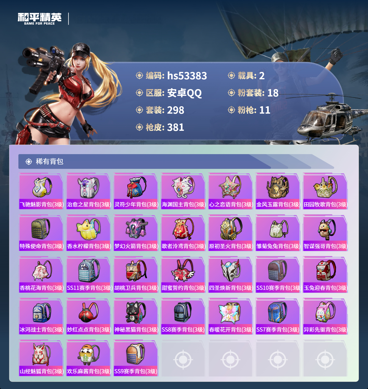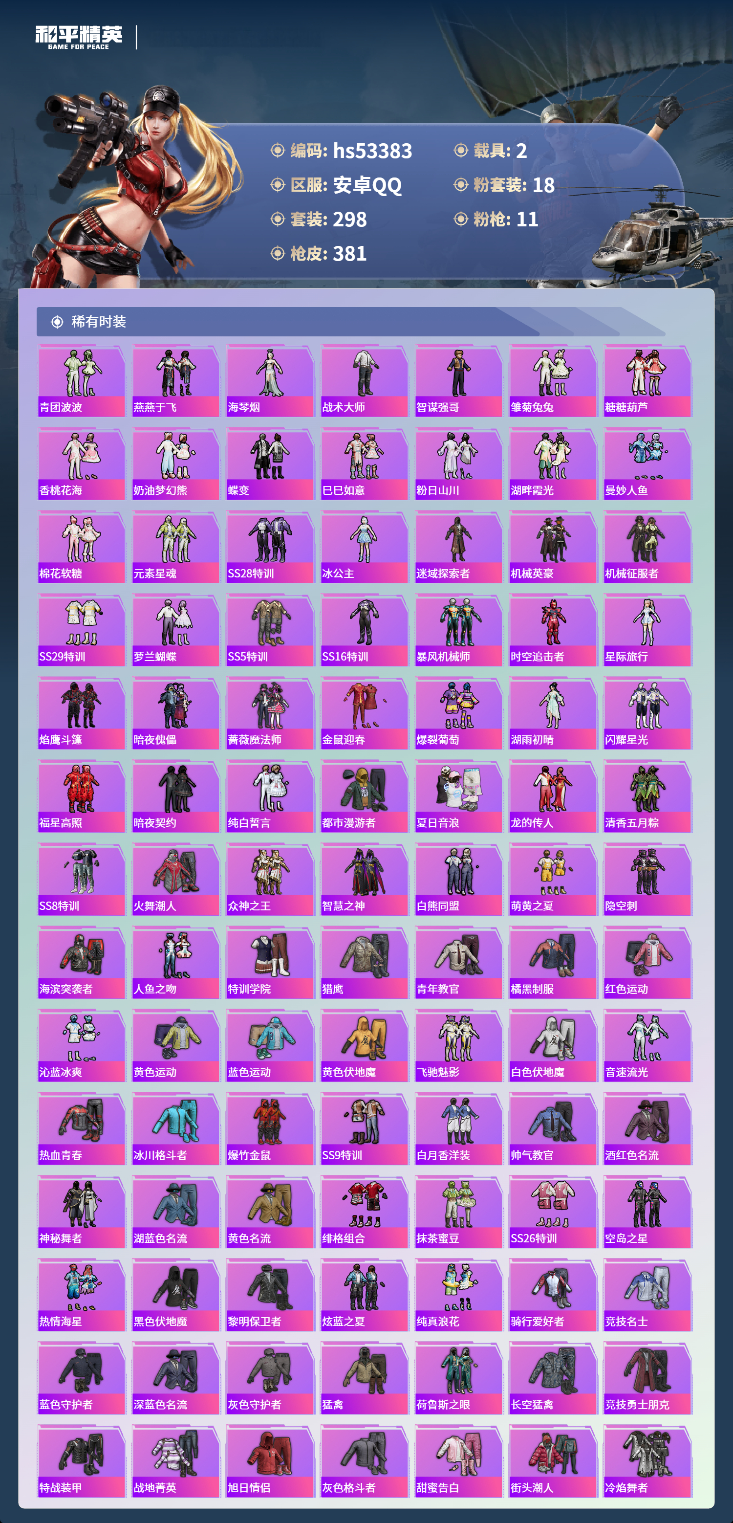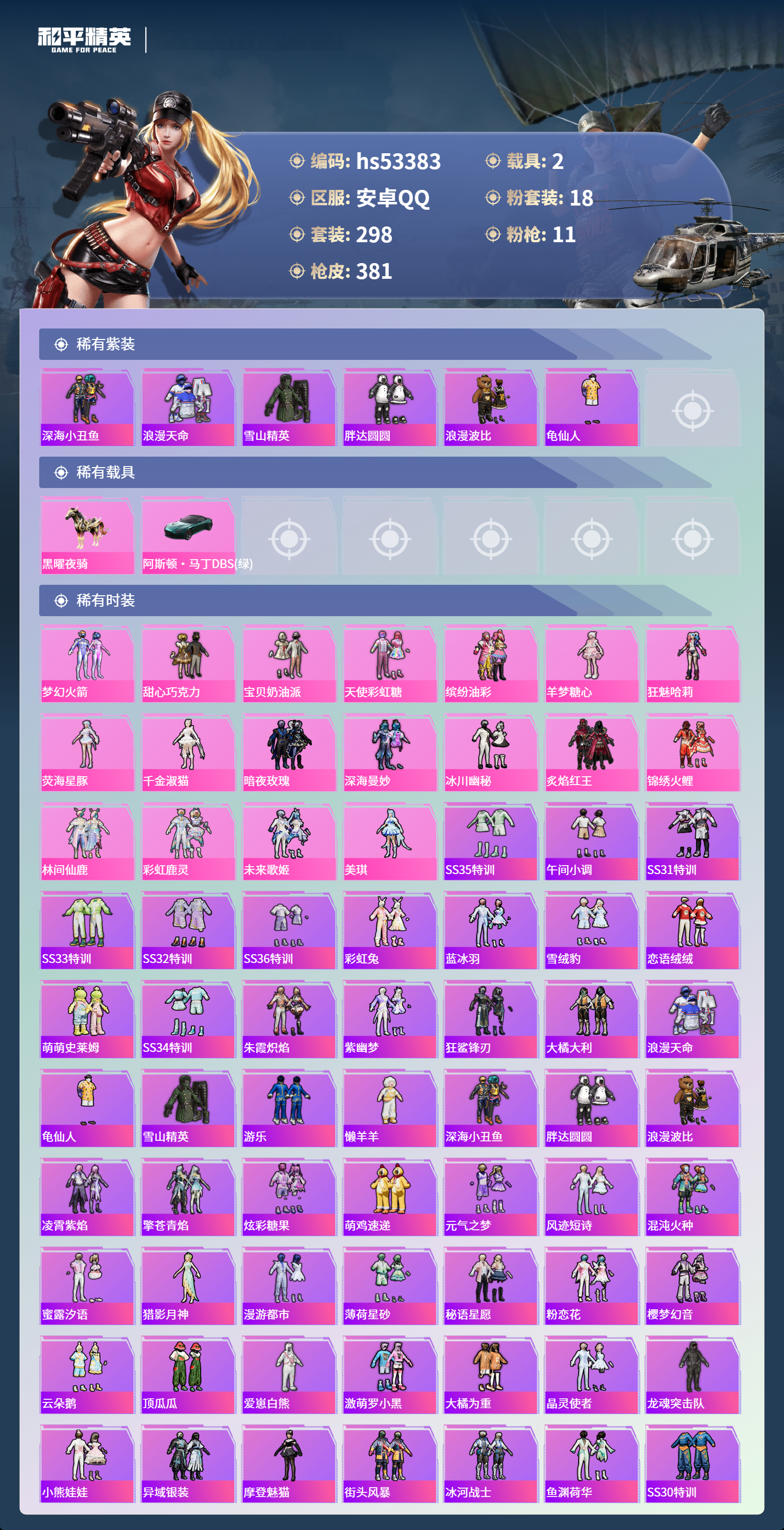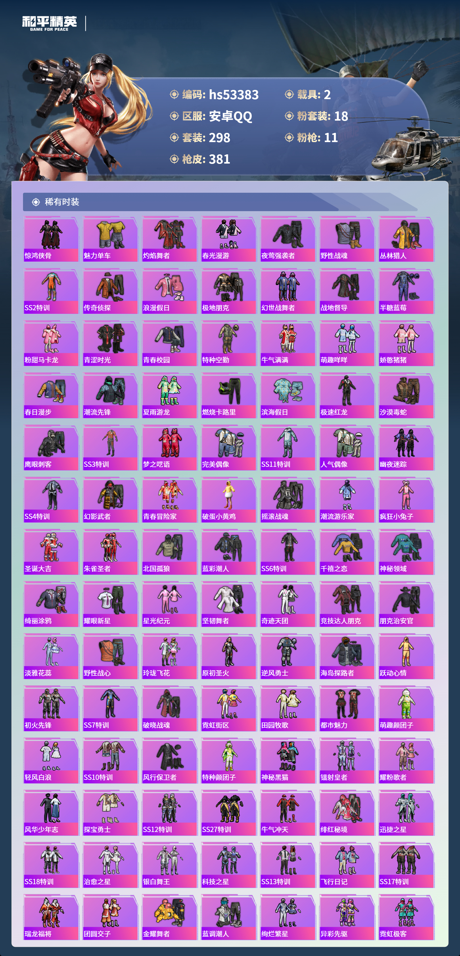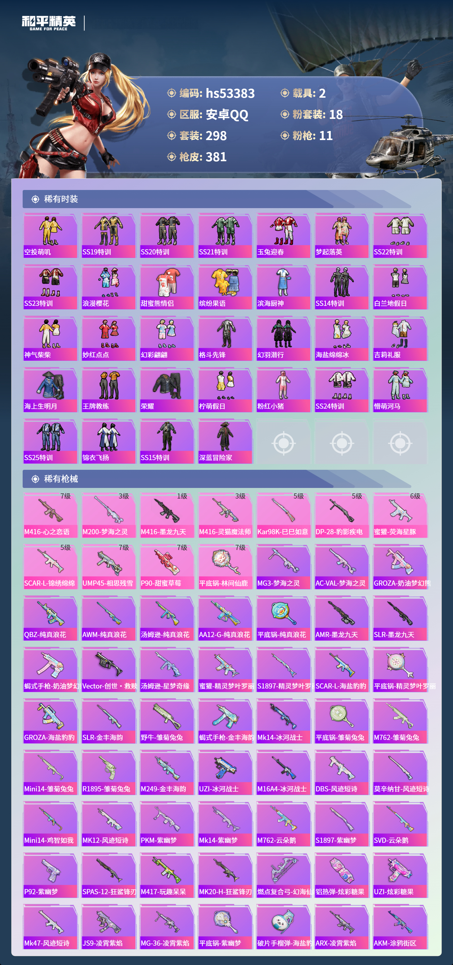 hs53383 安卓手q-26王牌印记-18粉装-11特效呛-2载具-热力值-298套装-381呛皮-5卓越印记-2传奇印记【18粉装】套装-深海曼妙套装-彩虹鹿灵套装-暗夜玫瑰套装-锦绣火鲤套装-林间仙鹿角色-荧海星豚套装-冰川幽秘套装-炙焰红王角色-狂魅哈莉套装-天使彩虹糖套装-未来歌姬套装-甜心巧克力套装-梦幻火箭套装-宝贝奶油派角色-羊梦糖心角色