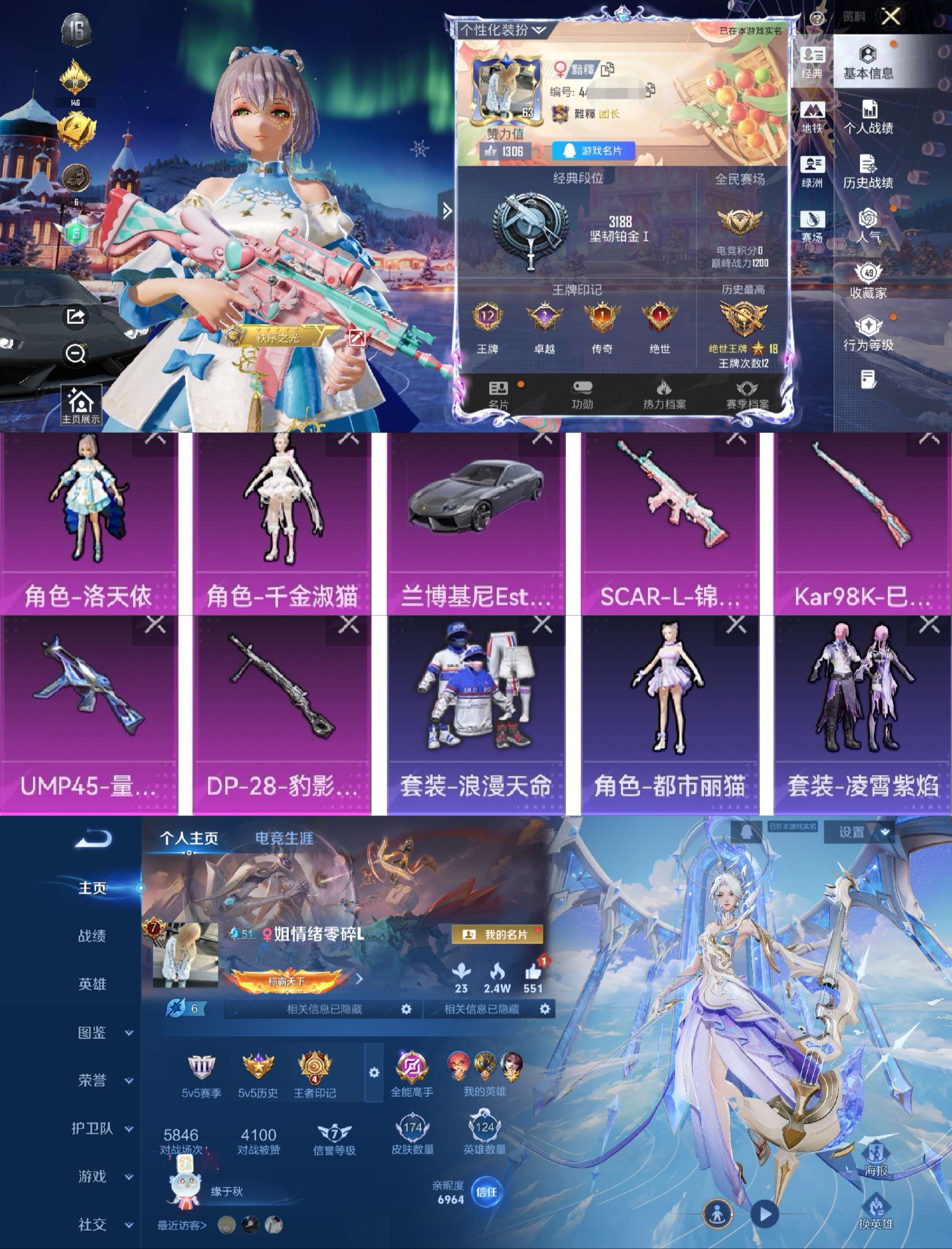 "h6523和平王者一体号 无二次 安卓q-段位铂金 12印记1绝世 122套装147呛皮 【2粉装】 角色-洛天依 角色-千金淑猫 【1载具】 兰博基尼estoque银翼灰 【4特效呛】 ump45-量子极限 5级 scar-l-锦绣绵绵 5级 kar98k-巳巳如意 2级 dp-28-豹影疾电 5级 【热门】 凌霄紫焰 朱霞炽焰 角色-都市丽猫 浪漫天命 【王者】 v7-124英雄174皮