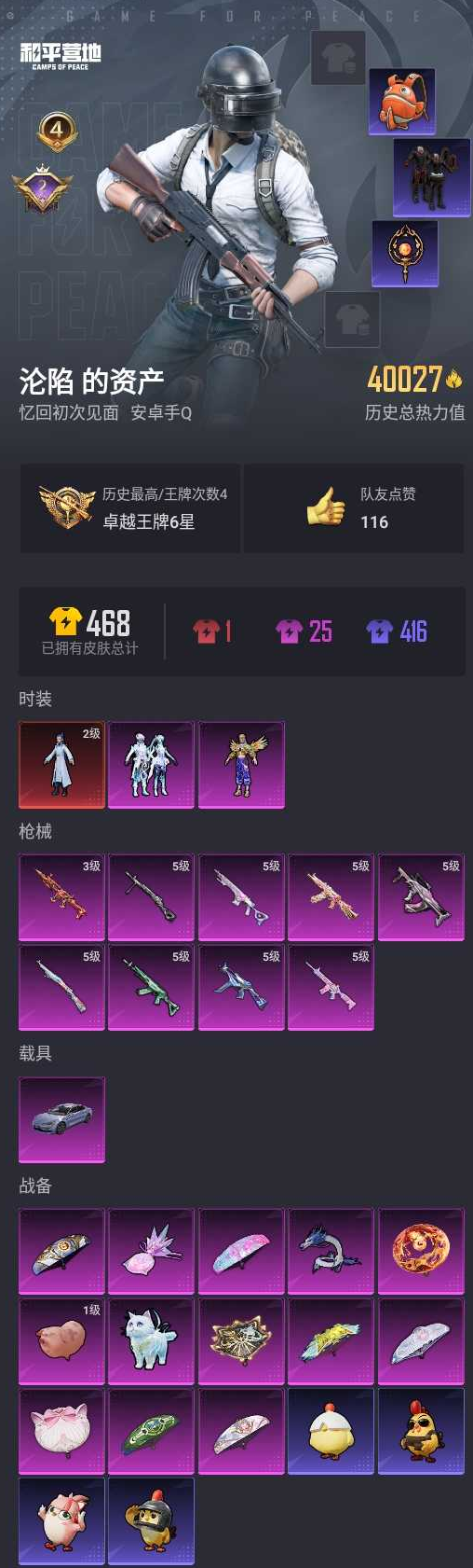 【和平精英】【lyhp17928】地铁满天赋 1红2粉9特效呛1载 2级敖丙 光极星 多呛型 m4电玩 scar-l哪吒 仰望轿车 2粉装,9特效呛,1载具,历史最高段位:卓越王牌6星 王牌印记4次 热力值:40027,82套装,127呛械,166装备,76战备;套装:魔童闹海-敖丙,角色-光极星,套装-幻彩电音,套装-特训学院,套装-猎鹰,套装-青年教官,套装-橘黑制服,套装-红色运动,套装-黄色运动,套装-蓝色运动,套装-白色伏地魔,套装-黑色伏地魔,套装-海岛探路者,套装-旭日情侣,套装-特殊使命,套装-街头潮人,套装-魅力单车,套装-金耀舞者,套装-暗影哥特,套装-青涩时光,套装-缤纷果语,套装-滨海厨神,套装-龙魂突击队,套装-冰川特警,套装-元素星魂,套装-粉红小猪,套装-破蛋小黄鸡,套装-战术大师,套装-曼妙人鱼,套装-热情海星,套装-纯真浪花,套装-天籁歌者,套装-王牌教练,套装-龟仙人,套装-冰河战士,套装-ss27特训,套装-恋语绒绒,套装-ss28特训,角色-湖雨初晴,角色-多纳泰罗,角色-银尘,套装-白辉玉蕊,套装-街头风暴,套装-海盐绵绵冰,套装-蝶变,套装-创世·幻影,套装-ss29特训,套装-雏菊兔兔,套装-萝兰蝴蝶,角色-紫俏灵猫,套装-异域银装,角色-摩登魅猫,套装-星途旅人,套装-ss30特训,套装-青团波波,套装-棉花软糖,套装-暗夜风云,套装-糖糖葫芦,套装-蓝调潮影,套装-ss31特训,套装-鱼渊荷华,套装-燕燕于飞,套装-智谋强哥,套装-紫幽梦,套装-ss33特训,套装-巳巳如意,套装-ss32特训,套装-蓝冰羽,套装-顶瓜瓜,套装-大橘大利,套装-炫彩糖果,套装-元气之梦,套装-ss34特训,套装-擎苍青焰,套装-朱霞炽焰,套装-凌霄紫焰,套装-薄荷星砂,套装-ss35特训,套装-午间小调,套装-风迹短诗,套装-ss36特训,套装-萌鸡速递;呛皮:5级groza-镜光银凌,5级m416-电玩时刻,m416-蓝色火焰,蜜獾-天降萌叽,蜜獾-精灵梦叶罗丽,蜜獾-糖糖葫芦,蜜獾-鸡智如我,蜜獾-风迹短诗,蜜獾-乌木金纹,aug-天降萌叽,aug-异域银装,aug-冰晶雪宝,aug-紫晶流影,mk47-洛神天依,mk47-乌木金纹,mk47-风迹短诗,akm-破晓战魂,akm-涂鸦街区,akm-灵猫魔法师,akm-霓彩脉冲,q-彩虹符号,q-纯真浪花,m16a4-冰河战士,famas-霓彩脉冲,famas-乌木金纹,3级scar-l-魔童闹海 哪吒,scar-l-玉兔迎春,scar-l-星途旅人,scar-l-海盐豹豹,ac-val-天降萌叽,5级m762-青锋波束,m762-雏菊兔兔,arx-凌霄紫焰,awm-纯真浪花,m24-幻彩电音,5级kar98k-巳巳如意,kar98k-星穹咏叹调,win94-乌木金纹,m200-乌木金纹,莫辛纳甘-风迹短诗,amr-鸡智如我,mk20-h-糖糖葫芦,mk20-h-狂鲨锋刃,mk20-h-乌木金纹,5级mk14-甜梦熊击,mk14-冰河战士,mk14-电糖天使,mk14-紫幽梦,mk14-薄荷星砂,mk14-紫晶流影,vss-香桃花海,mini14-香桃花海,mini14-雏菊兔兔,mini14-绯穹魔姬,mini14-鸡智如我,m417-玩趣呆呆,slr-霓彩脉冲,mk12-风迹短诗,mk12-乌木金纹,qbu-未来领航者,野牛-雏菊兔兔,野牛-燕燕于飞,uzi-天降萌叽,uzi-冰河战士,uzi-啾咪啾咪,uzi-炫彩糖果,汤姆逊-纯真浪花,汤姆逊-灵猫魔法师,5级aks-74u-星穹咏叹调,aks-74u-乌木金纹,5级ump45-量子极限,ump45-海盐豹豹,ump45-糖糖葫芦,js9-凌霄紫焰,vect-生命誓言,vect-燕燕于飞,mp5k-乌木金纹,p90-玩趣呆呆,p90-巳巳如意,dbs-彩虹符号,dbs-月影灵韵,dbs-风迹短诗,dbs-乌木金纹,s12k-霓彩脉冲,spas-12-燕燕于飞,spas-12-乌木金纹,s686-奇异狩猎者,s686-巳巳如意,s1897-精灵梦叶罗丽,s1897-紫幽梦,s1897-糯团青竹,aa12-g-纯真浪花,pkm-紫幽梦,mg3-智耀战神,mg-36-凌霄紫焰,m249-绯穹魔姬,5级dp-28-豹影疾电,蝎式手呛-燕燕于飞,短管霰弹-星穹咏叹调,沙墨之鹦-羲和光序,p18c-糖糖葫芦,r1895-绊爱,r1895-雏菊兔兔,r45-拳皇·狂花道,p92-紫幽梦,p92-凌霄紫焰,电击呛-喜羊羊与灰太狼,平底锅-精灵梦叶罗丽,平底锅-纯真浪花,平底锅-雏菊兔兔,平底锅-糖糖葫芦,平底锅-紫幽梦,平底锅-凌霄紫焰,撬棍-灵猫魔法师,撬棍-火尖呛,破片手留单-星途旅人,破片手留单-拽到爆炸,破片手留单-巳巳如意,破片手留单-火尖莲影,破片手留单-爆破雪人,铝热弹-炫彩糖果,盐雾蛋-鸢尾晶梦,盐雾蛋-冰氧夏日,十子怒-异瞳寒姬,十子怒-燕燕于飞,十子怒-异域银装,燃点复合弓-火尖莲影;载具:仰望u7阿盖尔紫;降落伞:灵猫魔法师飞行器,炫彩糖果飞行器,灵珠游龙飞行器,飞天猪飞行器,粉色滑翔尾迹,异域银装飞行器,顶峰精英尾迹,狂鲨锋刃飞行器,破刃行动尾迹,鸡智如我飞行器,登顶巅峰飞行器; 详情看图