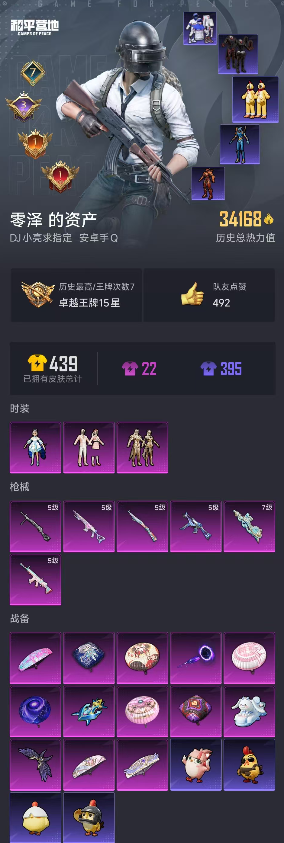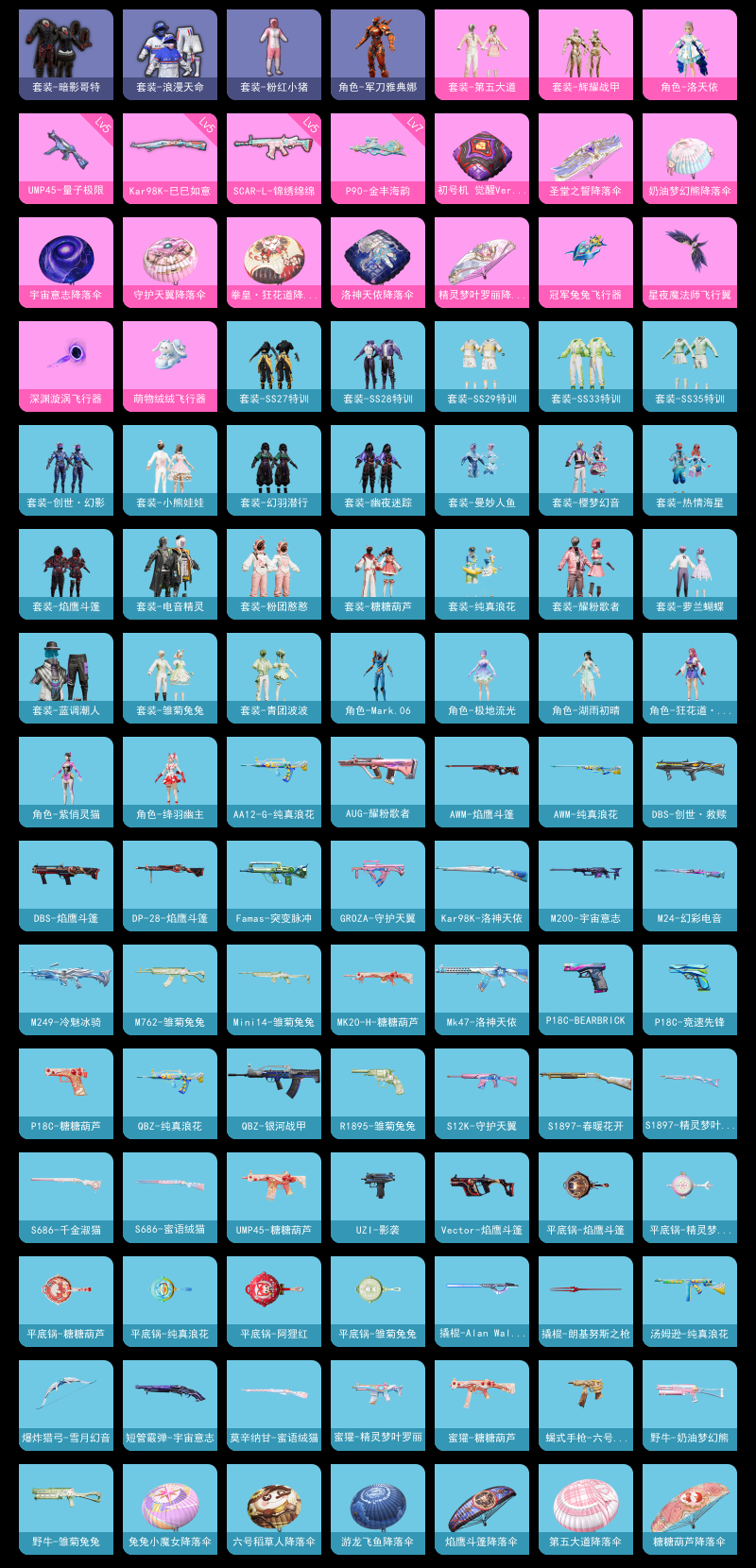【和平精英】【lyhp18215】满天赋 1传奇1绝世印记3粉装6特效呛 洛天依 第五大道 暗影哥特 浪漫天命 蓝螳螂 满级p90 满级妹控 3粉装,6特效呛,0载具,历史最高段位:卓越王牌15星 王牌印记7次 热力值:34168,74套装,107呛械,166装备,79战备;套装:角色-洛天依,套装-第五大道,套装-辉耀战甲,套装-黄色伏地魔,套装-白色伏地魔,套装-黑色伏地魔,套装-竞技名士,套装-深蓝色名流,套装-猛禽,套装-长空猛禽,套装-海岛探路者,套装-浪漫天命,套装-特战装甲,套装-战地督导,套装-蓝彩潮人,套装-神秘领域,套装-魅力单车,套装-竞技达人朋克,套装-森林游猎者,套装-都市魅力,套装-蓝调潮人,套装-暗影哥特,套装-缤纷果语,套装-滨海厨神,套装-龙魂突击队,套装-元素星魂,套装-极速红龙,套装-粉红小猪,套装-白熊同盟,套装-战术大师,套装-耀粉歌者,套装-曼妙人鱼,套装-热情海星,套装-纯真浪花,套装-电音精灵,角色-军刀雅典娜,套装-粉团憨憨,套装-龟仙人,套装-香桃花海,套装-冰河战士,套装-空岛之星,套装-焰鹰斗篷,套装-幽夜迷踪,套装-幻羽潜行,套装-ss27特训,套装-老实芭蕉,套装-ss28特训,角色-湖雨初晴,角色-极地流光,角色-mark.06,套装-海盐绵绵冰,套装-蝶变,套装-创世·幻影,套装-小熊娃娃,套装-ss29特训,套装-雏菊兔兔,角色-狂花道·雅典娜,套装-萝兰蝴蝶,角色-紫俏灵猫,套装-异域银装,套装-星途旅人,套装-ss30特训,套装-青团波波,角色-绛羽幽主,套装-糖糖葫芦,套装-ss31特训,套装-ss33特训,套装-ss32特训,套装-樱梦幻音,套装-元气之梦,套装-ss34特训,套装-薄荷星砂,套装-ss35特训,套装-萌鸡速递;呛皮:m416-蓝色火焰,groza-守护天翼,groza-海盐豹豹,akm-破晓战魂,akm-涂鸦街区,5级scar-l-锦绣绵绵,scar-l-星途旅人,scar-l-海盐豹豹,aug-耀粉歌者,aug-天降萌叽,aug-异域银装,aug-紫晶流影,q-银河战甲,q-彩虹符号,q-纯真浪花,mk47-洛神天依,famas-突变脉冲,famas-霓彩脉冲,famas-乌木金纹,m16a4-冰河战士,蜜獾-天降萌叽,蜜獾-精灵梦叶罗丽,蜜獾-糖糖葫芦,蜜獾-乌木金纹,m762-雏菊兔兔,5级kar98k-巳巳如意,kar98k-洛神天依,kar98k-行星泡泡,kar98k-顶峰精英,m24-幻彩电音,m200-宇宙意志,m200-乌木金纹,svd-霓彩脉冲,awm-焰鹰斗篷,awm-纯真浪花,win94-乌木金纹,莫辛纳甘-蜜语绒猫,amr-鸡智如我,vss-香桃花海,mini14-香桃花海,mini14-雏菊兔兔,m417-玩趣呆呆,5级mk14-甜梦熊击,mk14-冰河战士,mk14-薄荷星砂,mk14-紫晶流影,slr-霓彩脉冲,mk20-h-星途旅人,mk20-h-糖糖葫芦,mk20-h-乌木金纹,5级ump45-量子极限,ump45-糖糖葫芦,7级p90-金丰海韵,p90-玩趣呆呆,aks-74u-乌木金纹,野牛-奶油梦幻熊,野牛-雏菊兔兔,mp5k-乌木金纹,uzi-影袭,uzi-天降萌叽,uzi-冰河战士,uzi-啾咪啾咪,uzi-炫彩糖果,汤姆逊-炫彩节奏,汤姆逊-纯真浪花,vect-焰鹰斗篷,spas-12-狂鲨锋刃,spas-12-乌木金纹,aa12-g-纯真浪花,dbs-彩虹符号,dbs-焰鹰斗篷,dbs-创世·救赎,dbs-乌木金纹,s686-蜜语绒猫,s686-千金淑猫,s1897-春暖花开,s1897-精灵梦叶罗丽,s1897-糯团青竹,s12k-守护天翼,pkm-啾咪啾咪,pkm-明月桂语,5级dp-28-豹影疾电,dp-28-焰鹰斗篷,m249-冷魅冰骑,p18c-竞速先锋,p18c-bearbrick,p18c-糖糖葫芦,r1895-雏菊兔兔,短管霰弹-宇宙意志,蝎式手呛-六号稻草人,平底锅-阿狸红,平底锅-空岛之星,平底锅-焰鹰斗篷,平底锅-精灵梦叶罗丽,平底锅-纯真浪花,平底锅-雏菊兔兔,平底锅-糖糖葫芦,平底锅-属我最6,撬棍-alan walker潮音版,撬棍-朗基努斯之呛,破片手留单-呆爆全场,破片手留单-星途旅人,破片手留单-拽到爆炸,盐雾蛋-冰氧夏日,铝热弹-炫彩糖果,十子怒-异域银装,爆炸猎弓-雪月幻音;降落伞:星夜魔法师飞行翼,萌物绒绒飞行器,冠军兔兔飞行器,深渊漩涡飞行器,空岛之星尾迹,梦幻童话飞行器,异域银装飞行器,顶峰精英尾迹; 详情看图