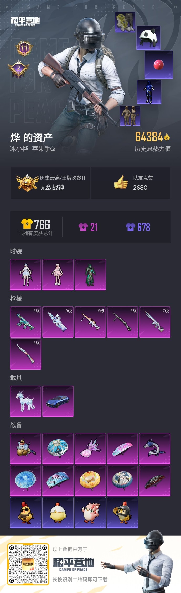 【和平精英】【txhp4993】3粉装,6特效呛,2载具,历史最高段位:无敌战神 王牌印记11次 热力值:64384,188套装,213呛械,210装备,118战备;套装:套装-木曜青龙,角色-羊梦糖心,角色-冰魄,套装-特训学院,套装-猎鹰,套装-青年教官,套装-橘黑制服,套装-红色运动,套装-黄色运动,套装-蓝色运动,套装-黄色伏地魔,套装-白色伏地魔,套装-黑色伏地魔,套装-骑行爱好者,套装-登山爱好者,套装-竞技名士,套装-深蓝色名流,套装-酒红色名流,套装-湖蓝色名流,套装-黄色名流,套装-猛禽,套装-棕色飞行服,套装-伏击者,套装-游猎者,套装-长空猛禽,套装-漫步者,套装-竞技勇士朋克,套装-黎明保卫者,套装-蓝色守护者,套装-海岛探路者,套装-破晓情侣,套装-冷焰舞者,套装-灼焰舞者,套装-刚毅裁决者,套装-特战装甲,套装-战地菁英,套装-战地督导,套装-黄色格斗者,套装-灰色格斗者,套装-活力之心,套装-碟中谍a款,套装-战地名士,套装-迎春赐吉,套装-春日漫步,套装-滨海假日,套装-鹰眼刺客,套装-冰冻风暴,套装-完美偶像,套装-人气偶像,套装-幻影武者,套装-海滨突袭者,套装-街头潮人,套装-暗金炫舞,套装-蓝彩潮人,套装-千禧之恋,套装-神秘领域,套装-怒火燎原,套装-决胜时刻,套装-魅力单车,套装-绮丽涂鸦,套装-耀眼新星,套装-狂战萌兔,套装-雪山征服者,套装-坚韧舞者,套装-竞技达人朋克,套装-夜莺强袭者,套装-超能勇士,套装-狂沙舞者,套装-破晓战魂,套装-都市魅力,套装-s5赛事,套装-热血青春,套装-沙漠兵团,套装-ss2特训,套装-雪山精英,套装-酷潮明星,套装-摩艾涂鸦,套装-奇趣章鱼,套装-向日葵先生,套装-甜蜜熊情侣,套装-青涩时光,套装-缤纷果语,套装-滨海厨神,套装-特种空勤,套装-和平特警,套装-风暴特警,套装-耀动青春,套装-青涩年华,套装-元素星魂,套装-胖达团团,套装-极速红龙,套装-格斗先锋,套装-旷野奇兵,套装-ss3特训,套装-东方飞龙,套装-初雨海棠,套装-梦魇先生,套装-万圣娃娃,套装-黑夜传说,套装-破蛋小黄鸡,套装-疯狂小兔子,套装-花面小丑,套装-森林猎手,套装-幻世猎手,套装-ss5特训,套装-圣诞大吉,套装-熔岩使者,套装-凛冬战士,套装-好奇恐龙,套装-裁决冥王,套装-云虎纪,套装-北国孤狼,套装-ss6特训,套装-跃动心情,套装-鹤鸣,套装-霓虹街区,套装-ss8特训,套装-白熊同盟,套装-萌黄之夏,套装-ss9特训,套装-顽皮玉兔,套装-乘风破浪,套装-牛气满满,套装-白糯汤圆,套装-ss11特训,套装-诡谋托雷基亚,套装-萌趣颜团子,套装-特种颜团子,套装-战术大师,套装-ss12特训,套装-牛气冲天,套装-耀粉歌者,套装-ss13特训,套装-ss14特训,套装-ss15特训,套装-ss16特训,套装-ss17特训,套装-福星高照,套装-海龙战士,套装-虎虎生威吉莉,套装-ss19特训,套装-tt战队服,套装-ss23特训,套装-ss25特训,套装-惊鸿侠骨,套装-锦衣飞扬,套装-龙的传人,套装-ss26特训,套装-漫游都市,套装-云魄琉璃,套装-街头风暴,套装-ss29特训,角色-绯色魅影,角色-紫俏灵猫,角色-无面战甲,套装-异域银装,套装-夜幕侵蚀,套装-ss31特训,套装-鱼渊荷华,套装-燕燕于飞,套装-紫幽梦,套装-粉恋花,套装-ss33特训,套装-云朵鹅,套装-ss32特训,套装-彩虹兔,套装-蓝冰羽,套装-顶瓜瓜,套装-雪绒豹,套装-狂鲨锋刃,套装-大橘大利,套装-星渊小夜曲,套装-炫彩糖果,玩偶服-喜羊羊,套装-元气之梦,套装-ss34特训,套装-擎苍青焰,套装-朱霞炽焰,套装-凌霄紫焰,套装-薄荷星砂,套装-ss35特训,套装-午间小调,套装-秘语星愿,套装-风迹短诗,套装-粉黛兰香,套装-错位像素,套装-ss36特训,套装-萌鸡速递;呛皮:arx-凌霄紫焰,aug-凝视深渊,aug-耀粉歌者,aug-天降萌叽,aug-2p战斗服款,aug-异域银装,aug-紫晶流影,aug-乌木金纹,g36c-荒野猎神,g36c-乌木金纹,akm-生命誓言,akm-破晓战魂,akm-霓虹街区,akm-涂鸦街区,akm-萌趣颜团子,akm-恐龙拽拽,akm-龙的传人,akm-霓彩脉冲,akm-乌木金纹,akm-绿洲时空,m416-蓝色火焰,m416-红色方程式,m416-错位像素,m416-乌木金纹,groza-影袭,groza-生命誓言,groza-银河战甲,groza-南瓜骑士,groza-彩虹符号,groza-无面战甲,scar-l-红色方程式,scar-l-雷霆特警,scar-l-夜灯,scar-l-炫彩节奏,scar-l-彩虹符号,scar-l-玉兔迎春,scar-l-乌木金纹,m762-生命誓言,m762-诡娃娃,m762-甜心宝贝,m762-第五大道,m762-天降萌叽,m762-云朵鹅,m762-乌木金纹,mk47-粉色回忆,mk47-风迹短诗,5级蜜獾-异瞳寒姬,蜜獾-天降萌叽,蜜獾-风迹短诗,蜜獾-冰澜龙吟,蜜獾-乌木金纹,m16a4-蓝色火焰,m16a4-红色方程式,m16a4-乌木金纹,famas-霓彩脉冲,famas-乌木金纹,q-诡娃娃,q-乌木金纹,m24-影袭,m24-未来战士,m24-冰封烈焰,m24-天降萌叽,m24-乌木金纹,5级kar98k-巳巳如意,kar98k-红色方程式,kar98k-影袭,kar98k-彩虹符号,kar98k-2b战斗服款,kar98k-乌木金纹,svd-云朵鹅,svd-霓彩脉冲,莫辛纳甘-乌木金纹,莫辛纳甘-风迹短诗,awm-黄金龙骨,awm-荒野猎神,awm-乌木金纹,awm-绿洲时空,m200-惊鸿侠骨,m200-乌木金纹,win94-乌木金纹,vss-雷霆特警,vss-未来战士,vss-圣诞大吉,vss-乌木金纹,mini14-生命誓言,mini14-春暖花开,mini14-炫彩节奏,mini14-耀粉歌者,mini14-鸡智如我,mini14-乌木金纹,sks-诡娃娃,sks-炫彩节奏,sks-青瓷战姬,sks-乌木金纹,mk14-乌木金纹,mk14-紫幽梦,mk14-薄荷星砂,mk14-紫晶流影,qbu-烈焰拳霸,qbu-夜幕侵蚀,7级mk12-雪月幻音,mk12-风迹短诗,mk12-乌木金纹,slr-霓彩脉冲,m417-惊鸿侠骨,mk20-h-乌木金纹,aks-74u-鸡智如我,aks-74u-乌木金纹,野牛-燕燕于飞,野牛-乌木金纹,ump45-夜灯,ump45-蓝色火焰,ump45-生命誓言,ump45-粉色回