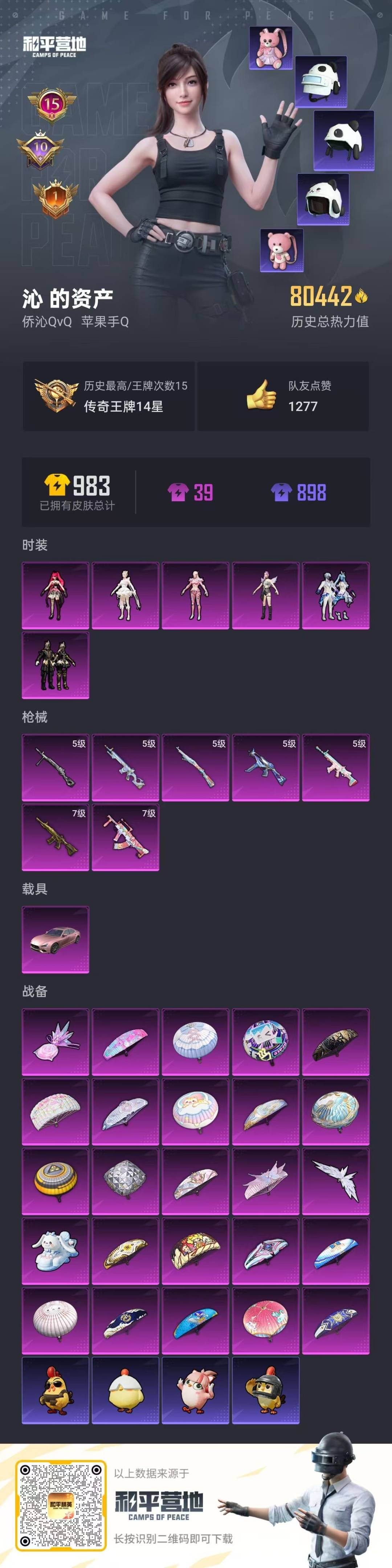 6粉装 7特效呛 1载具 15印记 可二次 可修改实名 【热门装扮】:千金淑猫绯穹魔姬暗夜鎏金未来歌姬茉莉星守护天翼胖达团团激萌罗小黑潮萌小黄鸭迅捷狂鲨鹰眼刺客深海小丑鱼 【载具】:玛莎拉蒂ghibli粉 【稀有呛皮】:12-雪月幻音ump45量子极限kar98k
