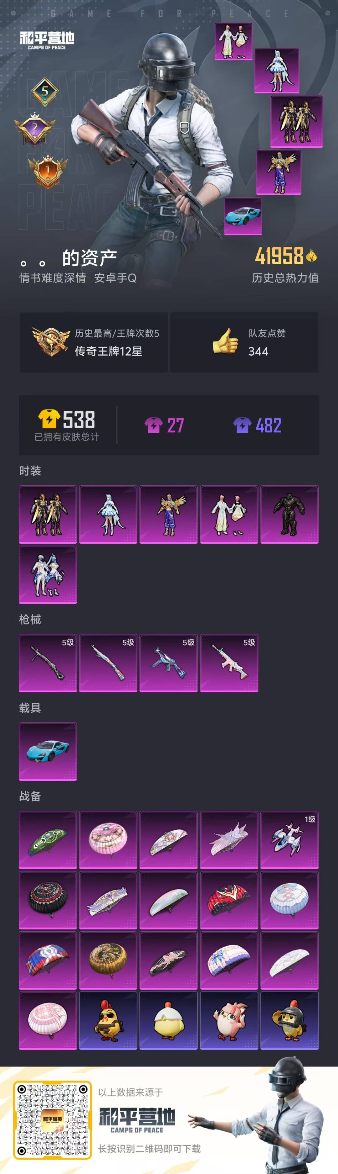 6粉装 4特效呛 1.0载具 5印记 可二次 【热门装扮】猩猩队长莲影清波未来歌姬光极星美琪创世·救赎 【载具】迈凯伦570s天际蓝 【稀有呛皮】scar-l-锦绣绵绵kar98k-巳巳如意ump45量子极限dp-28-豹影疾电 【五级特效呛】五级scar-l-锦绣绵绵