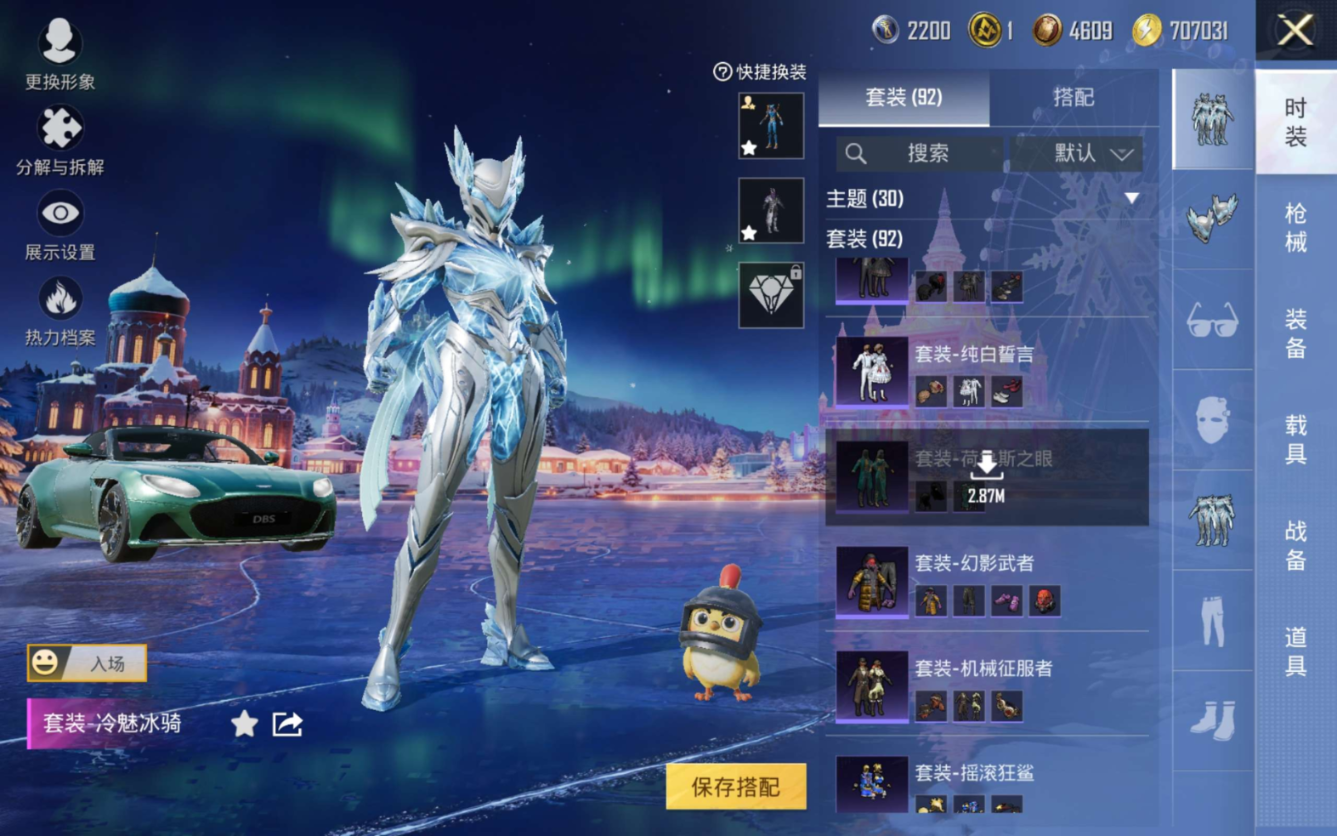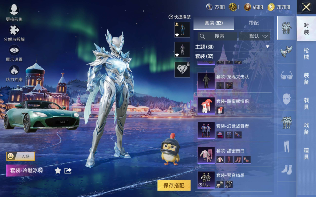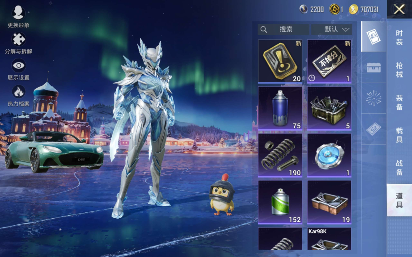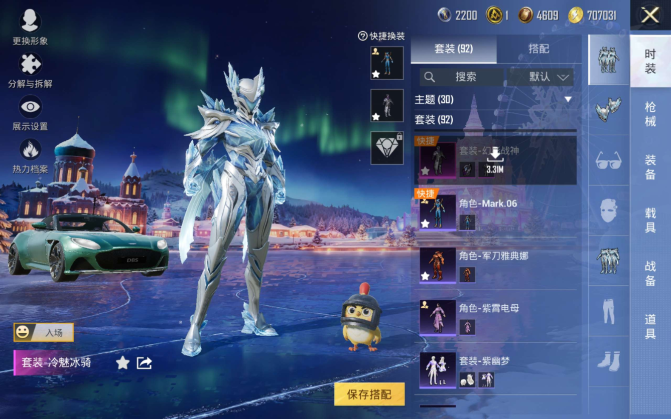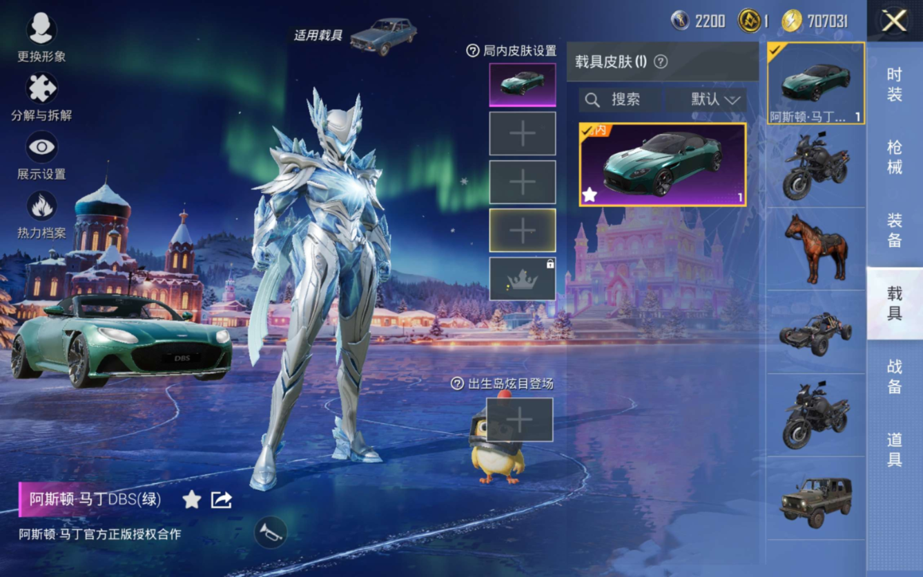2319023-1载具-92套装-118呛皮1稀有1载具6粉装2特效呛6印记【1稀有】akm-缤纷海域【1载具】阿斯顿马丁s绿色【6粉装】幻影战神 星空之魅 苍蓝魅影 翡翠骑士 紫电风暴 冷魅冰骑 【2特效呛】m416-心之恋语 7级 kar98k-巳巳如意 5级【12热门】 mark.06 梦魇先生 呆萌铁蟹 暗夜契约 纯白誓言 冰爽海盐 粉甜马卡龙 破蛋小黄鸡 军刀雅典娜 m