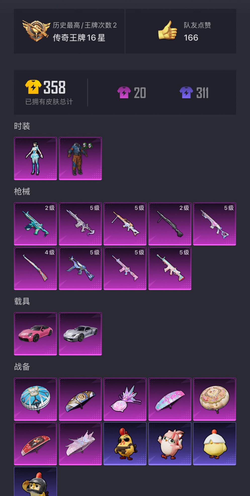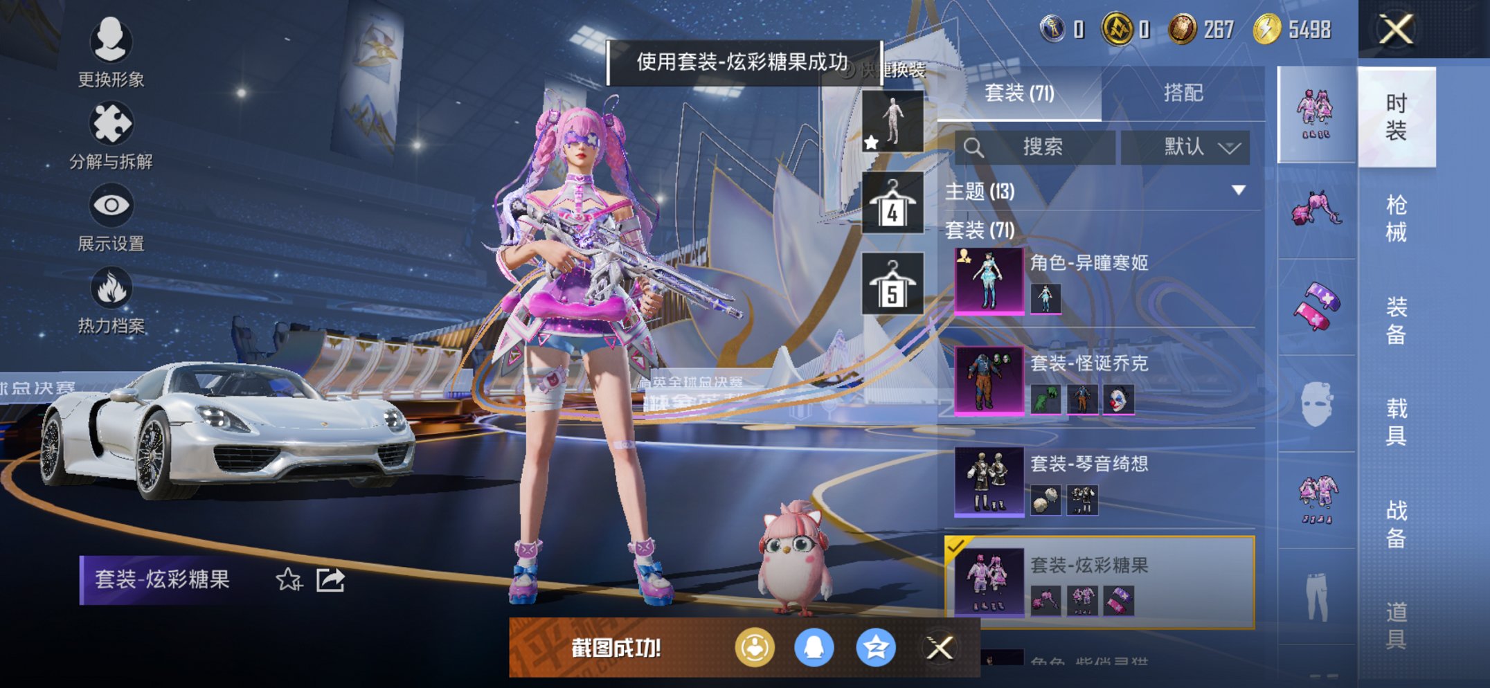 2载具-71套装-105呛皮-【木乃伊小丑赤蝎9特效呛2载具2粉装身法素材号 秒换绑不用等】 苹果q区-31335热力值-2印记-71套装-105呛皮 【2载具】 保时捷918 sper液态银 保时捷911 敞篷版星珀红【2稀有】 木乃伊 赤蝎幽灵【2粉装】 怪诞乔克(小丑) 角色-异瞳寒姬【9特效呛】 scar-l-锦绣绵绵5级 arx-无垠阁5级 蜜獾-异瞳寒姬2级 kar98k
