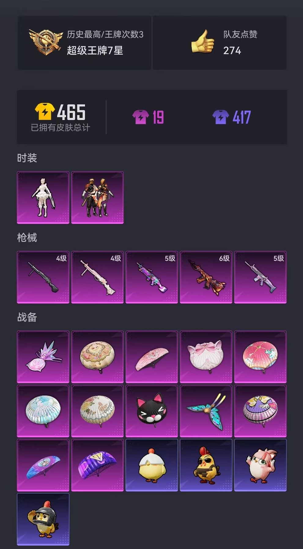 可二次实名【m4风花雪月5特效呛2粉装 秒换绑不用等】 安卓q区-42365热力值-3印记-98套装-138呛皮 【1稀有】 奇异狩猎者【2粉装】 烈焰拳霸 角色-千金淑猫【5特效呛】 m416-风花雪月6级 scar-l-梦幻火箭5级 m249-蓝莓炮弹5级 dp-28-千金淑猫4级 dp-28-豹影疾电4级【114热门】 梦魇先生 破蛋小黄鸡 大橘为重 罗小黑 团圆交子