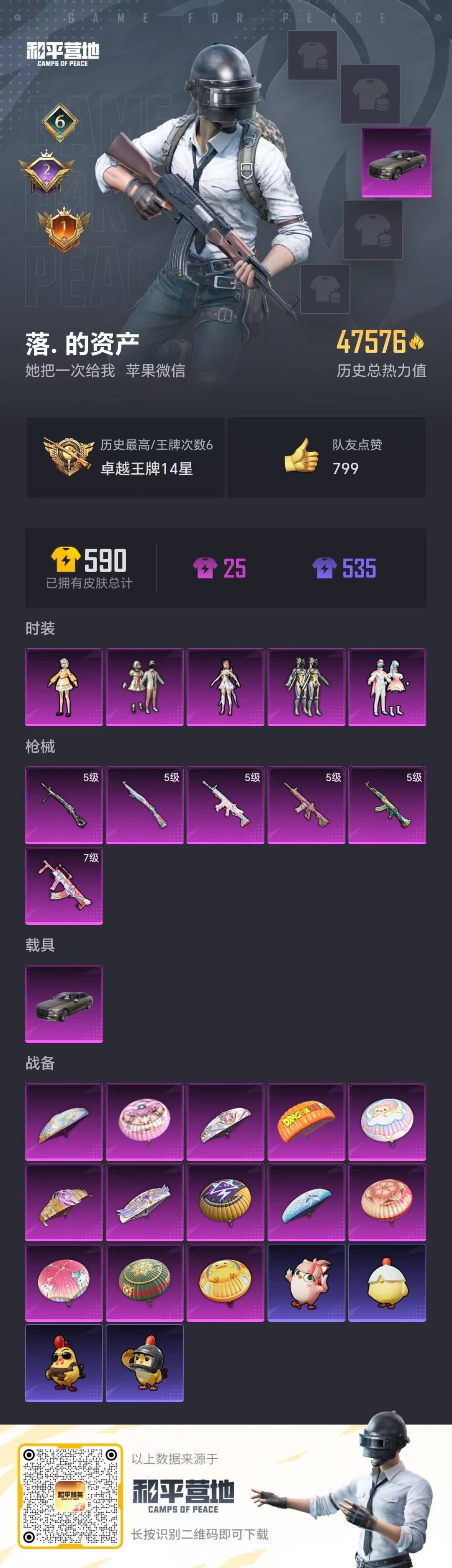 [14781632]5粉装 6特效呛 1载具 6印记 可二次 可修改实名 【热门装扮】:宝贝奶油派绚金战神旋转彩虹超级赛亚人贝吉塔呆萌星弥圣堂之誓萌神柯基激萌罗小黑暴走罗小黑鹰眼刺客深海小丑鱼萌熊伴侣 【载具】:宾利飞驰布罗德盖棕双色 【稀有呛皮】:kar98k-巳巳如意dp-28-豹影疾电m416心之恋语groza旋转彩虹akm绿萝繁花scar-l-锦绣绵绵 【七级特效呛】:七级groza-旋转彩虹 【五级特效呛】:五级kar98k-巳巳如意五级m416-心之恋语五级dp-28-豹影疾电五级scar-l-锦绣绵绵五级akm-绿萝繁花 【紫色装扮】:ss34特训套装顶瓜瓜ss33特训套装田园牧歌轻风白浪ss22特训莱茵河畔ss23特训ss30特训套装ss31特训套装星夜迷魅幻世战舞者恋恋初桃探宝勇士极地朋克柠萌假日夏日倾情冰川格斗者冰川特警冷焰舞者千禧之恋吉莉礼服岑岑玉浪智慧隐士酸甜橘柚娇憨猪猪萌趣咩咩ss21特训梦幻奶油ss19特训甜心亚梦虚音幻奏ss20特训沙漠毒蛇龙魂突击队蝶变冰河战士飞行日记霓虹街区魅力单车鹤鸣麻辣教官龙的传人龟仙人薄荷星砂元气之梦狂沙舞者牛气满满狂战萌兔猎鹰猛禽甜蜜菠萝白色伏地魔破蛋小黄鸡海岛探路者深蓝色名流湖蓝色名流灼焰舞者雨林探路者酒红色名流长空猛禽空岛之星缤纷果语暗影刺翼ss29特训8号机新粉螳螂mark.06新蓝螳螂雏菊兔兔萝兰蝴蝶ss28特训巳巳如意竞技名士临安公主玉兔迎春暗影哥特(红眼罩)曼妙人鱼浪漫天命贝吉塔ss24特训ss24特训套装惊鸿侠骨锦衣飞扬ss25特训热情海星焰鹰斗篷幻羽潜行幽夜迷踪ss27特训童真绒兔alan walker湖雨初晴纯真浪花超人强ss26特训春光漫游快闪甜心贝斯之夜彩霞狙击冰爽海盐绯格组合光之冒险ss32特训套装冷血极客贵族骑装 【优质战备】:圣堂之誓降落伞守护天翼降落伞精灵梦叶罗丽降落伞公主华盖飞行器沙丘之主降落伞蜜语绒猫降落伞月影灵韵降落伞旋转彩虹降落伞桃夭倾城降落伞海螺星光降落伞垂柳戏鸭降落伞翩跹演武降落伞龙珠超降落伞百万伏特降落