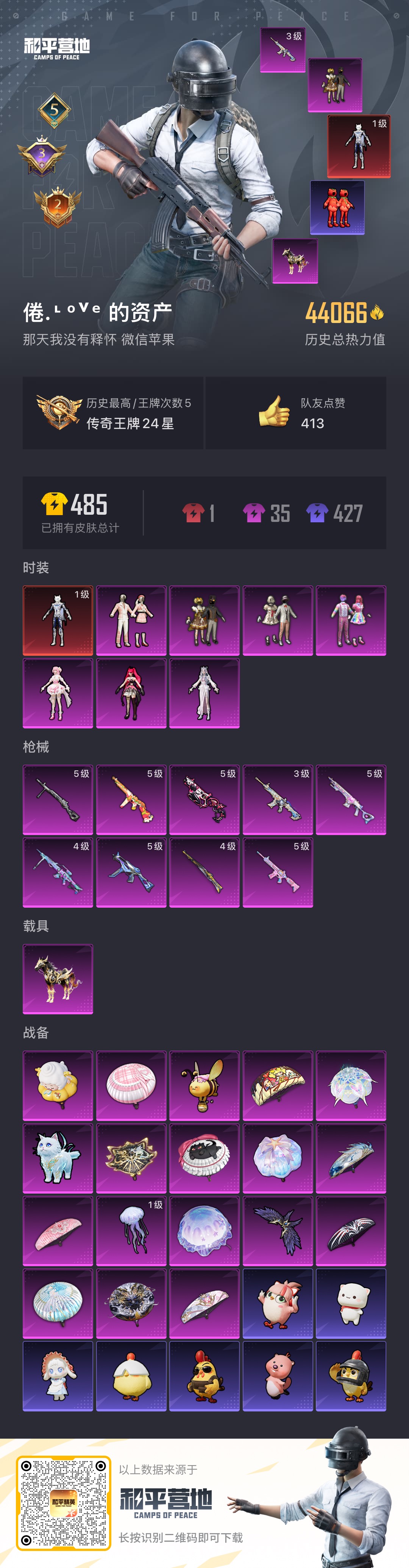 hs54434 苹果微信-5王牌印记-1红装-7粉装-9特效呛-1载具-44066热力值-71套装-130呛皮-3卓越印记-2传奇印记【1红装】灵猫魔法师-塞维尔/1级【7粉装】角色-奇迹舞步 美雪套装-宝贝奶油派套装-甜心巧克力套装-天使彩虹糖角色-冷漠罗丽套装-第五大道角色-绯穹魔姬【9特效呛】m416-电玩时刻/5级mg-36-幻彩电音/4级dp-28-豹影疾电/5级